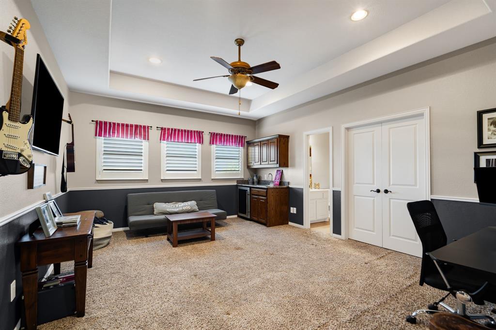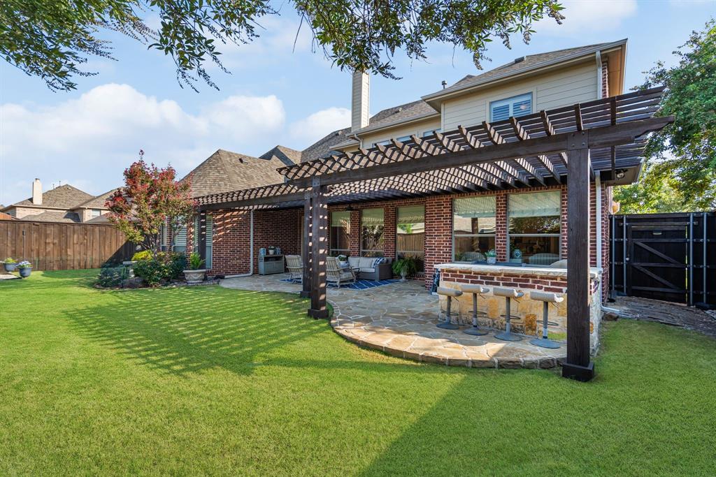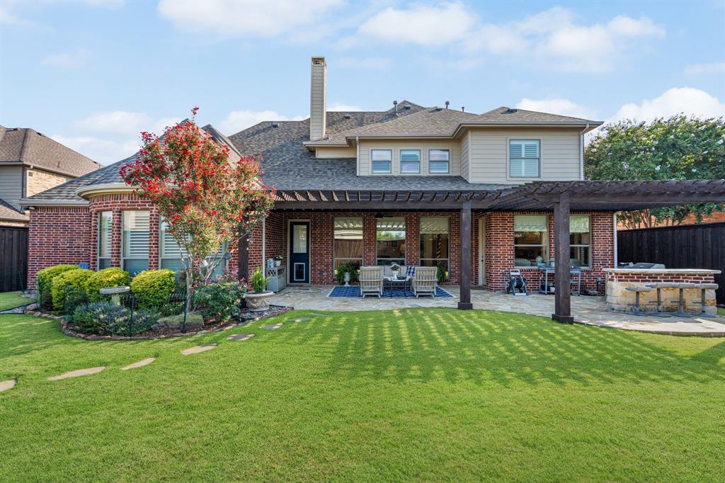 Welcome to this beautifully maintained 4 bedroom, 3.5 bath home located on a quiet cul de sac, just steps away from the elementary school. Offering both style and comfort, this property boasts an ideal layout with a private office and second full bedroom with on suite, downstairs and an additional family room and or game room upstairs, along with a separate media room which is perfect for work, relaxation, or entertaining. Inside, you’ll find numerous upgrades throughout, including hand-scraped hardwood floors, quartz countertops, Venetian blinds, and plantation shutters that add timeless charm. The kitchen is thoughtfully updated with a new dishwasher and microwave, complementing the sleek design. The spacious living areas flow seamlessly, creating an inviting atmosphere for family and guests. Recent updates ensure peace of mind, with a new roof and a freshly repaired and painted pergola, extending your living space outdoors. Whether you’re enjoying quiet evenings in your backyard retreat or hosting gatherings, this home provides both functionality and elegance. With 4 bedrooms and 3.5 baths and extra bonus spaces, there’s plenty of space for everyone. The primary suite offers a relaxing escape, while the upstairs family room gives flexibility for a playroom, media area, or secondary living space. Well cared for and thoughtfully upgraded, this home is move-in ready and combines modern updates with classic details. Don’t miss your chance to own this gem in a desirable location.