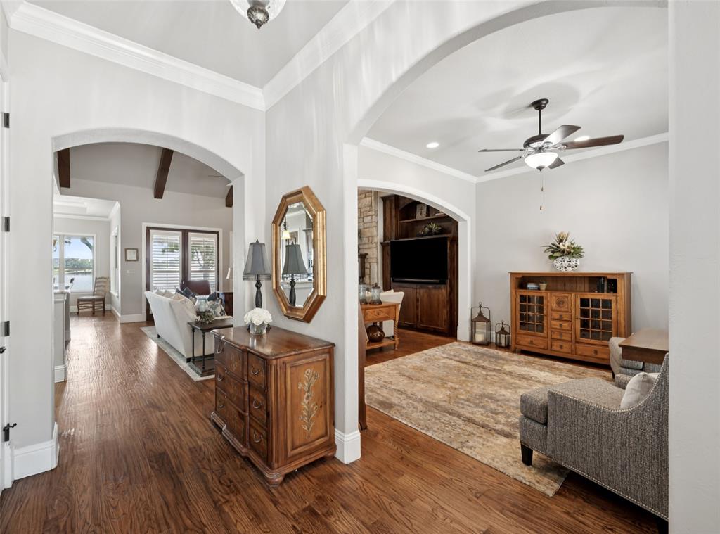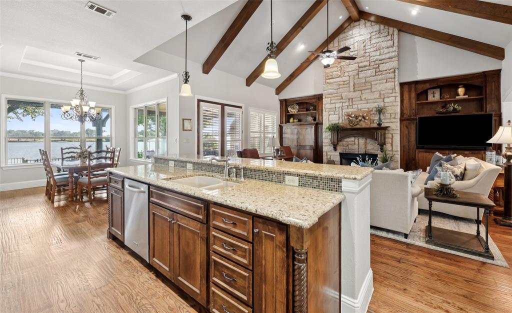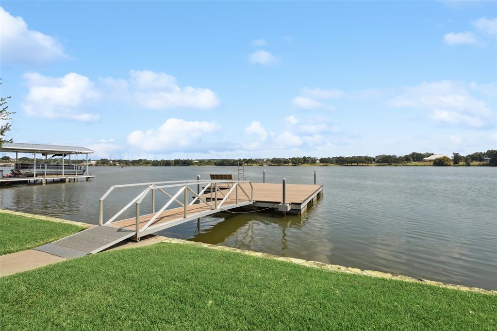 Exquisite Waterfront Home in The Watermark on Lake Granbury – 55+ Gated Community. Welcome to this beautifully appointed 2,412 sq. ft. waterfront home located in the exclusive 55+ gated community of The Watermark on Lake Granbury. One of only 25 waterfront residences, this exceptional property offers a rare combination of luxury, comfort, and active adult living. This stunning home features 3 spacious bedrooms, 3 full baths, and home office, ideal for remote work or hobbies. Expansive windows throughout the home frame breathtaking views of Lake Granbury, filling the interior with natural light and serenity. Step outside to a generous patio overlooking your private dock—perfect for relaxing, entertaining, or enjoying sunset views over the water. Inside, you’ll find tasteful finishes, high-quality materials, and thoughtful design elements that create a warm, inviting atmosphere. The open-concept layout is perfect for both everyday living and hosting guests. Residents of The Watermark enjoy a lifestyle tailored for comfort and connection. The community amenities include a clubhouse with game rooms and meeting rooms, a pool, fitness center, and more. Engage in a variety of Independent Living Activities such as yoga, fitness classes, chef-prepared meals, social events, and airport transportation—all designed to make life easier and more enjoyable. The HOA takes care of yard maintenance and irrigation, allowing you to spend more time enjoying your home and the vibrant community around you. Conveniently located near shopping, dining, and Granbury's historic square, you'll have everything you need just minutes away. This is more than a home—it’s a lifestyle. Don’t miss your chance to own a piece of waterfront paradise in one of Lake Granbury’s most sought-after communities.