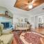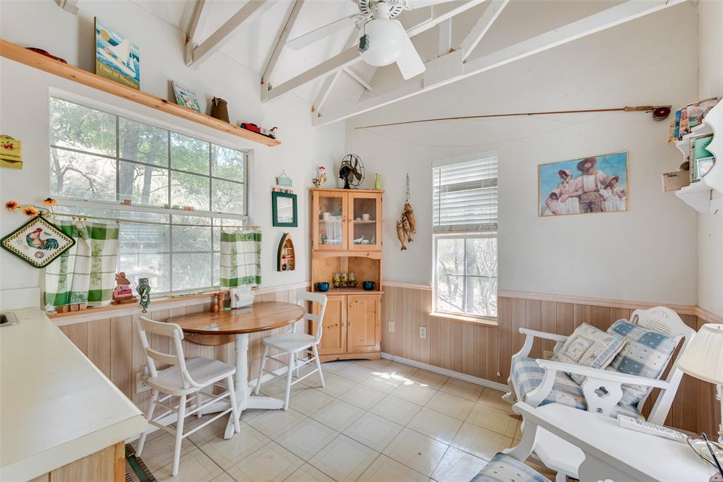 Beyond the interiors, the property boasts extensive outdoor perks and opportunities for adventure. Both covered front and rear porches invite relaxation as you soak in the serene views of mature trees swaying in the breeze. The covered rear porch has a built-in grilling fireplace. The landscape is accentuated by a stocked pond, perfect for leisurely fishing or contemplative afternoons by the water’s edge. For outdoor enthusiasts, a floating dock, classic windmill, and hilly terrain enhance the property's natural beauty.
