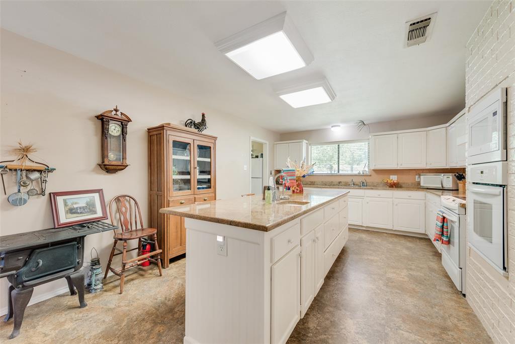 Step inside to discover an expansive floor plan highlighted by a spacious kitchen featuring granite counters, a large island with 2nd sink, and three pantries, perfect for culinary adventures and gatherings. The kitchen's open layout connects seamlessly to the dining room, with French doors, creating the perfect spot for al fresco dining. A corner fireplace sets the scene for cozy evenings and gatherings in the spacious living room. The primary bedroom serves as a true private retreat, complete with its own fireplace, and bay window. The secondary bedrooms have spacious closets and the utility room has space for two freezers.