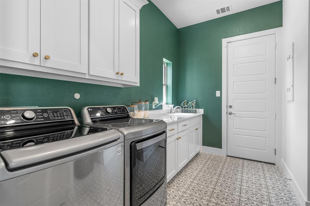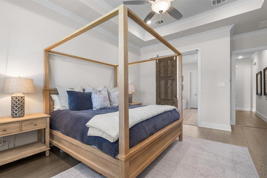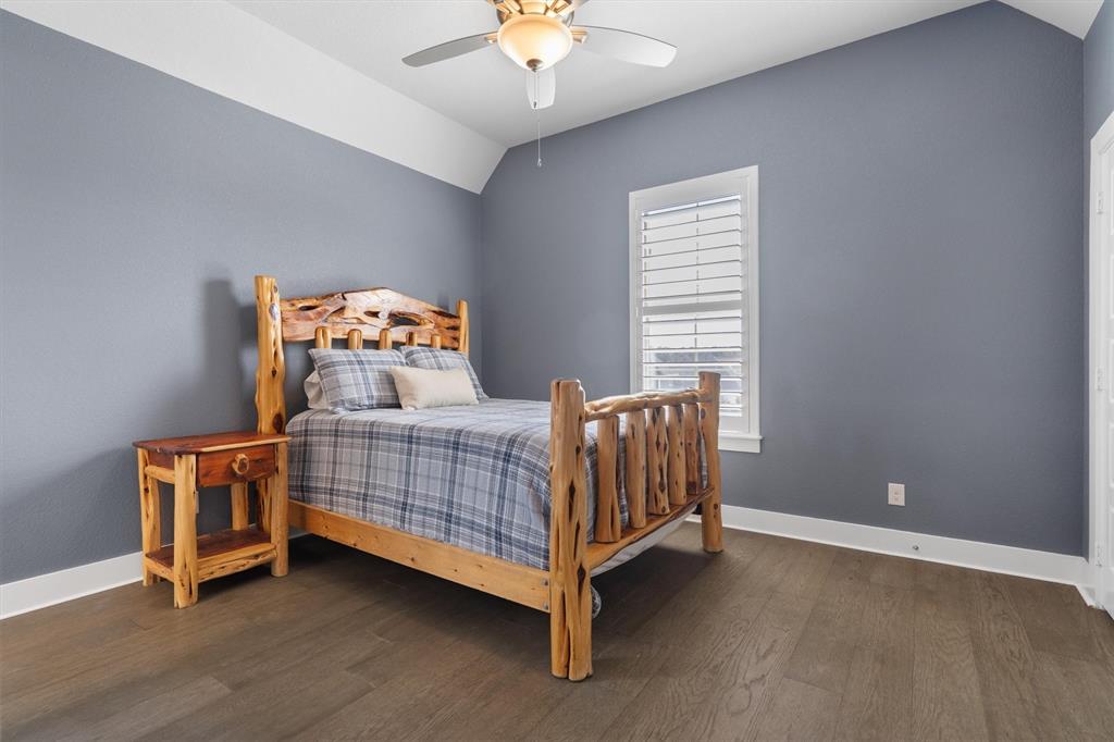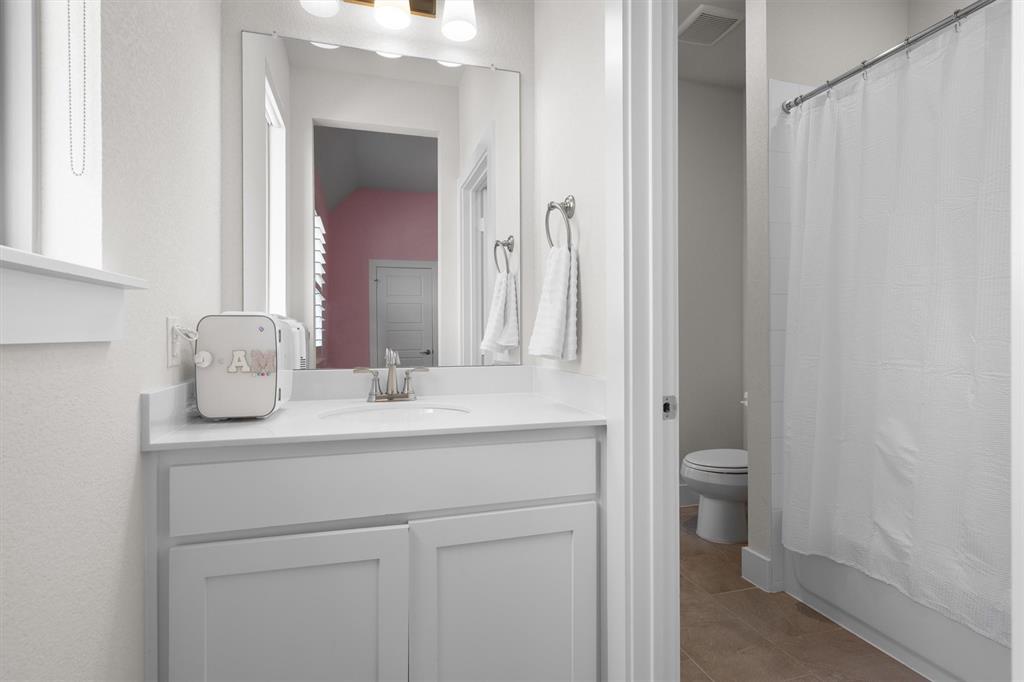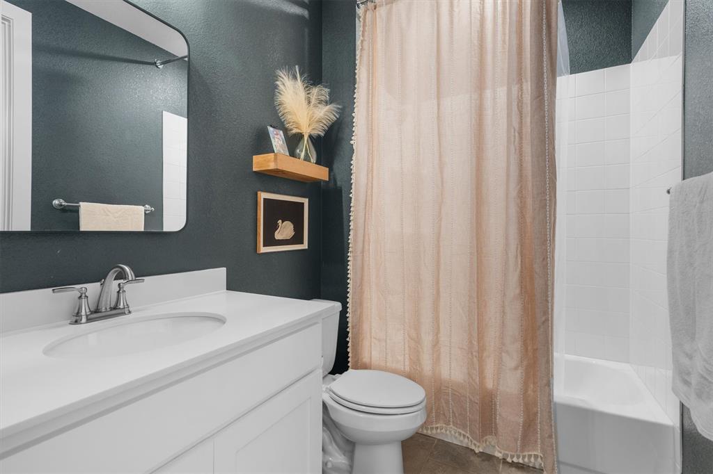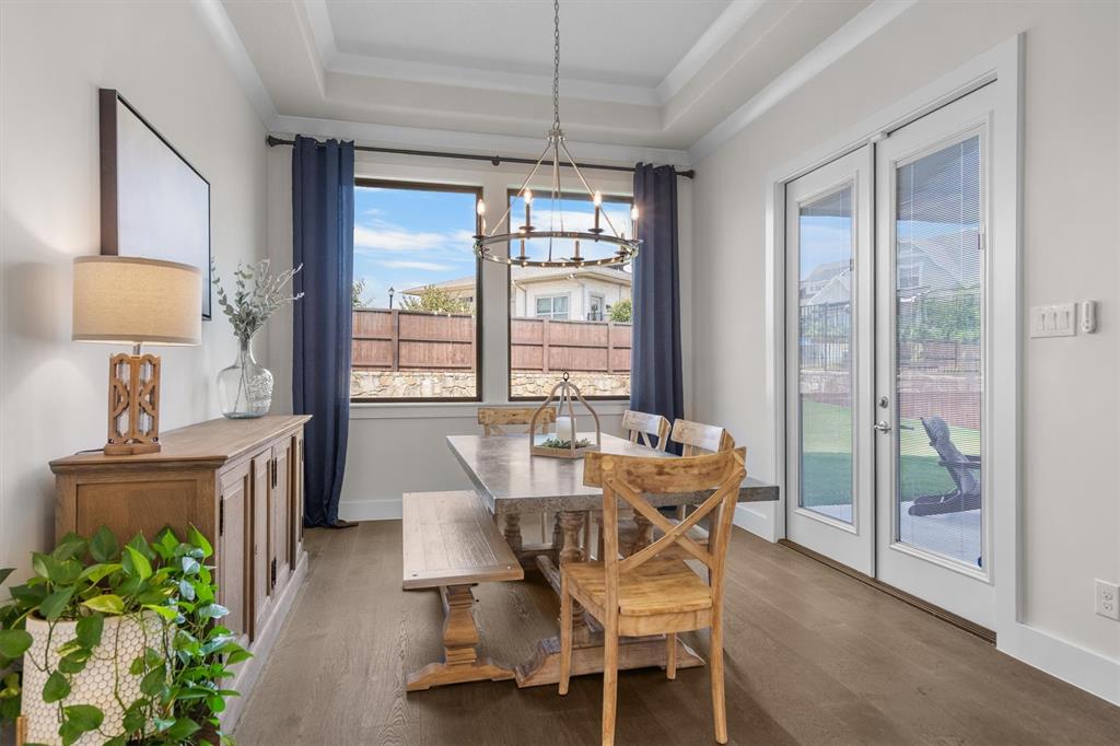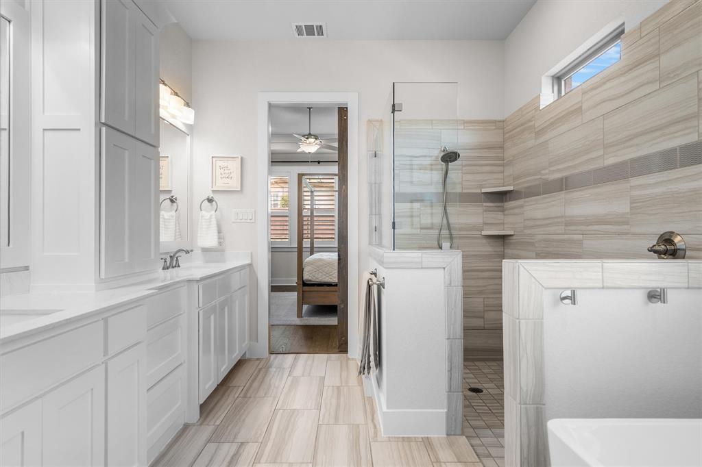 Welcome Home! This breathtaking residence blends generous space with timeless charm. Step inside to a bright, spacious home office overlooking the picturesque neighborhood, ideal for working or studying from home. The sun-drenched living room is a true centerpiece, framed by expansive picture windows that bathe the space in warm, natural light from sunrise to sunset. High ceilings and an open layout create an airy, inviting atmosphere, perfect for cozy mornings, lively gatherings, or simply enjoying the quiet view. The chef’s kitchen is a true showstopper, showcasing a massive island with built-in cabinetry, a walk-in pantry, and a double oven, perfect for everyday meals or entertaining. The serene primary suite offers a peaceful retreat, complete with a spa-like ensuite bath boasting sleek white cabinetry, abundant counter space, a luxurious soaking tub, and a walk-in shower. Upstairs is thoughtfully designed for both privacy and fun, featuring a spacious family room ideal for movie nights, while on the opposite side of the staircase two additional bedrooms offer comfort and ample space for loved ones or guests. The backyard is an outdoor haven. A spacious covered patio provides the ideal spot for grilling, dining al fresco, or simply relaxing with a glass of sweet tea. The expansive lawn offers room for play, gardening, or even a future pool, perfect for enjoying those beautiful Texas nights year-round.
