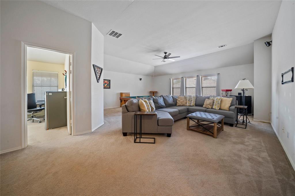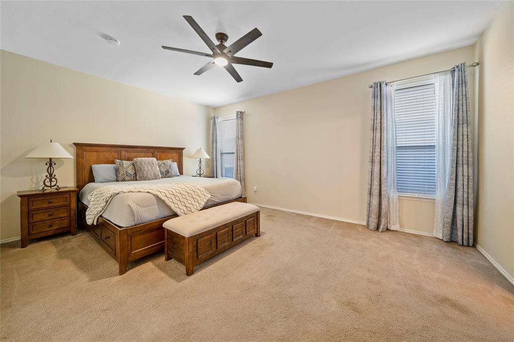 The first-floor primary suite provides the ultimate retreat, complete with a private ensuite bathroom and generous closet space. Upstairs, you'll find a huge game room and large secondary bedrooms with walk-in closets, offering space for everyone.