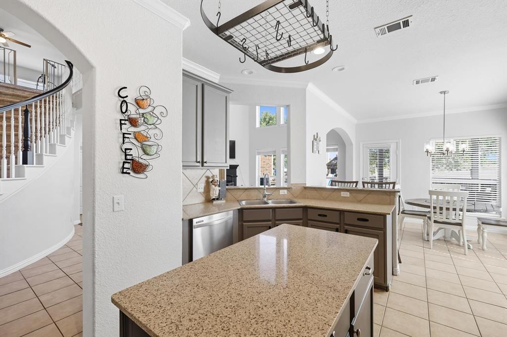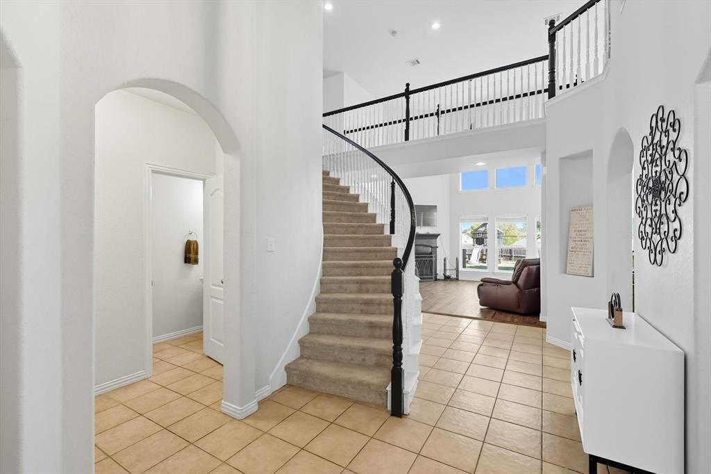 Step inside and be greeted by the dramatic curved staircase and soaring ceilings that set the tone for the rest of the home. The family room is bright and inviting, highlighted by a wall of large windows that fill the space with natural light and provide a perfect backdrop for gatherings. A formal dining room and dedicated office create the ideal setup for both entertaining and working from home.