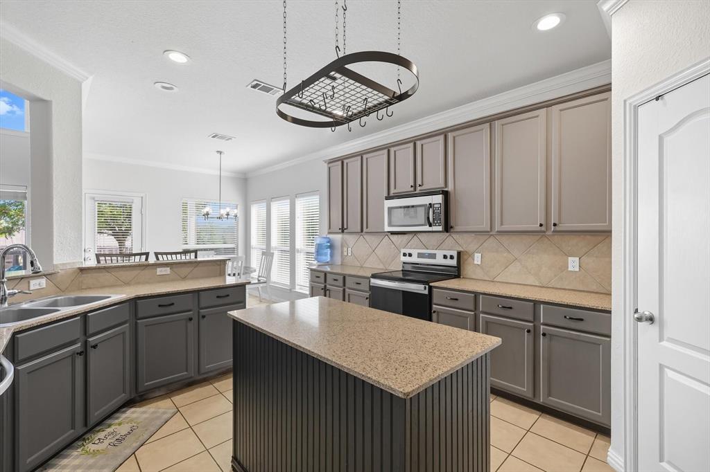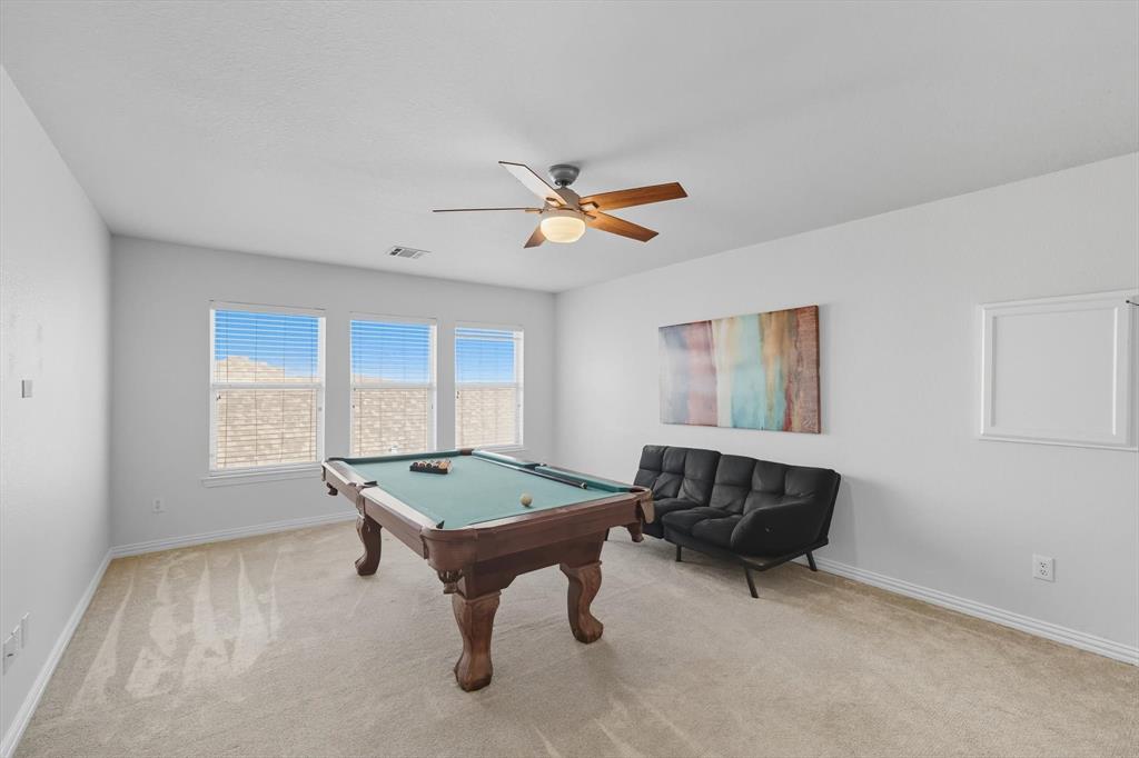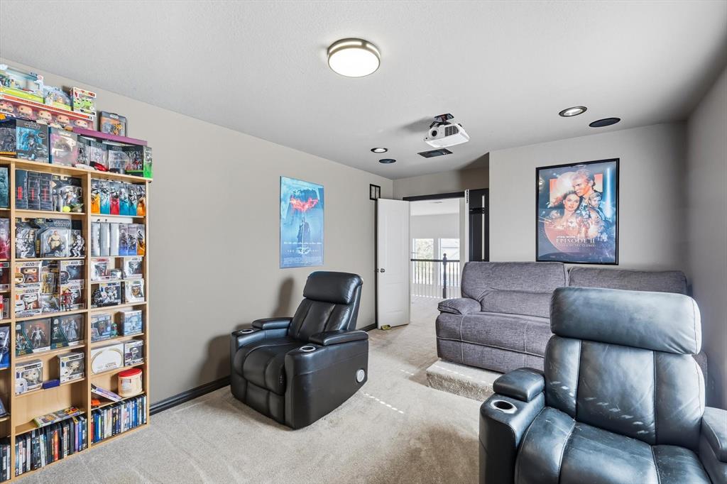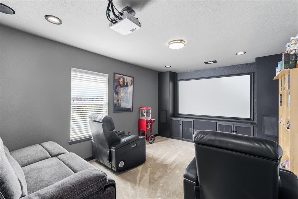The kitchen is designed for everyday living and hosting, with plenty of counter space, modern appliances, and a seamless connection to the living areas. Upstairs, a spacious media room offers the perfect retreat for movie nights, while a second living area provides additional room to relax or play.