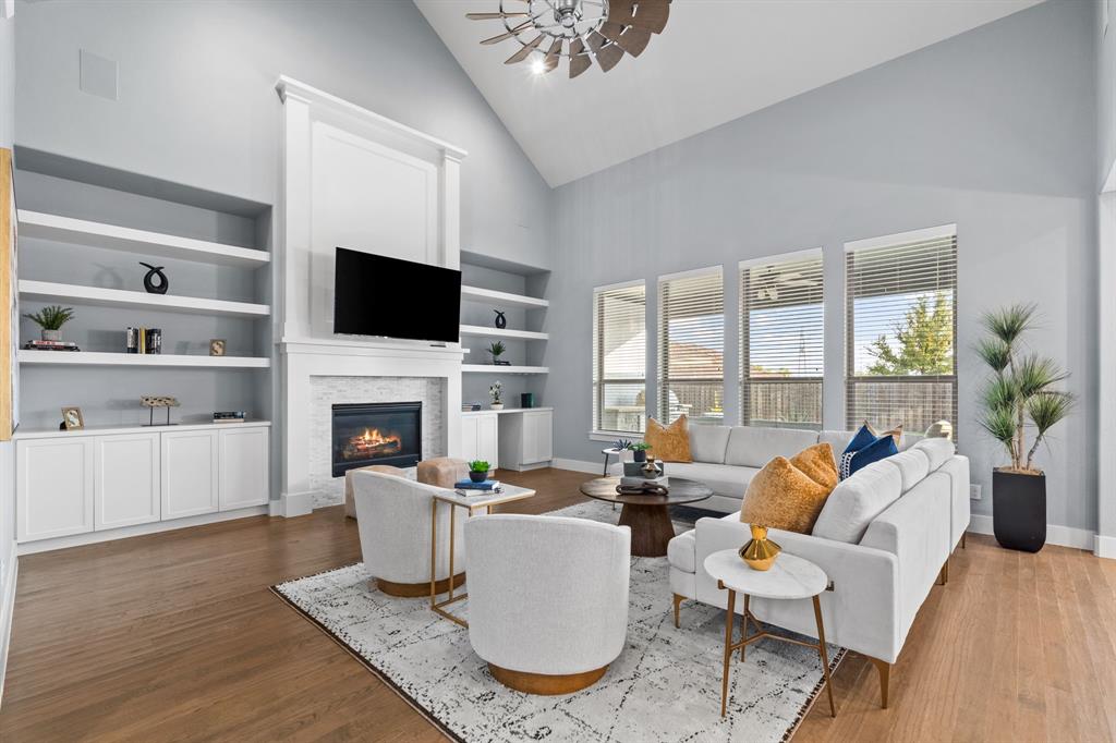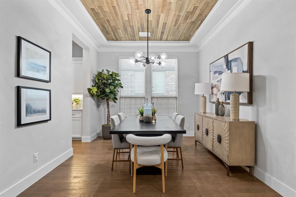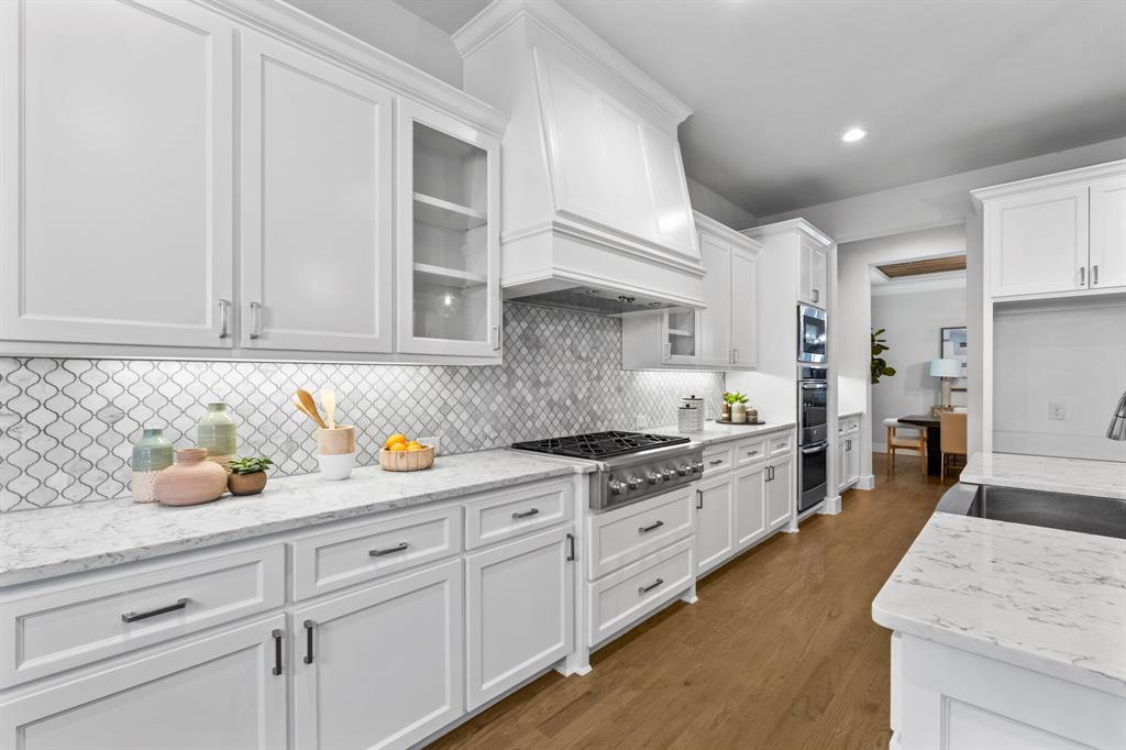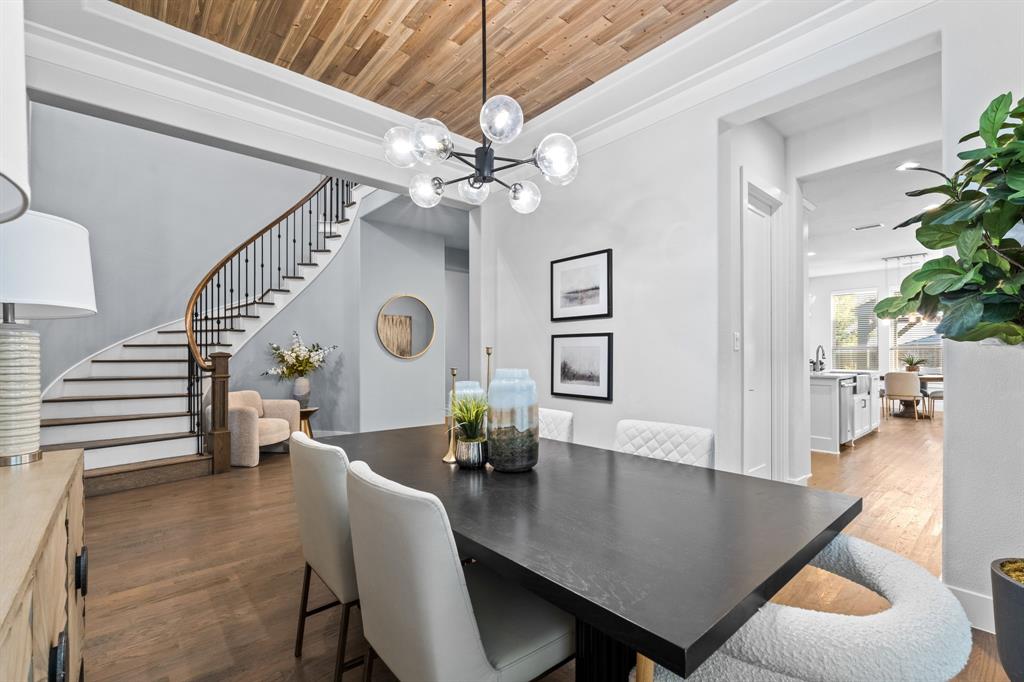 Step into a thoughtfully designed floorplan where timeless craftsmanship meets modern luxury. Wide-plank hardwood floors, decorative lighting, & custom built-ins define the main level. The gourmet kitchen is the heart of the home, featuring GE® Café & Profile stainless appliances, a 6-burner gas cooktop, quartz countertops, an oversized eat-in island, glass-front cabinetry, & a stylish butler’s pantry connecting to the elegant dining room with wood-accent ceiling.