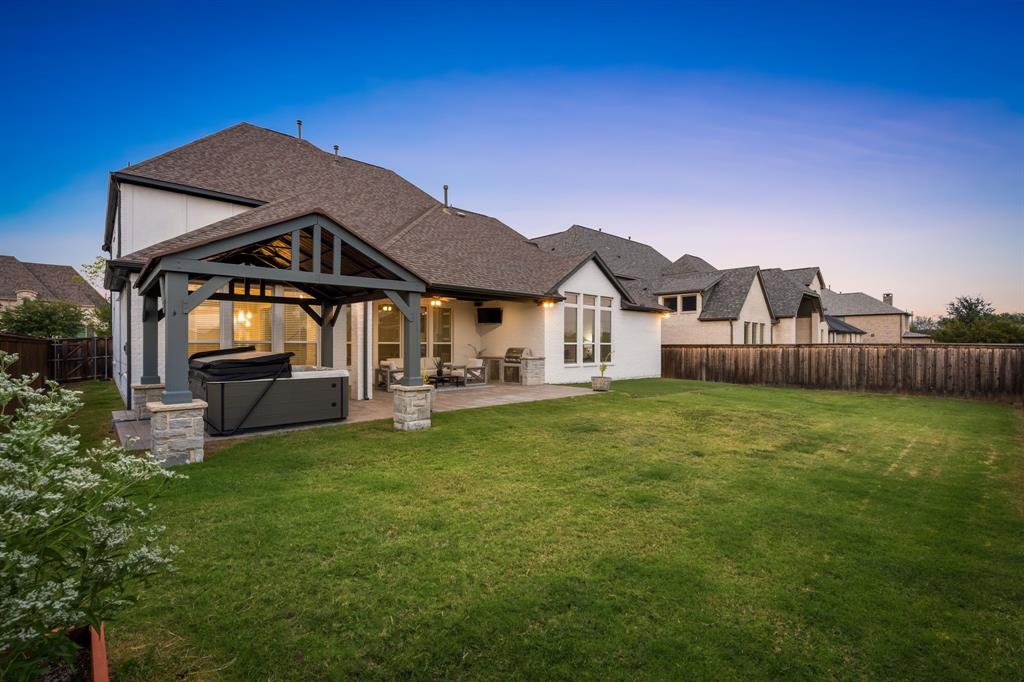 Experience refined elegance in this impeccably appointed residence nestled in the coveted community of Edgestone at Legacy. Welcome home to this extraordinary 5-bedroom, 4-bathroom estate offering 4,677 sq ft of sophisticated living on a beautifully manicured 0.22-acre homesite. The white stucco & stone exterior, enhanced by lush landscaping, sets the stage for the luxurious interiors within.