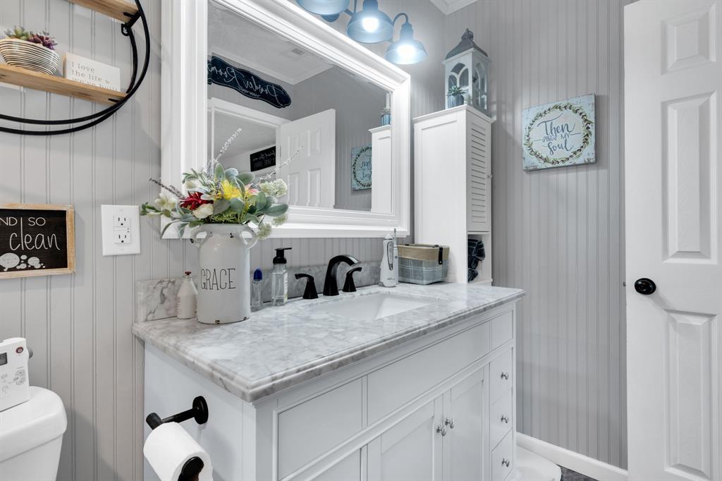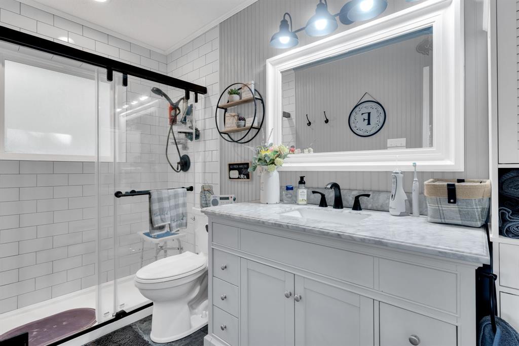 The primary suite offers ample privacy with an en-suite bathroom, while the two additional bedrooms are perfect for family, guests, or a home office. Both bathrooms have been updated with modern fixtures and finishes, offering style and function.