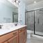 The primary suite is a true sanctuary with its rounded bay window, hardwood floors, & soaring ceilings. The spa-inspired ensuite offers a curbless shower, dual vanities, a separate makeup vanity & spacious walk-in closet.