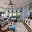 Step inside to a bright, open-concept layout filled with natural light and designer touches throughout. Just off the entryway, French doors open to a private office with custom built-in cabinetry and desk. The spacious living room boasts hardwood floors, custom drapery, and a wall of windows overlooking the covered back patio and lush backyard.