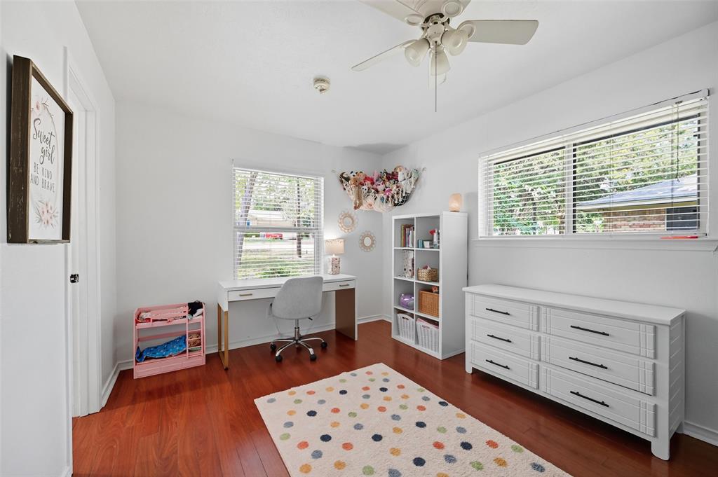 Absolutely stunning property in the coveted Kingswood subdivision! Welcome to this charming three-bedroom, two-bathroom. In addition, the home features a massive and versatile bonus room, perfect for a home office, playroom, or guest space. Step inside to find laminate floors throughout, creating a seamless flow from room to room. The updated kitchen offers beautiful finishes, plenty of storage, and a functional layout ideal for both everyday living and entertaining. Outside, enjoy your own private retreat with a sparkling pool surrounded by mature, large trees that provide both shade and privacy. Whether relaxing by the water or hosting summer gatherings, this backyard is designed for comfort and enjoyment.
