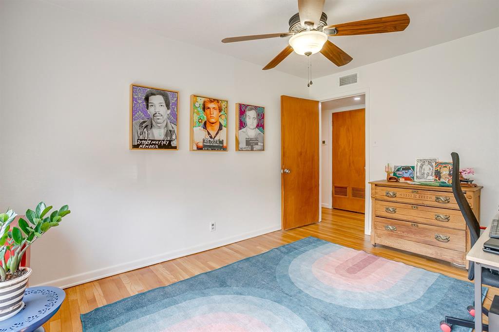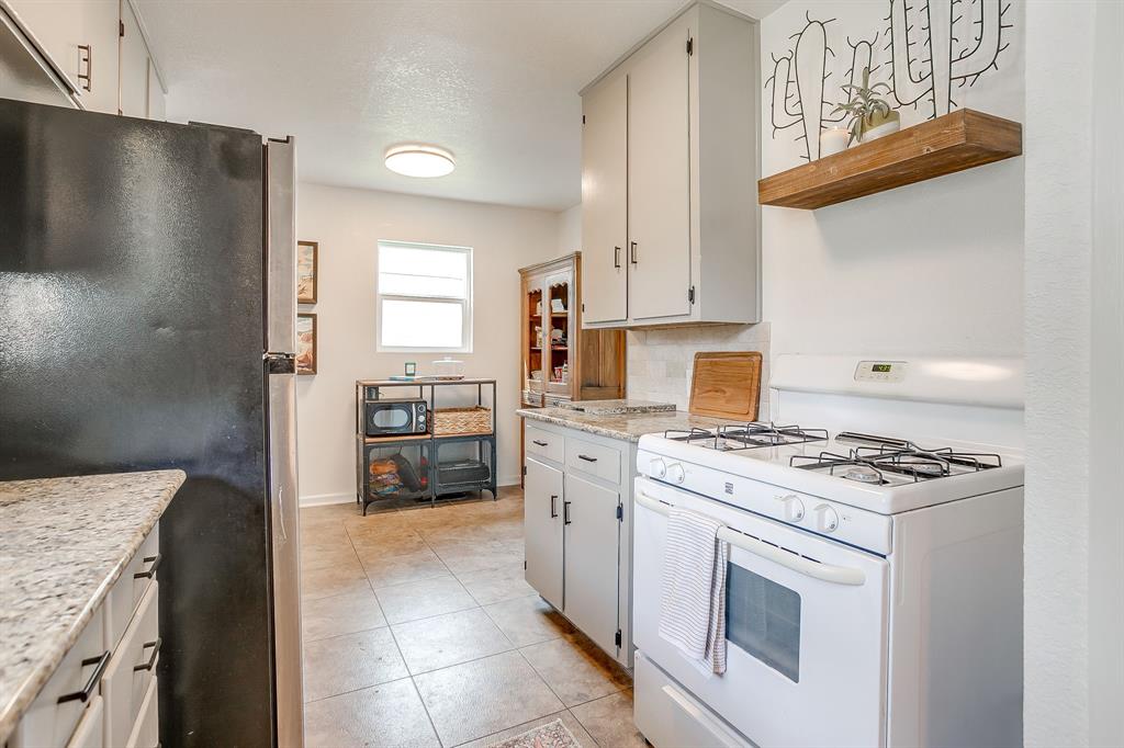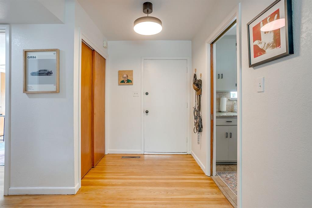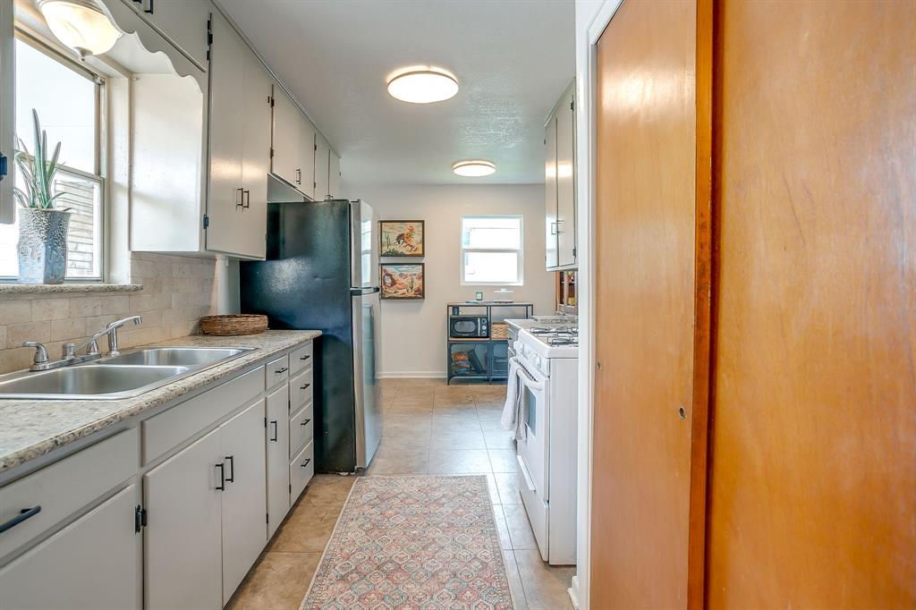 Embrace the timeless appeal of this charming Mid-Century Modern home, brimming with its original 1955 character. Recent updates enhance its comfort and value, including refinished hardwood floors, new central heat and air conditioning, and a fresh interior paint scheme, all completed in 2023. The inviting, spacious living room seamlessly flows into the dining area, creating an ideal layout for gatherings. A large sliding glass door opens to the outdoor patio, perfect for entertaining. The backyard offers ample space for a lush garden or the addition of a refreshing pool. The kitchen boasts elegant granite countertops and has an area for a breakfast table. This lovely home provides three bright bedrooms and one and a half bathrooms. The convenient carport includes storage for your gardening tools and lawnmower. Enjoy the convenience of a neighborhood elementary school within walking distance, along with nearby shopping, restaurants, and freeway access. Peace of mind comes with a new roof and foundation work, both from 2023 and featuring a transferable warranty.