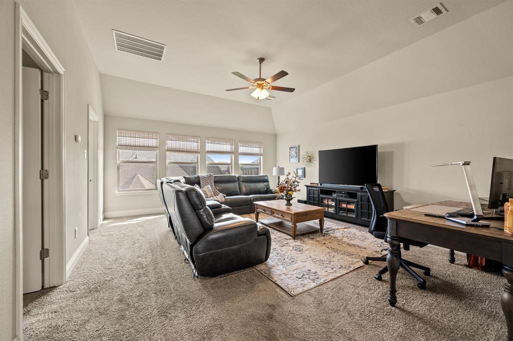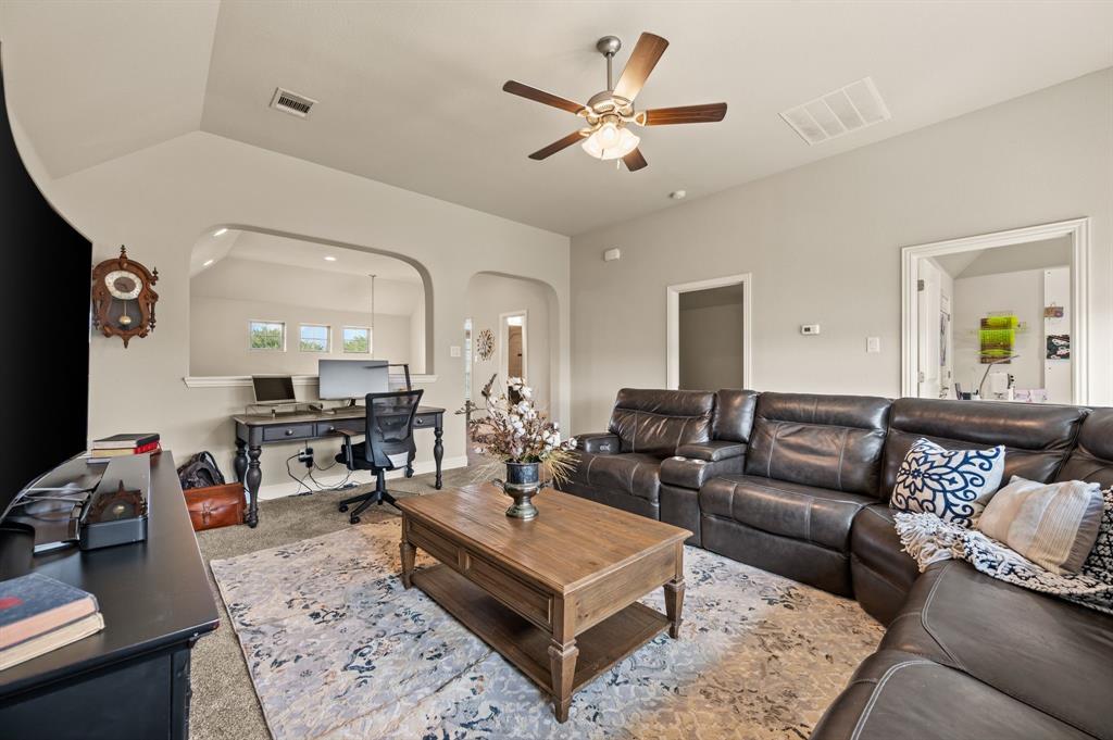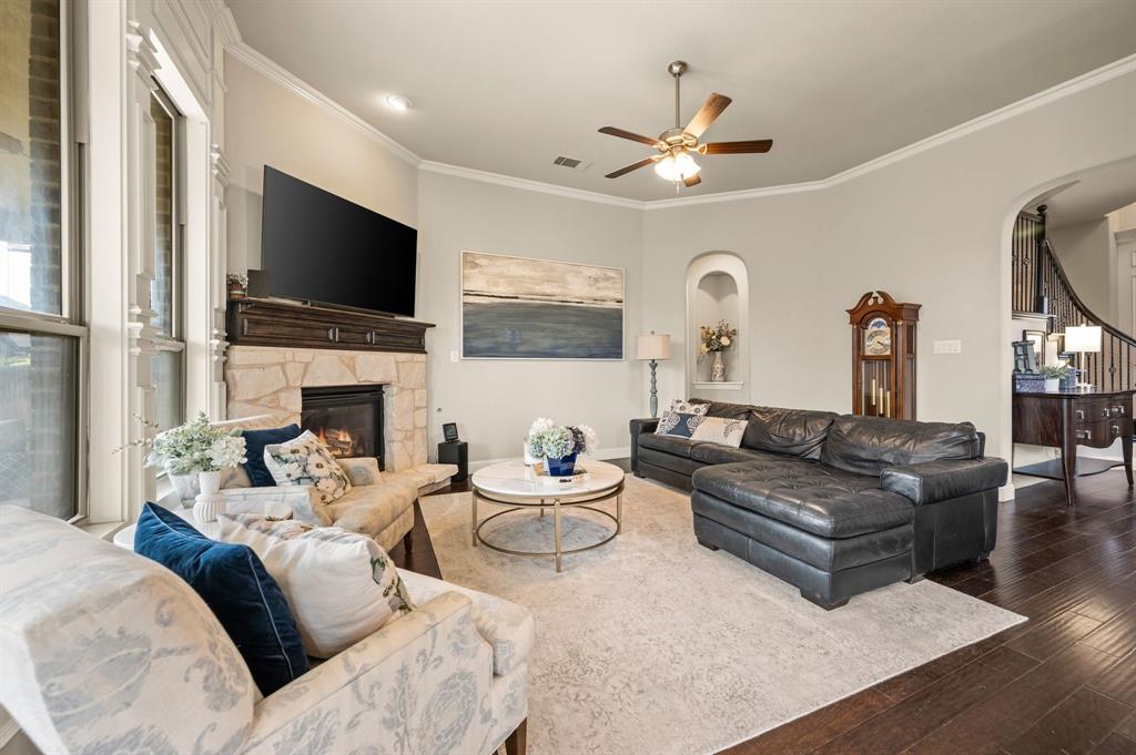Welcome to this beautifully maintained 4-bedroom, 2.5-bath home nestled in the highly sought-after Graham Ranch community of North Richland Hills. Thoughtfully designed and impeccably cared for, this spacious home offers a harmonious blend of comfort, elegance, and functionality—perfect for both everyday living and entertaining. Step inside to discover an inviting open-concept layout featuring two generous living areas and two distinct dining spaces, ideal for hosting gatherings. The dedicated home office is a standout, showcasing rich custom woodwork that adds sophistication and a sense of permanence—perfect for remote work or creative pursuits. Throughout the home, you'll find gleaming hardwood floors and exquisite custom millwork that lend warmth and character to every room. The heart of the home is the well-appointed kitchen, complete with granite countertops, ample cabinetry, and a layout that flows seamlessly into the living and dining areas. Whether you're preparing a casual breakfast or a holiday feast, this kitchen is equipped to inspire. The primary suite is located on the first floor and offers a serene retreat, complete with a spa-like bath and ample closet space. Upstairs, you will find a generous second living room and three spacious bedrooms that offer comfort and privacy. Outside, enjoy a beautifully landscaped yard with room to relax, play, or garden. The property is conveniently located near top-rated schools, shopping centers, dining options, and major thoroughfares—making daily errands and weekend outings a breeze. This home is a rare find in a community known for its charm and convenience. Schedule your showing today and experience the lifestyle that Graham Ranch has to offer.