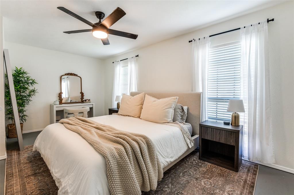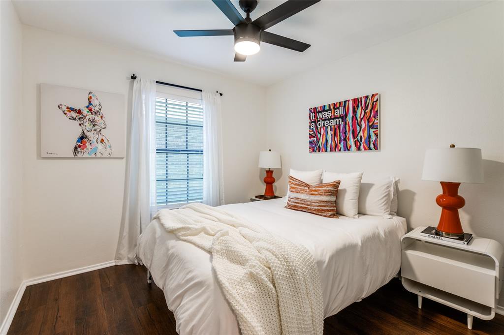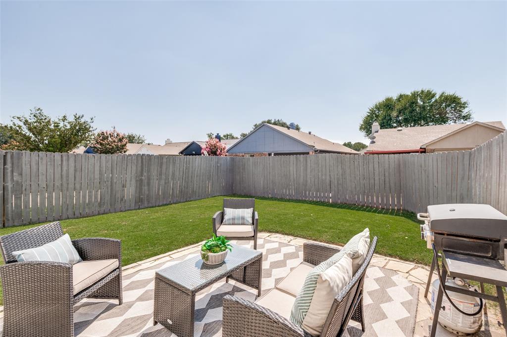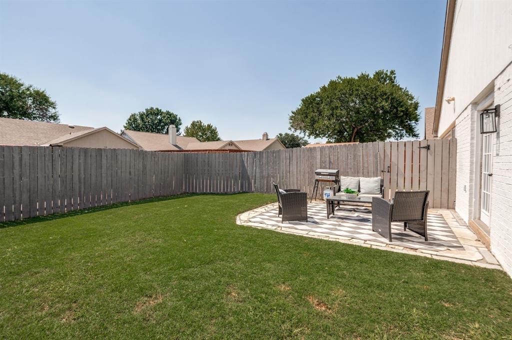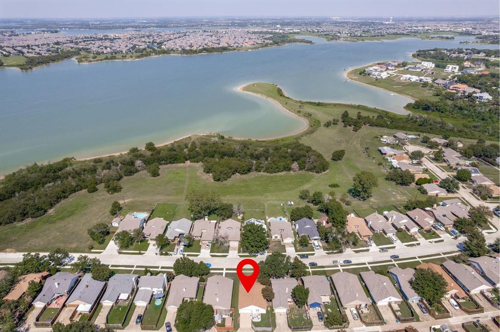 Fall in love with this beautifully updated home, ideally situated within walking distance of Lake Lewisville and zoned for the highly-rated Lewisville ISD. As you step inside, you're welcomed by an open-concept layout featuring soaring vaulted ceilings, fresh updates, and thoughtful design touches throughout. At the heart of the home, a classic brick wood-burning fireplace anchors the spacious living room, where abundant natural light creates a warm and inviting atmosphere. The kitchen features granite countertops, a refreshed backsplash and updated hardware, all complemented by direct access to the backyard patio. The spacious primary suite features a generous walk-in closet, an en-suite bath with dual sinks, and a versatile sitting area or reading nook for added comfort. Enjoy the natural beauty of Lake Lewisville just steps from your door, perfect for morning walks, evening sunsets, or weekends on the water - all while being just minutes from shopping, dining, and everyday conveniences. Major systems have been recently updated, including the roof, HVAC, water heater, and a transferrable foundation warranty.