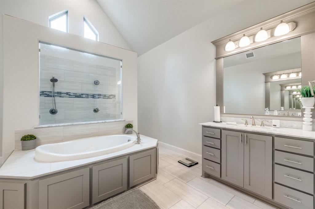 Your personal retreat awaits in the expansive primary suite. A serene sitting area offers a quiet space to unwind, while the luxurious en-suite bath features dual shower heads, a soaking garden tub, separate vanities, and a custom walk-in closet designed for ultimate organization and style.