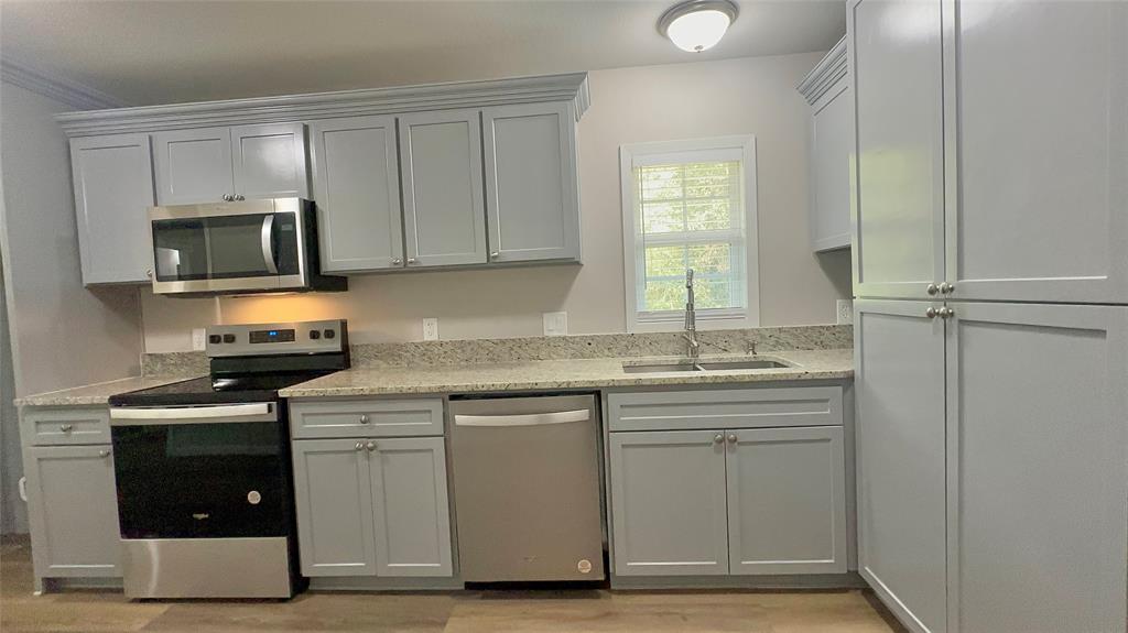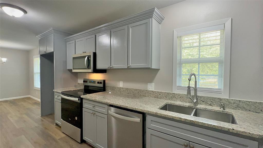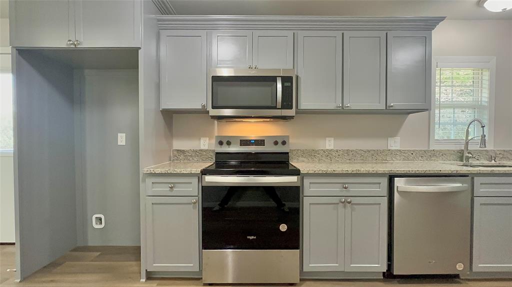 Completely remodeled and move-in ready, this charming 3-bed, 2-bath home offers comfort, style, and convenience just minutes from Lake Whitney. With approx. 1,400 sq. ft. of living space, every detail has been refreshed — new roof, new flooring, fresh paint, and beautiful finishes throughout. The kitchen is brand new with granite countertops, stainless steel appliances, upgraded faucet and fixtures, water line to the refrigerator, and plenty of cabinet space. An eat-in breakfast area sits just off the kitchen, while the open living room includes a bay-window nook with front yard views and an additional dinning area. The oversized primary suite (16x15) features a walk-in closet and a beautifully updated bath with tiled shower surround and glass doors. Secondary bedrooms are well-sized, with updated bath finishes to match.