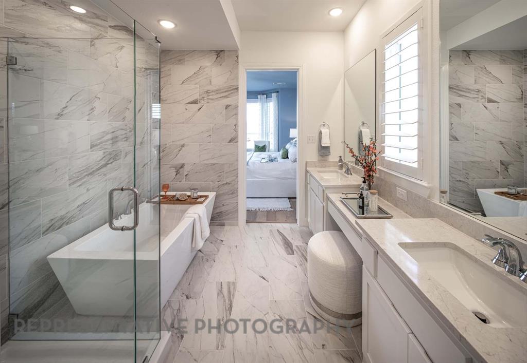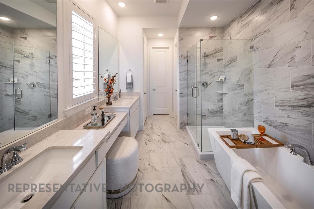 Ask about promotions on available homes. Highland Homes, an A+ Texas home builder known for quality materials and workmanship and the best customer service. This home is in the sought after Master-Planned Community of Wildflower Ranch. WFR features a lazy river with snack shack, resort style pool with amenity building, on site convenience store, onsite HOA office, multiple playgrounds, miles of walking trails, dog park and onsite elementary school. This beautiful REDFORD plan is highly appointed. White brick exterior with large outdoor living. 2 beds up and two beds down, each with a bath. Loft and large media room upstairs. Kitchen features stainless steel built in oven and microwave and 5 burner gas cooktop, farm sink and top of the line quartz countertops. Primary bath boasts a freestanding tub, frameless glass shower and floor to ceiling tile. Guest bath downstairs with standing shower. Floor to ceiling fireplace in family room and hard surface flooring in all downstairs living, dining and traffic area.