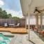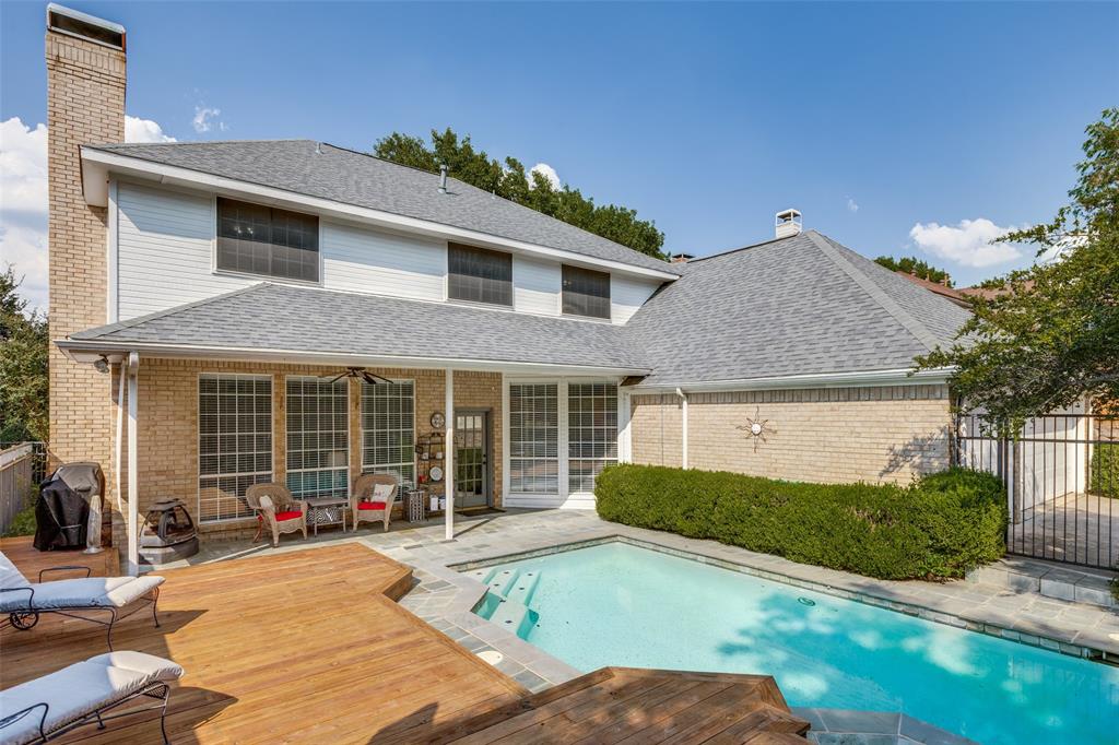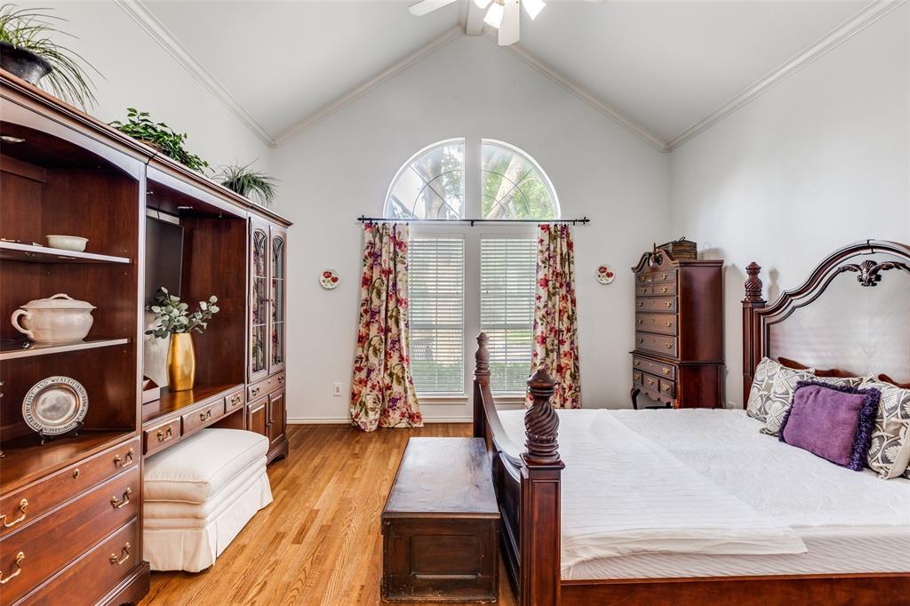 Step into timeless elegance with hardwood floors flowing through the common areas and soaring ceilings that set the tone from the moment you enter. Off the foyer, a family room with built-in shelving, crown molding, and a gas fireplace offers a cozy retreat, while a formal dining room provides the perfect setting for gatherings. The heart of the home is an open living area featuring a second gas fireplace, wet bar, and views of the backyard pool. The kitchen is designed for both function and style, complete with granite countertops, modern white cabinetry, stainless steel appliances, double ovens, a gas cooktop, walk-in pantry, breakfast bar, and a charming coffee bar. A built-in desk adds convenience, while the adjacent utility room includes a sink, built-in cabinets, and space for a freezer. The private primary suite is located downstairs and showcases vaulted ceilings, a spacious layout, and a spa-like bath with a jetted tub, separate shower, dual vanities, and a walk-in closet. Upstairs, four generously sized bedrooms are arranged in pairs with connecting Jack-and-Jill baths, plus a vaulted game room for added living space. Step outside to your own backyard oasis with a sparkling pool, updated decking, privacy fencing, and lush landscaping. A covered patio makes outdoor entertaining effortless. The property also includes a three-car garage and offers quick access to Interstate 75 for convenience.