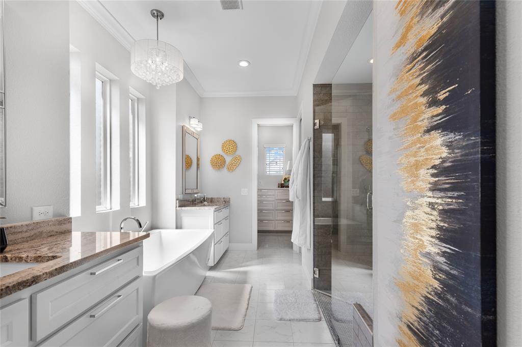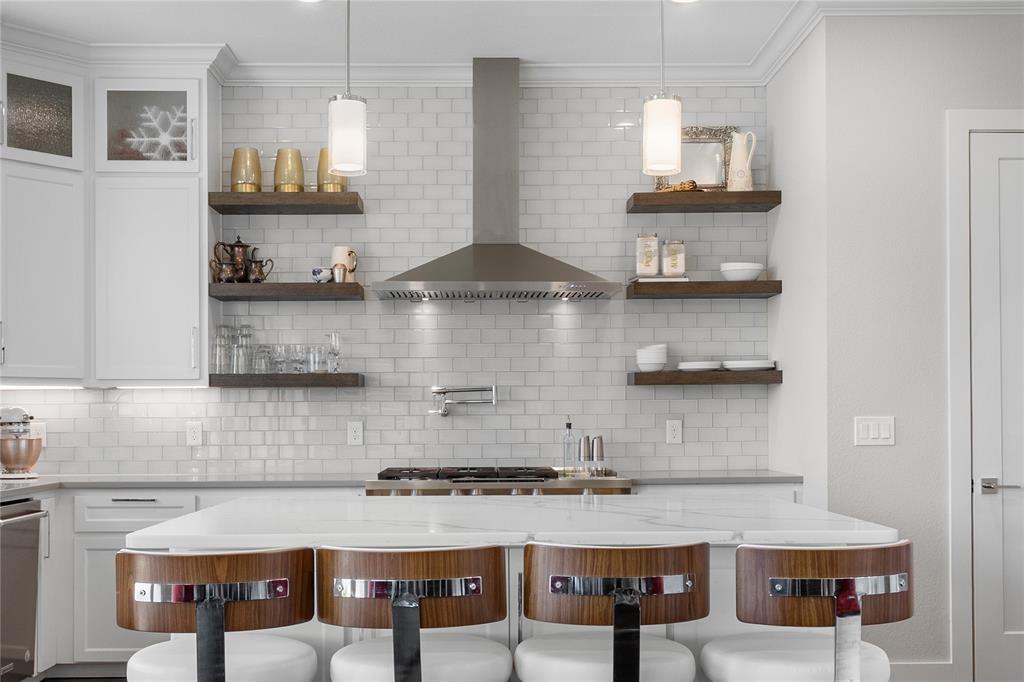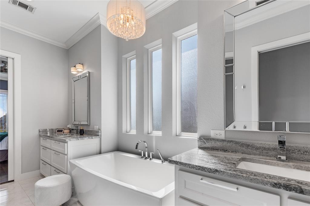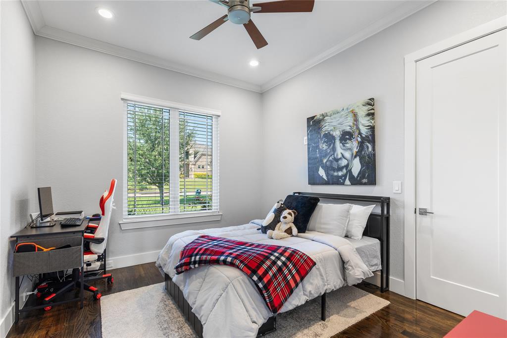 The chef's kitchen features gorgeous colors, professional grade appliances , and a large island, opening to a spacious dining and living area. The luxurious primary suite offers a spa inspired bath and custom walk in closet while guests bedrooms are thoughtfully placed for privacy and comfort. Step outside to a covered back patio, ideal for year-round entertaining and a putting green for relaxed fun or practice. Located in the sought after Oaks of Ohanlon ranch, enjoy tree lined streets, walkable access to pecan Grove Park, scenic trails, and playgrounds. This is a rare opportunity to own a custom modern retreat where lifestyle meets luxury.