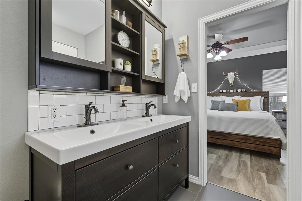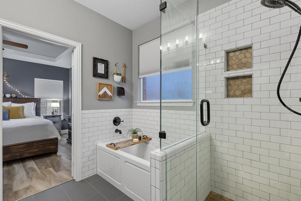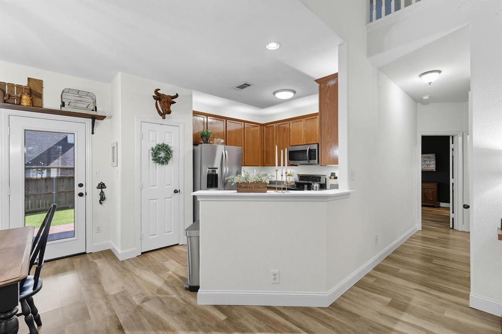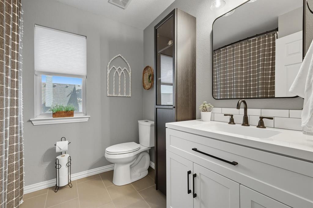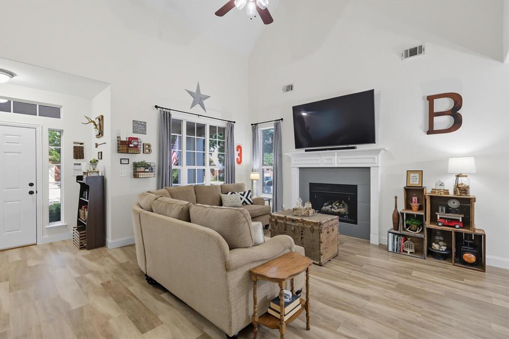 Come see this beautifully updated. 4 bedroom home near Lewisville Lake and Lakeview Marina! No HOA and nestled in a charming suburban neighborhood with that lake community feel. Get cozy in the spacious living room that features an open floorpan, fireplace with gas logs, vaulted ceilings and modern light fixtures. Kitchen boasts stainless appliances, along with both above- and under-cabinet lighting. Primary bedroom with en suite full bathroom, an additional half bath and the laundry room are just down the hall on the lower level. You'll also find updated LVP flooring throughout the first floor. Relax in the primary bath with a jetted tub and separate shower. Double vanity with two medicine cabinets makes this modern bathroom a dream. Upstairs, the landing doubles as a second living area, while the spacious, split bedrooms and newly-updated full bathroom with cabinetry are all conveniently located around that central living space. The upstairs 4th bedroom has a closet with storage outside the room which allows for flexibility: that bonus space could easily become a media room, crafting oasis, game room, or even a dreamy library. The outdoor entertainment areas are just as amazing as the inside! Front porch is perfect for a set of rocking chairs and the back, covered patio with stained concrete has all updated electrical in 2025, outdoor ceiling fans, and twinkle lights to set the mood for a sunset hangout. New AC, solar screens, and EV charger in the garage are all recent updates. Don’t miss this gorgeous, move-in ready home! Full list of upgrades, smart features, and the offer instructions can be found in documents.