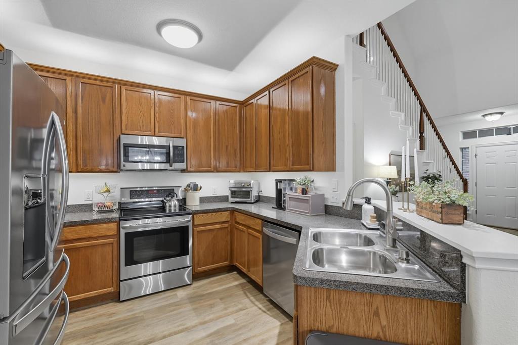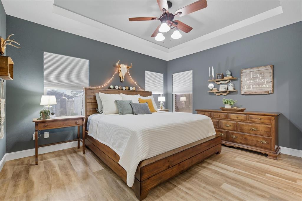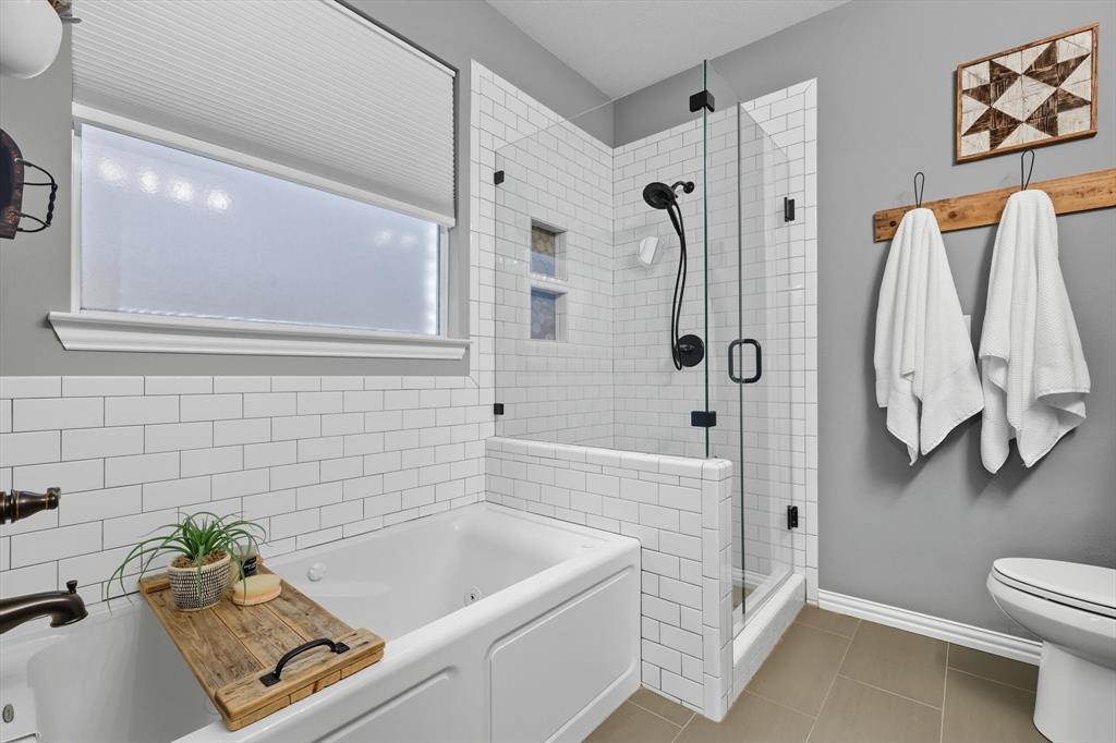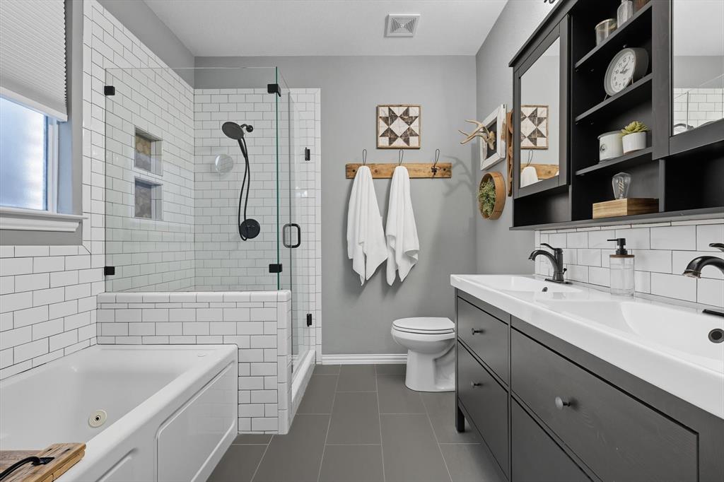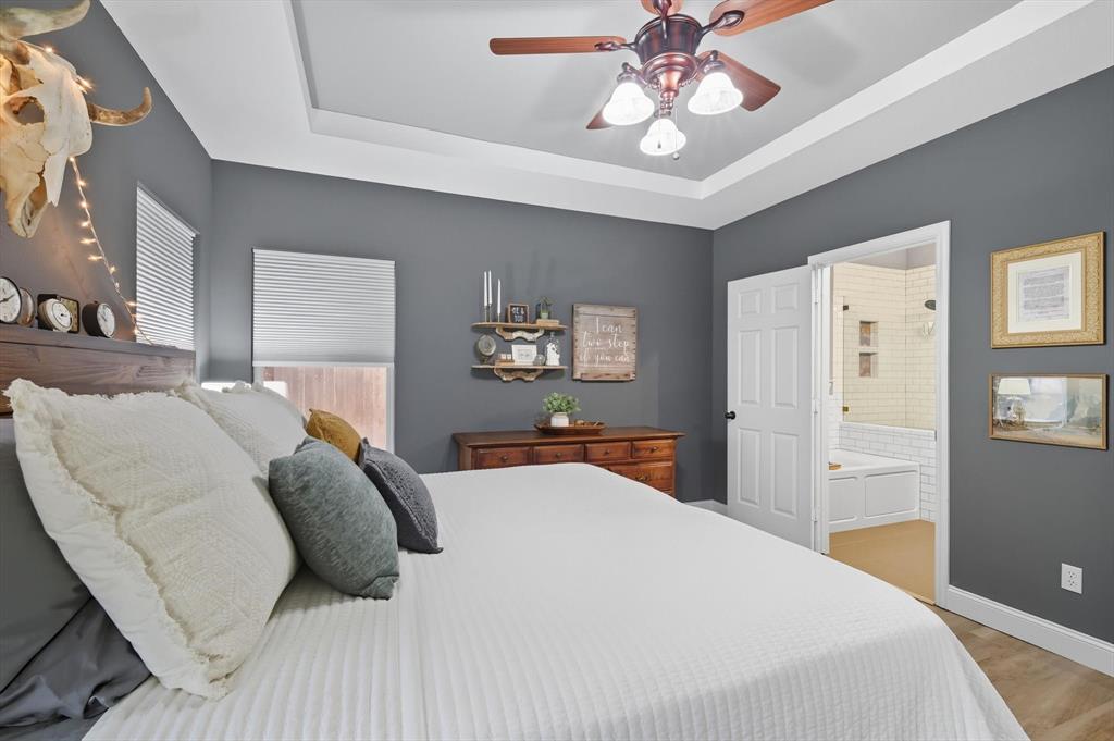 Come see this beautifully updated. 4 bedroom home near Lewisville Lake and Lakeview Marina! No HOA and nestled in a charming suburban neighborhood with that lake community feel. Get cozy in the spacious living room that features an open floorpan, fireplace with gas logs, vaulted ceilings and modern light fixtures. Kitchen boasts stainless appliances, along with both above- and under-cabinet lighting. Primary bedroom with en suite full bathroom, an additional half bath and the laundry room are just down the hall on the lower level. You'll also find updated LVP flooring throughout the first floor. Relax in the primary bath with a jetted tub and separate shower. Double vanity with two medicine cabinets makes this modern bathroom a dream. Upstairs, the landing doubles as a second living area, while the spacious, split bedrooms and newly-updated full bathroom with cabinetry are all conveniently located around that central living space. The upstairs 4th bedroom has a closet with storage outside the room which allows for flexibility: that bonus space could easily become a media room, crafting oasis, game room, or even a dreamy library. The outdoor entertainment areas are just as amazing as the inside! Front porch is perfect for a set of rocking chairs and the back, covered patio with stained concrete has all updated electrical in 2025, outdoor ceiling fans, and twinkle lights to set the mood for a sunset hangout. New AC, solar screens, and EV charger in the garage are all recent updates. Don’t miss this gorgeous, move-in ready home! Full list of upgrades, smart features, and the offer instructions can be found in documents.
