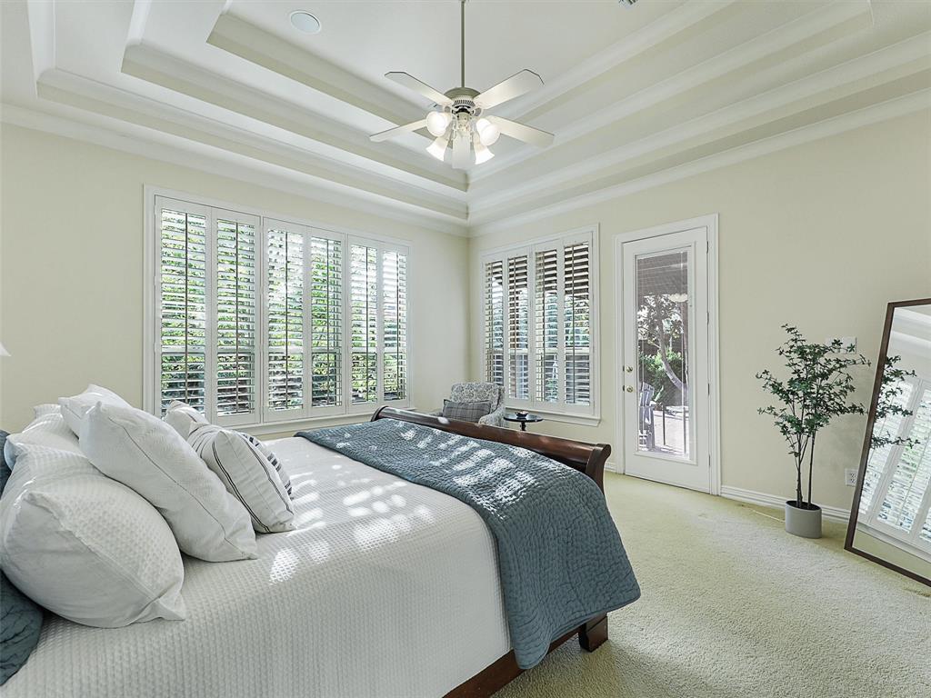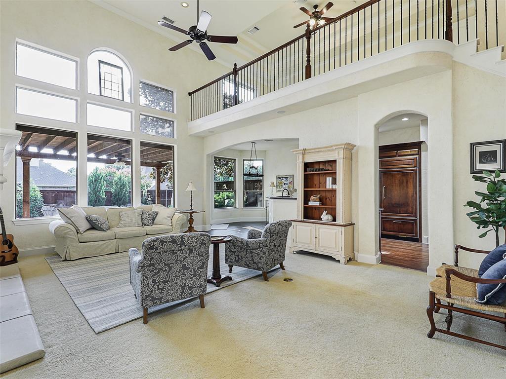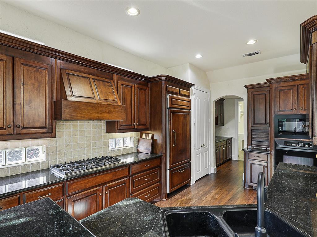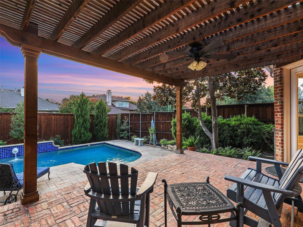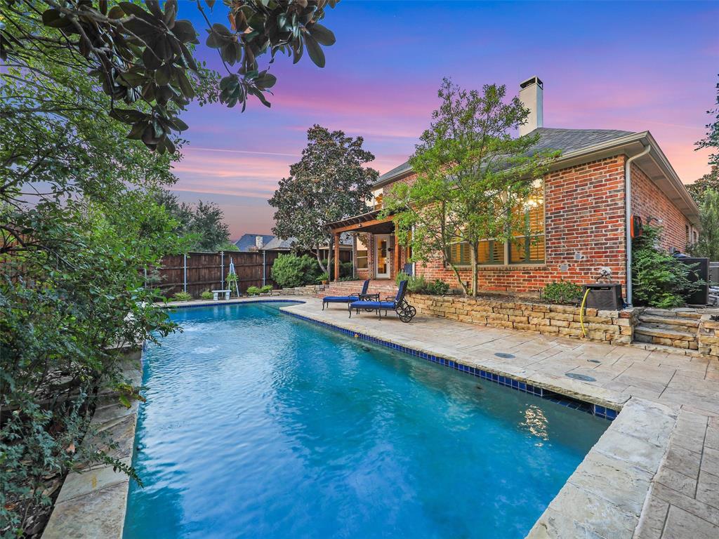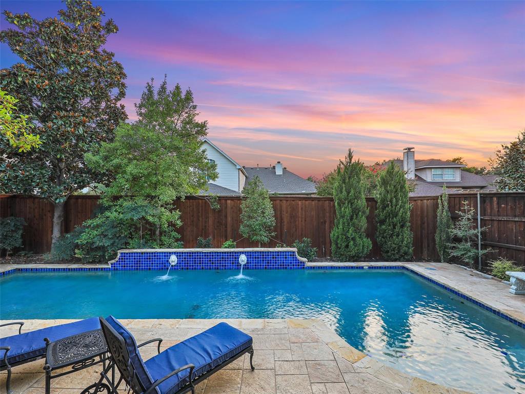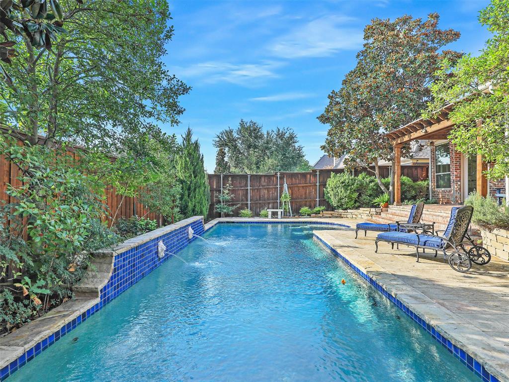 This custom home in a gated premier neighborhood of The Villas at the Lakes on Legacy offers the lifestyle you’ve earned. From the moment you enter this residence the sweeping staircase and soaring ceilings set a tone of sophistication. Just off the foyer, a private study with double French doors, and rich wood paneling offers an inspiring workspace, library, or flexible bedroom option. Natural light pours through two-story living room windows. The kitchen features granite countertops, built-in Sub-Zero refrigerator, Viking gas cooktop, new microwave, and adjacent butler’s pantry with custom cabinetry. Seamlessly connected spaces flow into one another, making gatherings effortless. Upstairs, a spacious loft with a tray ceiling provides the perfect retreat for play, media, or relaxation. The primary suite is a true sanctuary with dual walk-in closets, and private access to the covered patio. The spa-inspired bathroom offers an oversized shower and deep jetted soaking tub. The centerpiece of the backyard is a sparkling heated saltwater gunite pool with a covered patio in a beautifully designed outdoor setting, it creates an ideal space for gatherings with friends or peaceful evenings under the Texas sky. The dining room and secondary-bedroom feature beautiful over-sized paned windows. The garage workshop, equipped with electricity, sink, cabinets and workbench, offers a perfect space for hobbies or projects. The HOA-provided front yard maintenance leaves you free to enjoy everything Frisco has to offer. This home has access to the Lakes Tennis Academy that includes lighted tennis courts, pickleball, pool, fitness center and lounge. Peace of mind comes with major system updates, including a roof replacement, updated HVAC units, and upgraded e-windows. Every element of this home has been designed and maintained with intention, offering not just a place to live, but a way of life to be cherished. Don’t miss the full virtual tour available on the property website.