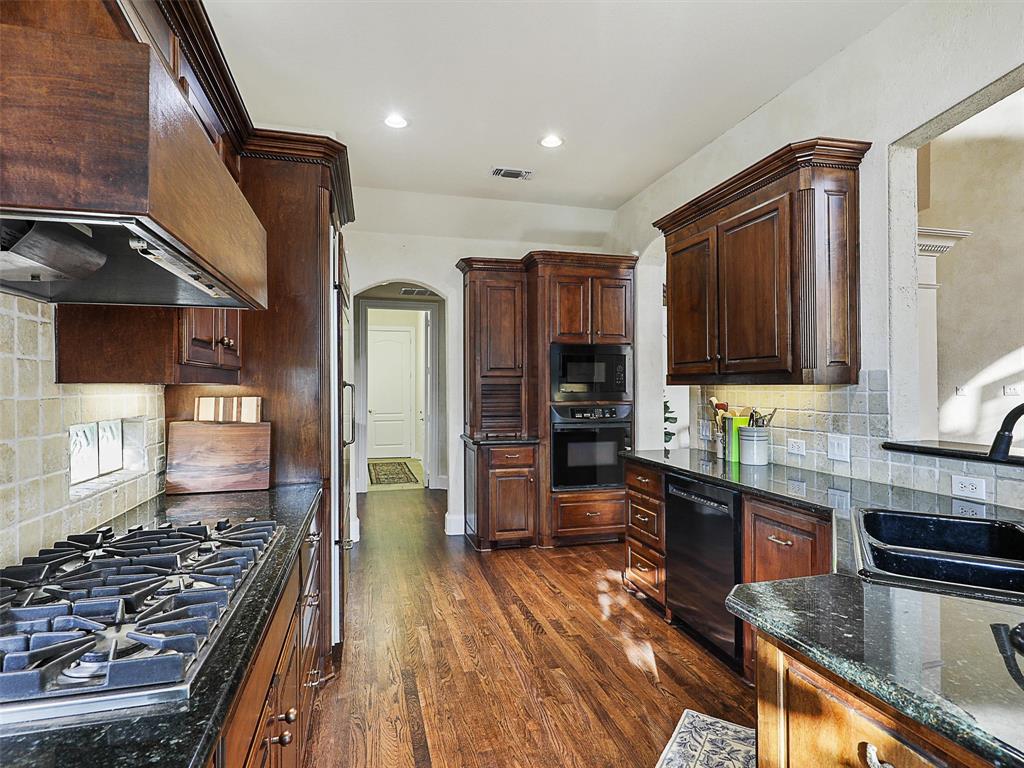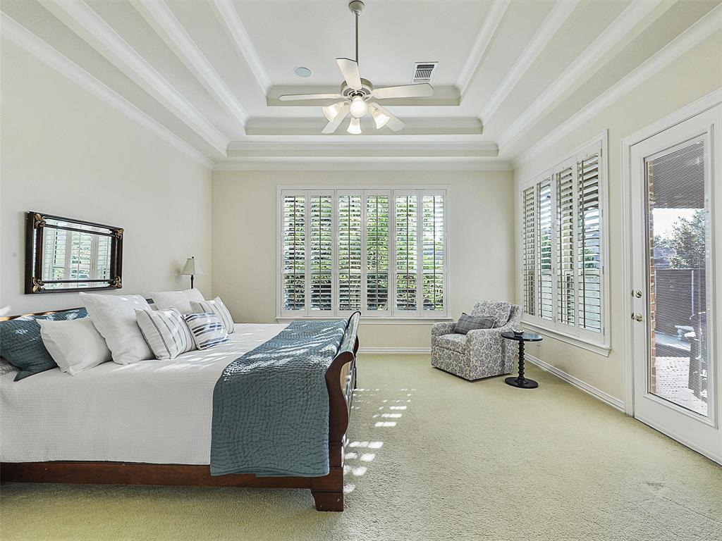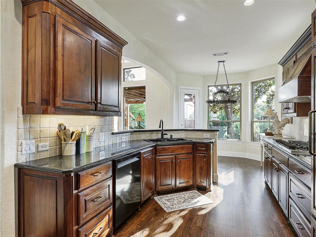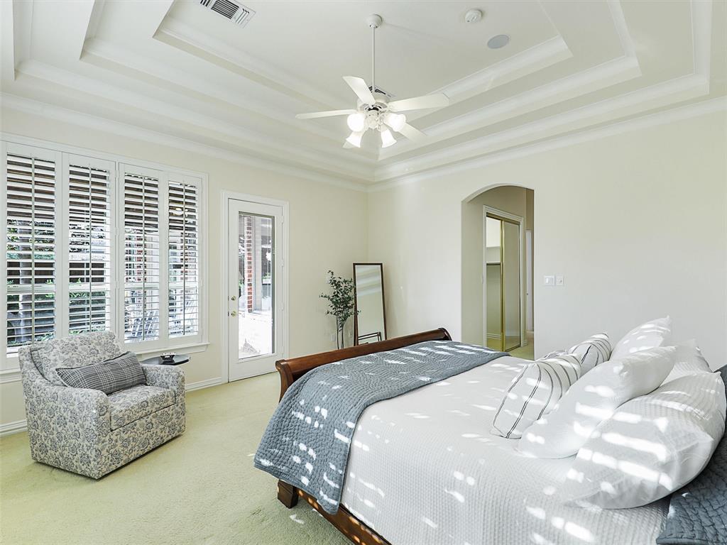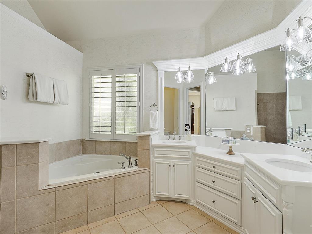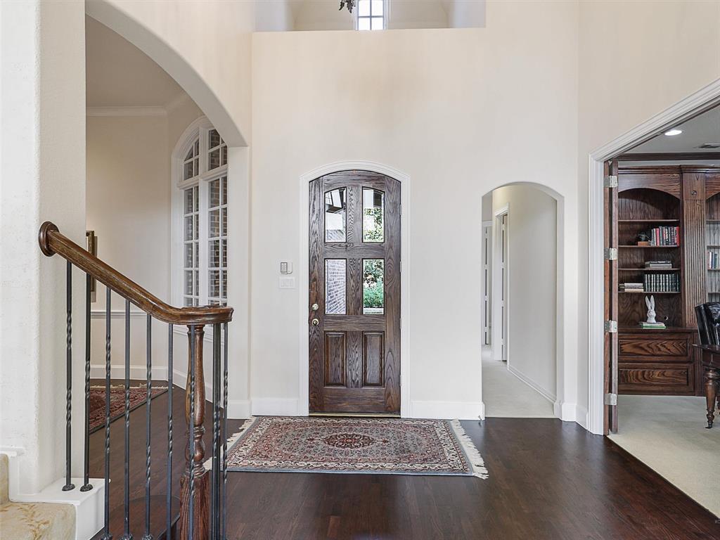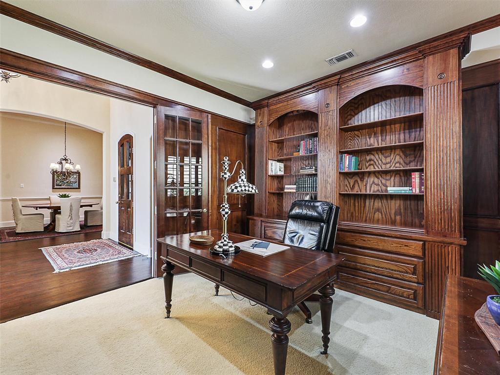 This custom home in a gated premier neighborhood of The Villas at the Lakes on Legacy offers the lifestyle you’ve earned. From the moment you enter this residence the sweeping staircase and soaring ceilings set a tone of sophistication. Just off the foyer, a private study with double French doors, and rich wood paneling offers an inspiring workspace, library, or flexible bedroom option. Natural light pours through two-story living room windows. The kitchen features granite countertops, built-in Sub-Zero refrigerator, Viking gas cooktop, new microwave, and adjacent butler’s pantry with custom cabinetry. Seamlessly connected spaces flow into one another, making gatherings effortless. Upstairs, a spacious loft with a tray ceiling provides the perfect retreat for play, media, or relaxation. The primary suite is a true sanctuary with dual walk-in closets, and private access to the covered patio. The spa-inspired bathroom offers an oversized shower and deep jetted soaking tub. The centerpiece of the backyard is a sparkling heated saltwater gunite pool with a covered patio in a beautifully designed outdoor setting, it creates an ideal space for gatherings with friends or peaceful evenings under the Texas sky. The dining room and secondary-bedroom feature beautiful over-sized paned windows. The garage workshop, equipped with electricity, sink, cabinets and workbench, offers a perfect space for hobbies or projects. The HOA-provided front yard maintenance leaves you free to enjoy everything Frisco has to offer. This home has access to the Lakes Tennis Academy that includes lighted tennis courts, pickleball, pool, fitness center and lounge. Peace of mind comes with major system updates, including a roof replacement, updated HVAC units, and upgraded e-windows. Every element of this home has been designed and maintained with intention, offering not just a place to live, but a way of life to be cherished. Don’t miss the full virtual tour available on the property website.