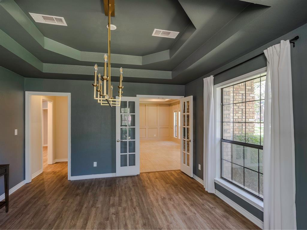 Nestled on nearly an acre in the distinctive gated community of Corinth Forest, this spacious 5-bedroom home offers both privacy and convenience. Shaded by mature trees throughout the property and neighborhood, the home is designed for comfort in every season. Inside you’ll find 3 inviting living areas, 2 dining areas, a dedicated office connected to the primary suite, and a split bedroom floorplan that provides privacy for everyone. The primary suite features a private backyard entrance, a generous ensuite bath with a roomy shower, and a walk-in closet. Two additional downstairs bedrooms each include their own full bath, while two upstairs bedrooms share a Jack & Jill bath.