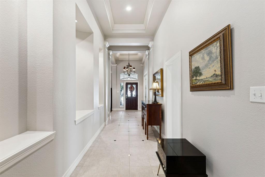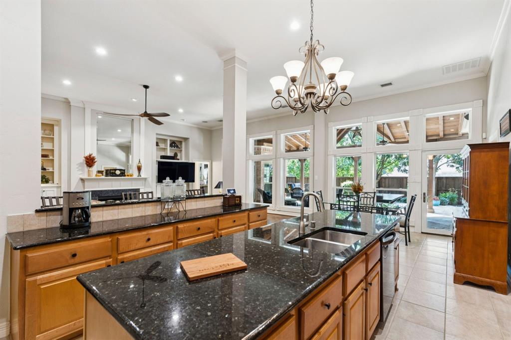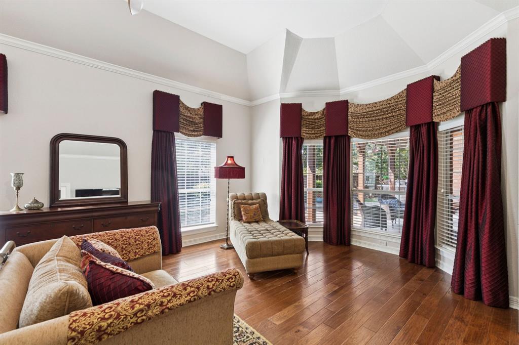 Welcome home to this beautiful 1-story, 4-bed, 3.5-bath retreat in friendly Wyndsor Grove community of McKinney. The moment you walk in, you’ll notice the rich hardwood floors, intricate crown molding, & custom wall detailing, creating a warm & welcoming atmosphere. The family room is perfect for gathering w loved ones, featuring wood-mantel fireplace w built-in mirror flanked by custom built-ins, a cozy spot to relax or share laughter & stories w friends. You’ll also love the surround sound system w in-ceiling speakers in family rm, dining rm, & office, plus exterior speakers on patio, making it easy to enjoy music & entertainment throughout the home. Kitchen is ready for everyday meals & special celebrations, w black granite counters, built-in double ovens & microwave, gas cooktop, breakfast bar, & convenient butler’s pantry flowing seamlessly into the dining rm. Office features custom wood built-ins & large windows, making it a light-filled, bright space perfect for working from home or managing everyday tasks. Your primary suite is a luxurious retreat, highlighted by elegant custom molding & built-in mirrors that frame the bed with sophistication. Vaulted ceilings & a cozy sitting area add to the sense of openness & comfort. The spa-inspired bath features dual vanities, a relaxing jetted tub, and a separate tiled shower. Completing the retreat are his-and-her closets, offering generous space & organization. A spacious laundry rm with built-ins & plenty of counter space makes household chores easier. The home includes flooring & electricity in the attic, providing a bonus storage option. A shed on the side of the house offers even more storage for tools & equipment. Step outside to your backyard oasis, designed for entertaining with a covered stone patio, built-in grill, lush landscaping, & outdoor speakers, perfect for gatherings, or morning coffee. Located near top-rated schools, shopping, & dining, it’s ready to welcome you to the next chapter of your life.