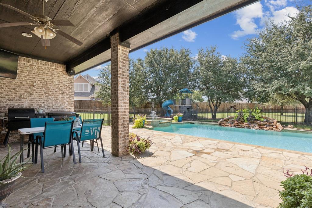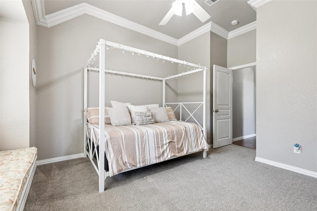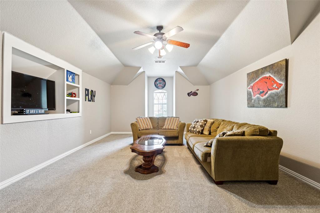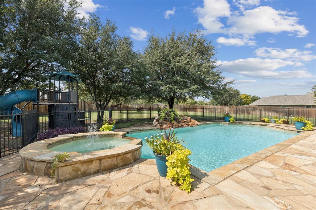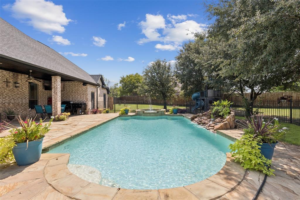 Welcome to this spacious 4-bedroom, 2.5-bath home featuring a 3-car garage and situated on an oversized lot. From the moment you walk in, you’ll feel the inviting warmth of this thoughtfully designed layout. The home offers both a formal dining space and a casual eat-in kitchen. The kitchen is open to the living room and showcases charming brick accents, stainless steel appliances, and plenty of counter space for cooking and entertaining. The primary suite is tucked away for privacy and includes a spa-like ensuite with dual vanities, a separate shower, soaking tub, and a generous walk-in closet. Secondary bedrooms are located on the opposite side of the home, with two sharing a Jack-and-Jill bath and walk-in closets, while the fourth bedroom is ideal for guests. The guest bedroom and upstairs game room each have their own thermostats and are on a zoned AC system, providing personalized comfort. A convenient half bath with direct access to the backyard is perfect for poolside use. Upstairs, a large game room provides the perfect space for gatherings, movie nights, or entertaining. Step outside to your own private retreat, complete with a heated in-ground pool, relaxing spa, and an oversized covered patio. The massive backyard offers endless possibilities, whether you want to garden, add a storage shed, or simply enjoy the open space. Conveniently located near Highway 287 and I-35W, this home provides easy access to commuting routes, shopping, dining, and entertainment. Schedule your home tour today!