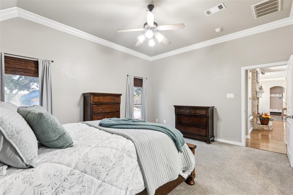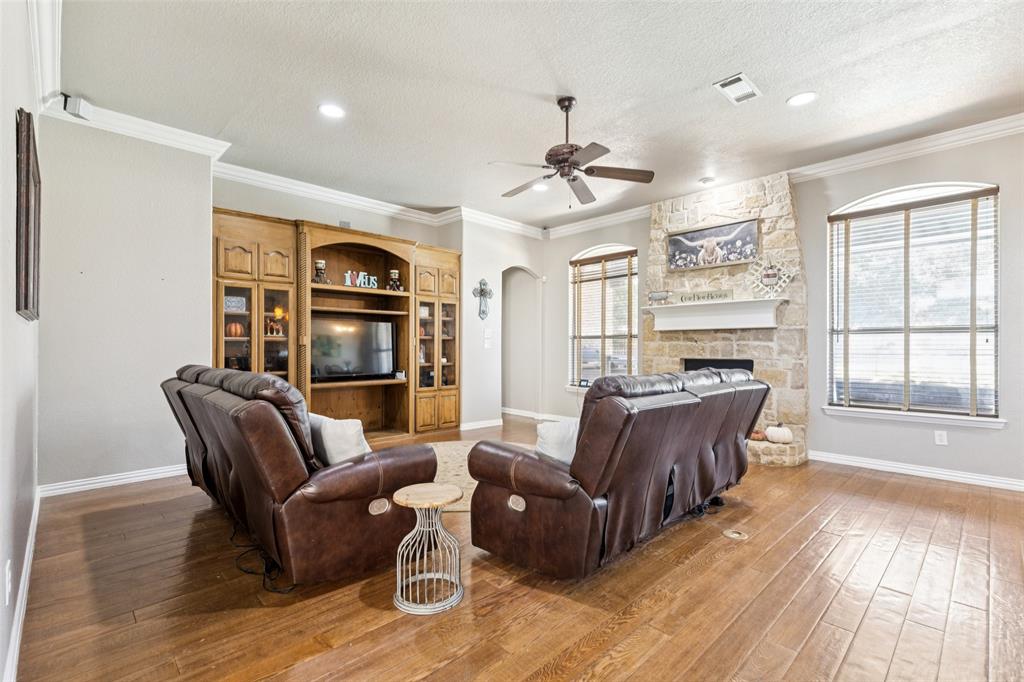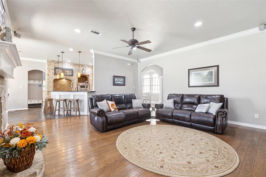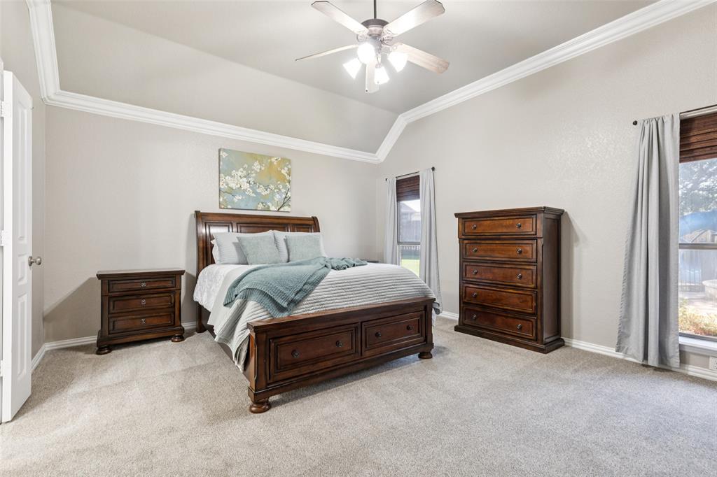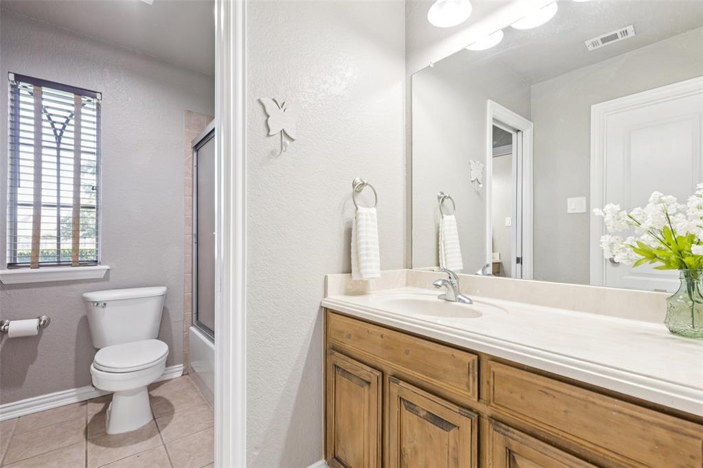 Welcome to this spacious 4-bedroom, 2.5-bath home featuring a 3-car garage and situated on an oversized lot. From the moment you walk in, you’ll feel the inviting warmth of this thoughtfully designed layout. The home offers both a formal dining space and a casual eat-in kitchen. The kitchen is open to the living room and showcases charming brick accents, stainless steel appliances, and plenty of counter space for cooking and entertaining. The primary suite is tucked away for privacy and includes a spa-like ensuite with dual vanities, a separate shower, soaking tub, and a generous walk-in closet. Secondary bedrooms are located on the opposite side of the home, with two sharing a Jack-and-Jill bath and walk-in closets, while the fourth bedroom is ideal for guests. The guest bedroom and upstairs game room each have their own thermostats and are on a zoned AC system, providing personalized comfort. A convenient half bath with direct access to the backyard is perfect for poolside use. Upstairs, a large game room provides the perfect space for gatherings, movie nights, or entertaining. Step outside to your own private retreat, complete with a heated in-ground pool, relaxing spa, and an oversized covered patio. The massive backyard offers endless possibilities, whether you want to garden, add a storage shed, or simply enjoy the open space. Conveniently located near Highway 287 and I-35W, this home provides easy access to commuting routes, shopping, dining, and entertainment. Schedule your home tour today!