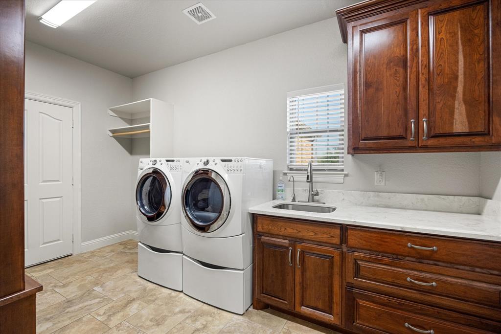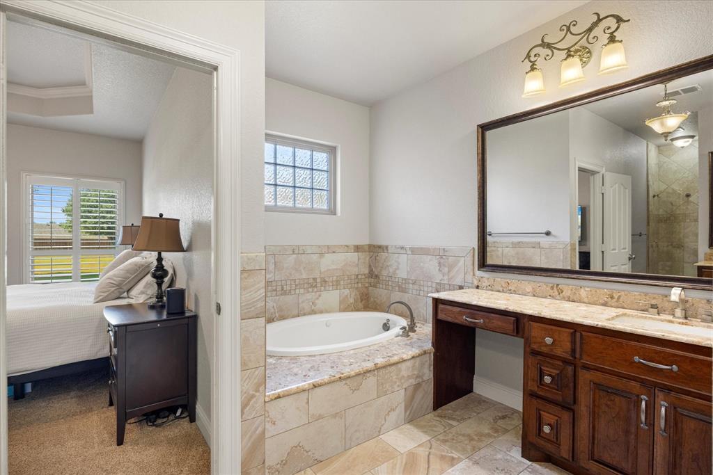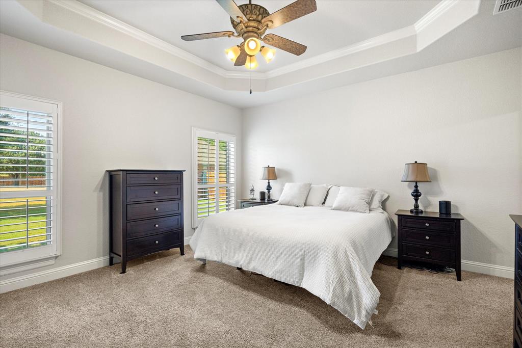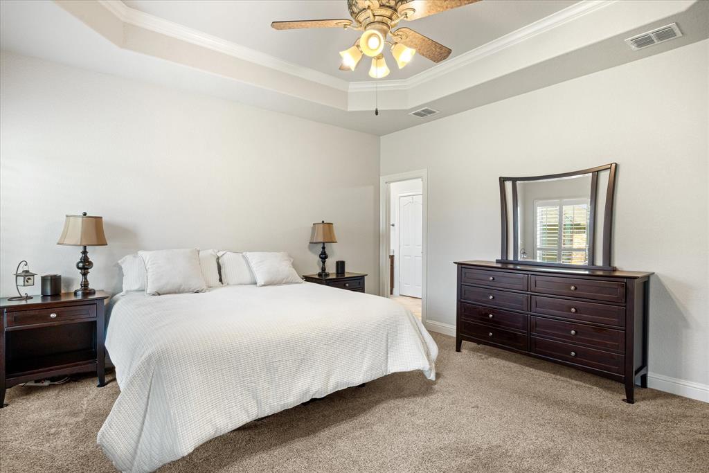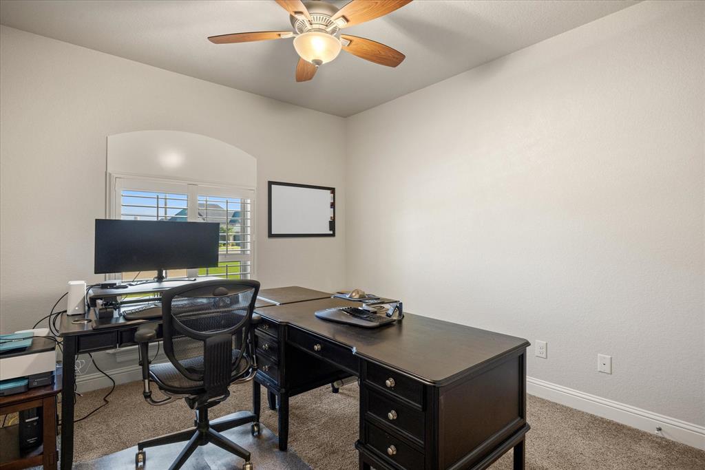 This one of a kind custom builder's personal home has been so meticulously maintained it shows like a new home. 2.25% VA Assumable loan; see transaction desk. A true chef's dream kitchen featuring an abundance of beautiful custom cabinetry, double ovens, coffee bar, a massive island and peninsula, and walk-in pantry. The nicely sized dining area just off the kitchen has a gorgous custom built in buffet with wall mounted lighted china hutch. This home is complete with 4 bedrooms, 3 baths plus TWO flex rooms in the highly desirable lake community of Bentwater Estates. Enjoy your spa-like primary bathroom with his and her vanities, jetted bathtub and separate walk-in shower. This home has ample custom cabinetry, built-ins and storage, even in the garage.