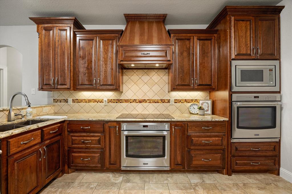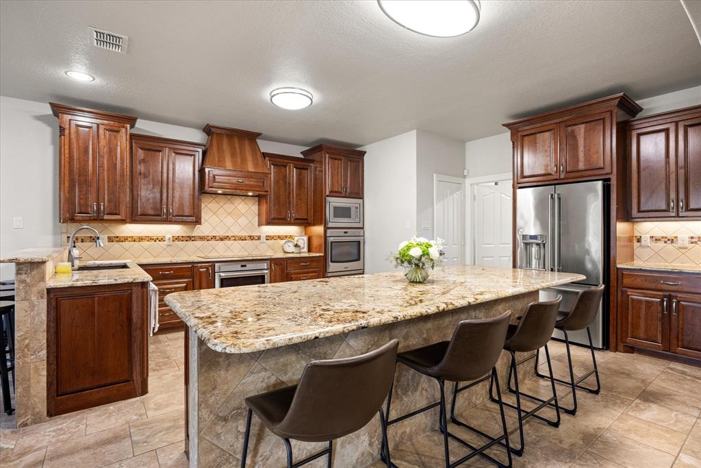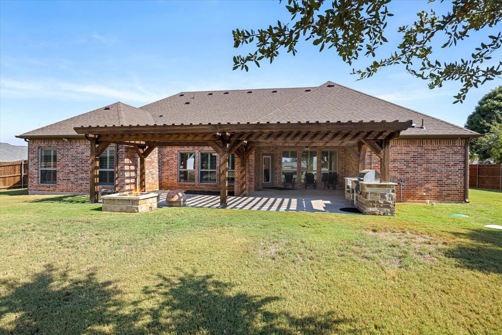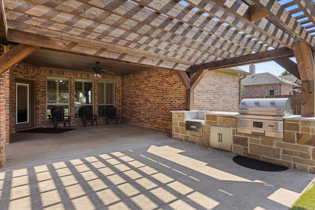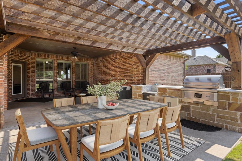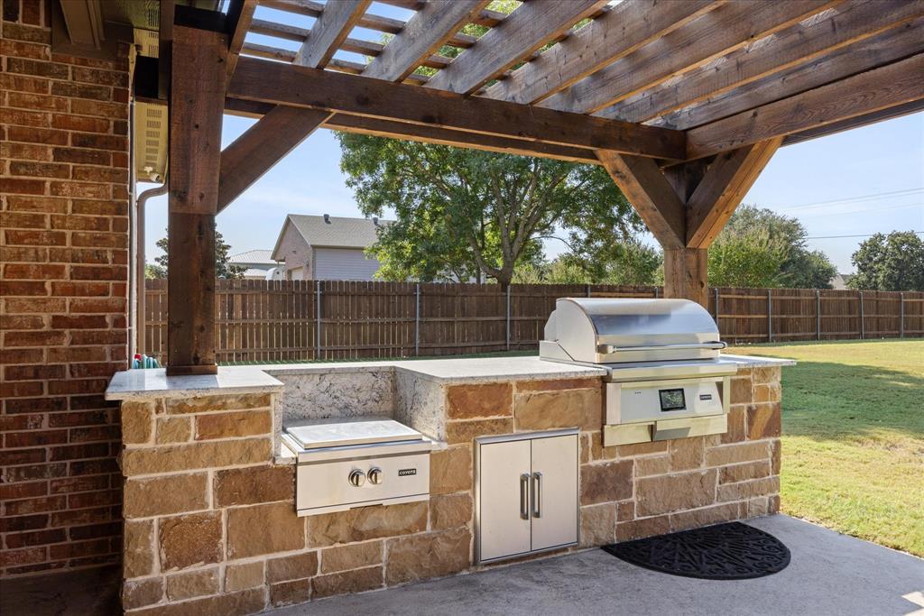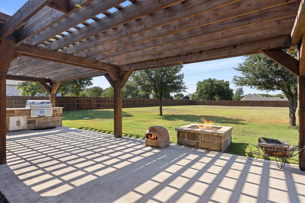 Enjoy your custom outdoor kitchen and entertainment area finished with gas fire pit, coyote pellet grill with gas burner, pizza oven and wonderful cedar pergola for all your outdoor dining experiences.