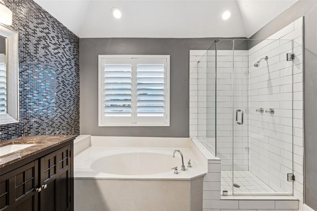 Dallas living at its finest! This beautifully updated 3-bedroom, 2.5-bath home in exemplary Plano ISD (Plano West HS) is filled with natural light and modern touches throughout. The spacious kitchen opens to the breakfast and living rooms and boasts quartz countertops, an updated backsplash, stainless steel appliances, and a walk-in pantry—perfect for everyday living and entertaining. All bedrooms are located upstairs, including a huge primary suite overlooking the backyard with a remodeled ensuite featuring a frameless glass shower. The secondary bath has also been updated with timeless subway tile. This home has been extensively upgraded for style, comfort, and efficiency: new roof (2023), Pella windows, spray foam attic insulation with updated ductwork, new electrical panel (2022), resurfaced Pebbletec pool, fresh baseboards upstairs, plantation shutters, new flooring downstairs and in secondary bedrooms, and decorative lighting throughout. Additional updates include a new dishwasher, resurfaced ceilings (no popcorn!), new front door, and garage floor polyurea coating. Enjoy private backyard oasis! The sparkling pool with plumbed-in slide, safety fence, new pump, and built-in gas grill makes outdoor entertaining effortless. The yard is fully turfed with limestone gravel and river rock for easy maintenance, while the horizontal BOB fence (stained 2025) ensures both beauty and privacy. With countless updates, energy-efficient features, and an unbeatable North Dallas location, this modern home with a backyard retreat is ready for you to enjoy! 3D tour available online