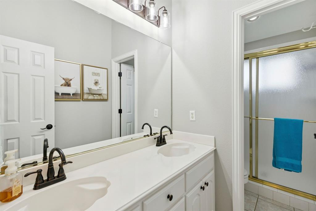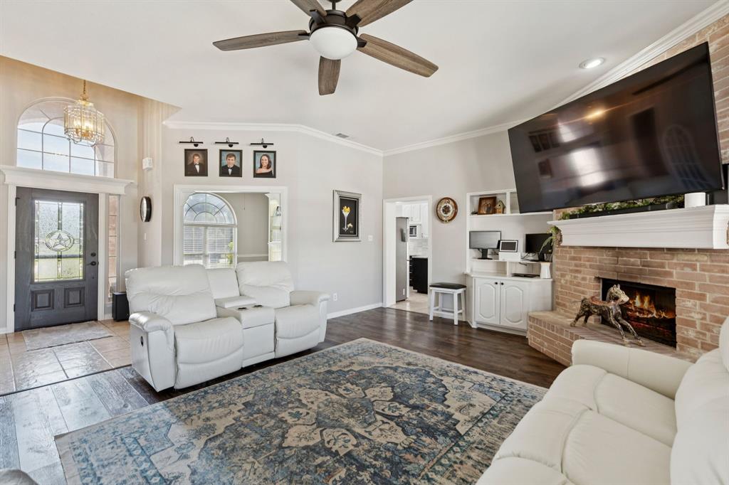 Welcome to 119 Mustang Trail, a beautifully refreshed 2.5-bedroom, 3-bath home offering 2,127 square feet of living space on a generous lot. Built in 1997 and thoughtfully updated, this property combines timeless design with modern improvements for comfort and peace of mind. Recent exterior upgrades include a new roof on the house and outbuildings, fresh paint, new entry doors, and a stained fence that enhances curb appeal and durability. The backyard is a true highlight, featuring a sparkling pool and spa that have been resurfaced with new tile and plaster, a tiled patio ideal for outdoor gatherings, and newly planted palm trees that create a resort-like atmosphere. With both covered and open areas, this outdoor retreat is designed for entertaining or unwinding in style. Inside, the kitchen and laundry remodel bring in sleek quartz counters, new cabinetry, and functional layouts that make everyday tasks a pleasure. The home’s interior has been updated throughout with waterproof vinyl flooring, new paint, modern ceiling fans, and stylish light fixtures that brighten every space. The great room features soaring ceilings, crown molding, and a cozy fireplace upgraded with ventless gas logs and remote thermostat. New door hardware and thoughtful finish updates add to the move-in-ready appeal. Comfort is further enhanced by a Daikin 18 SEER HVAC system under lease with service plan. The layout offers oversized rooms, a study, and flexible spaces designed for both entertaining and daily living. The four-car garage includes a detached bay that can serve as a workshop, hobby space, or boat parking. Nestled in a quiet neighborhood close to Corinth Community Park, this home delivers a rare blend of space, updates, and convenience in a welcoming setting.
