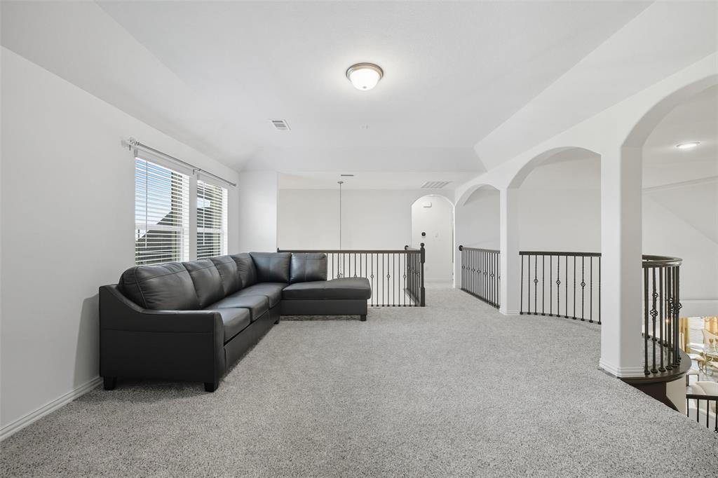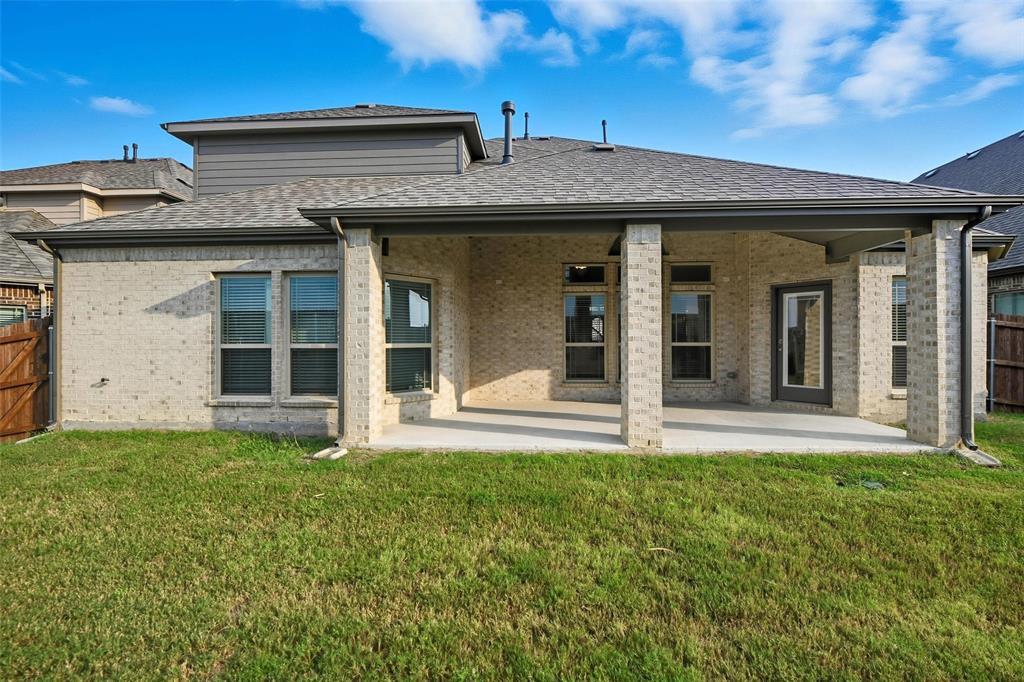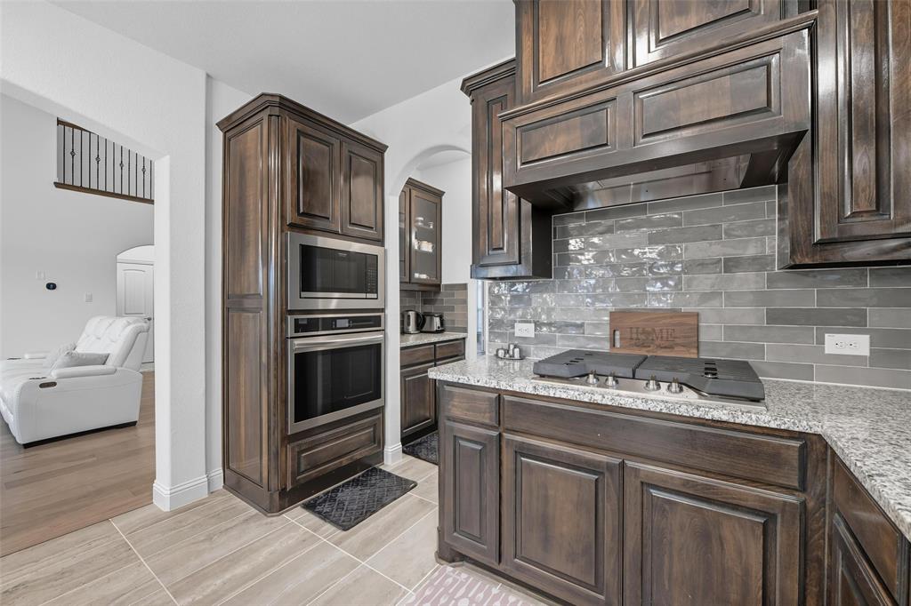 Check out this beautiful First Texas Homes StoneBriar Elevation in highly sought out Mansfield. This stunning home features a front swing Smartside wood garage door, bay windows, and cedar shutters. Enjoy nearly 4,400 square feet of living space including 6 bedrooms, 4 full baths, 3 living rooms, media room and office! Huge covered patio 11x20. 2 bedrooms down and 4 bedrooms up. Gorgeous curved staircase, large California island kitchen, built-in oven with microwave, upgraded gas cooktop, custom cabinets, decorative wood cabinet vent, and butlers pantry! Granite countertops in kitchen and master bath. A bench seat large master shower. Media and family room are prewired for surround sound. Soaring ceilings in living room. Abundant real wood floors in entry, formals, study and family room! Enjoy this newer home without the new home price! You'll appreciate the community amenities including: walking path, playground, adult & children's pools coming soon, and one of the LOWEST tax rates in Mansfield ISD! Home is covered under Builders 10 Year Structural Warranty.