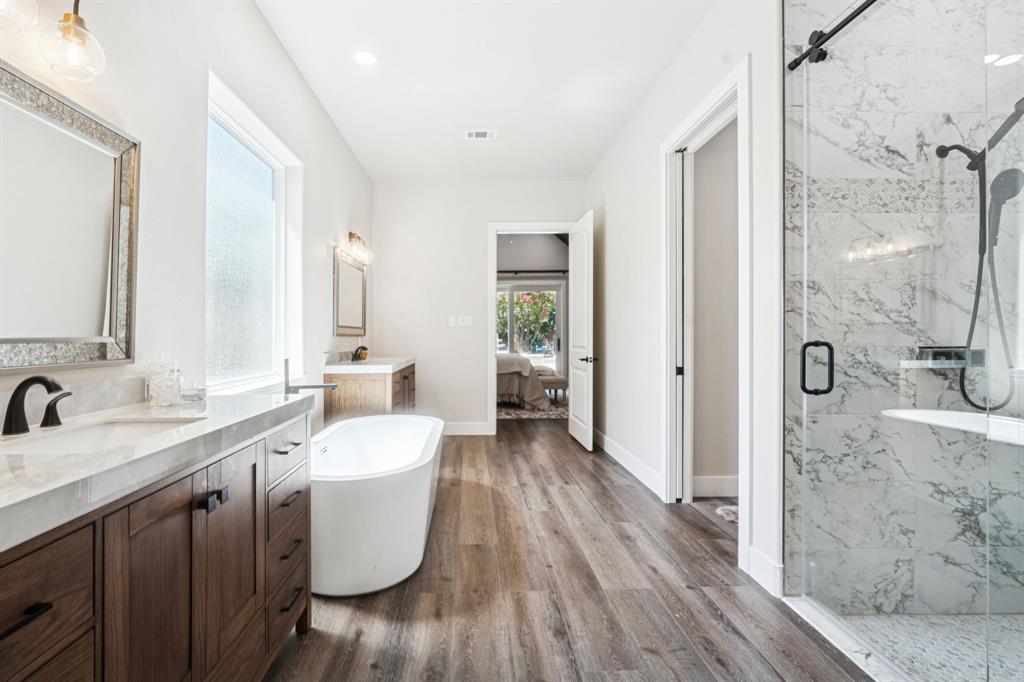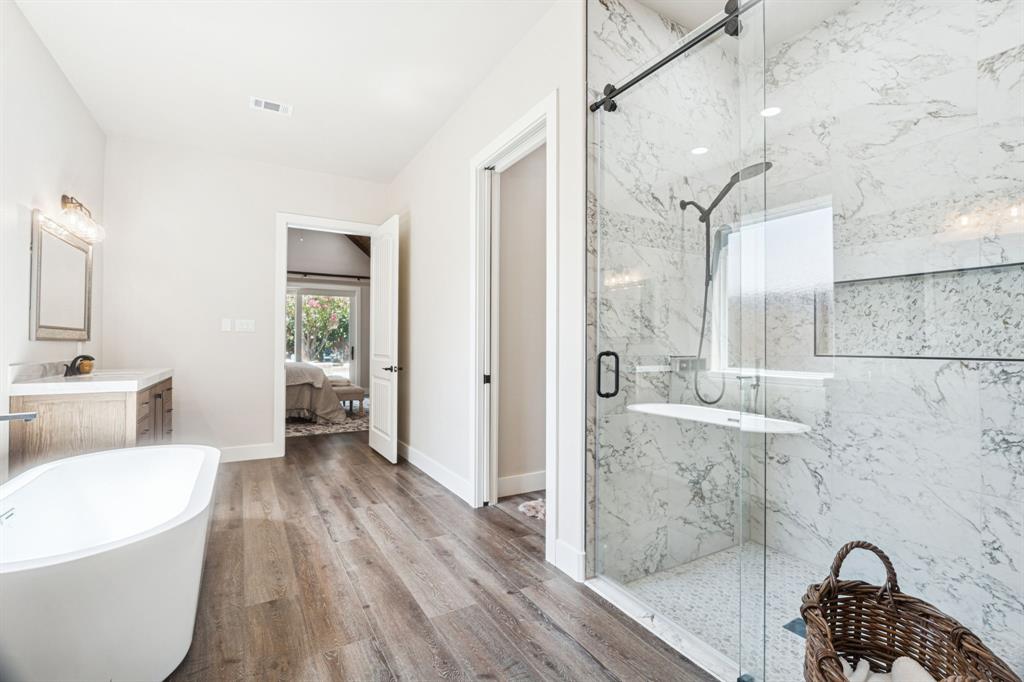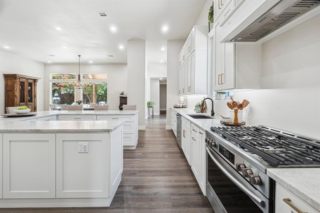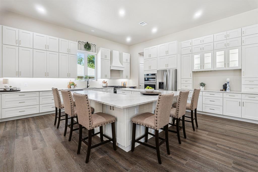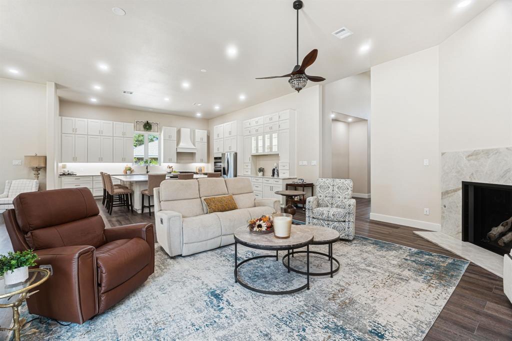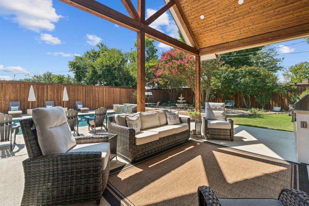 Welcome to this stunning 2025 custom-built home in Highland Village, perfectly situated on over one-third of an acre with resort-style amenities. Designed for comfort and entertaining, this 4-bedroom home offers private ensuite baths for every bedroom and thoughtful details throughout. The open-concept living room features a ceiling fan and cozy gas log fireplace, flowing seamlessly into the gourmet kitchen with quartz countertops, gas range, butler’s pantry, decorative lighting, and a one-of-a-kind island with abundant storage. Technology-ready with Cat 5 hardwire for surround sound, this home also boasts an extra-wide driveway leading to a 2-car oversized garage and a spacious walk-in attic. Upstairs, a large game room offers two generous storage rooms stretching the length of the space. The primary retreat showcases a vaulted cedar-lined ceiling, direct pool access, and a spa-like ensuite with soaking tub, oversized walk-in shower, and dual vanities. Step outside to enjoy the covered patio with outdoor kitchen, sparkling pool with water feature, and pool bath access—plus plenty of yard space for kids or pets to play. A true blend of luxury and function, this Highland Village home is designed for everyday living and memorable gatherings.