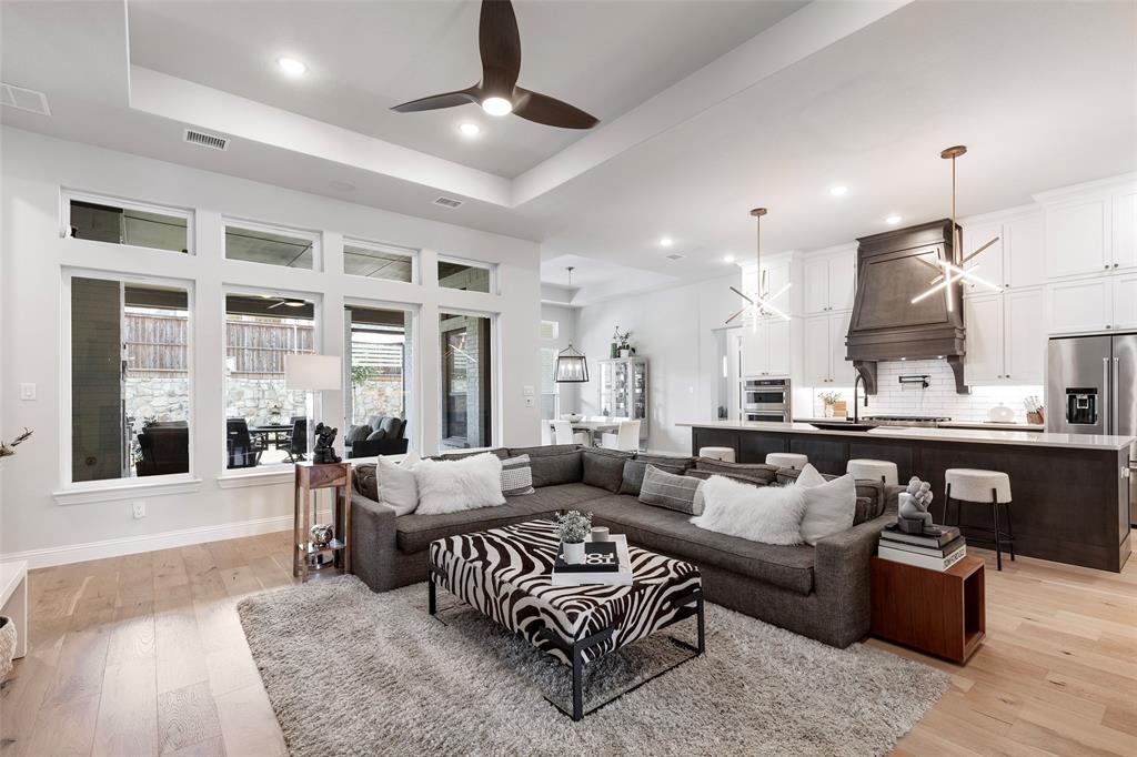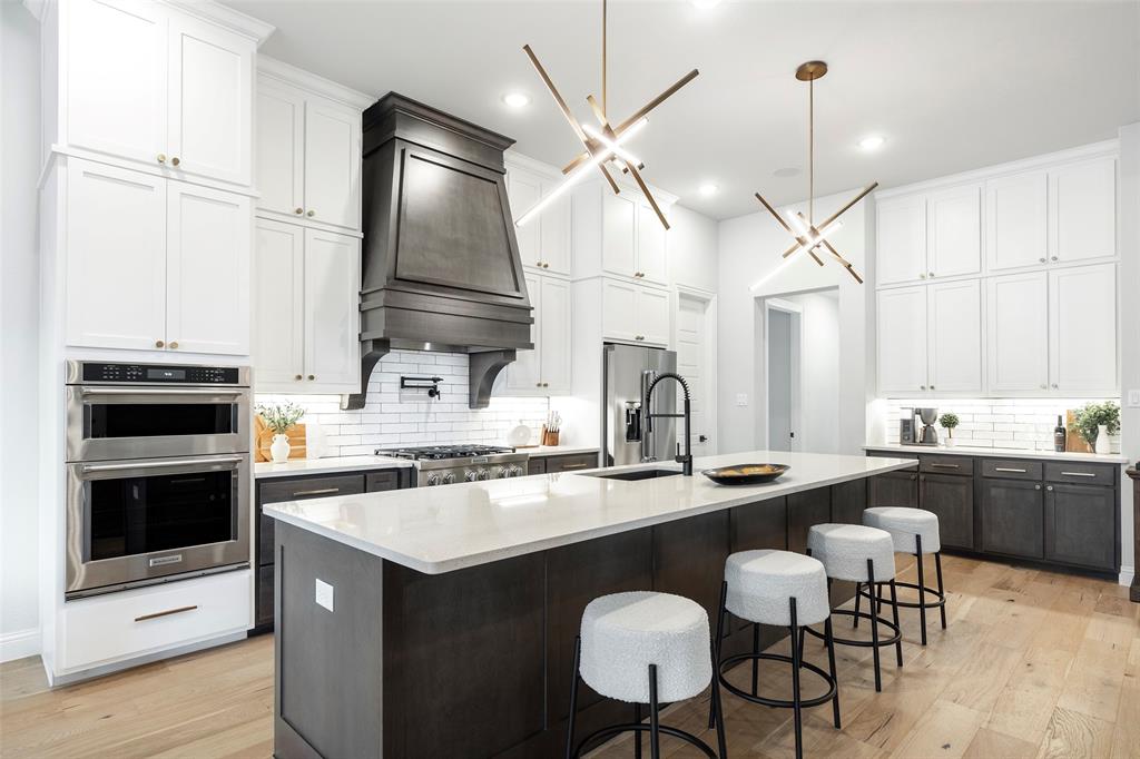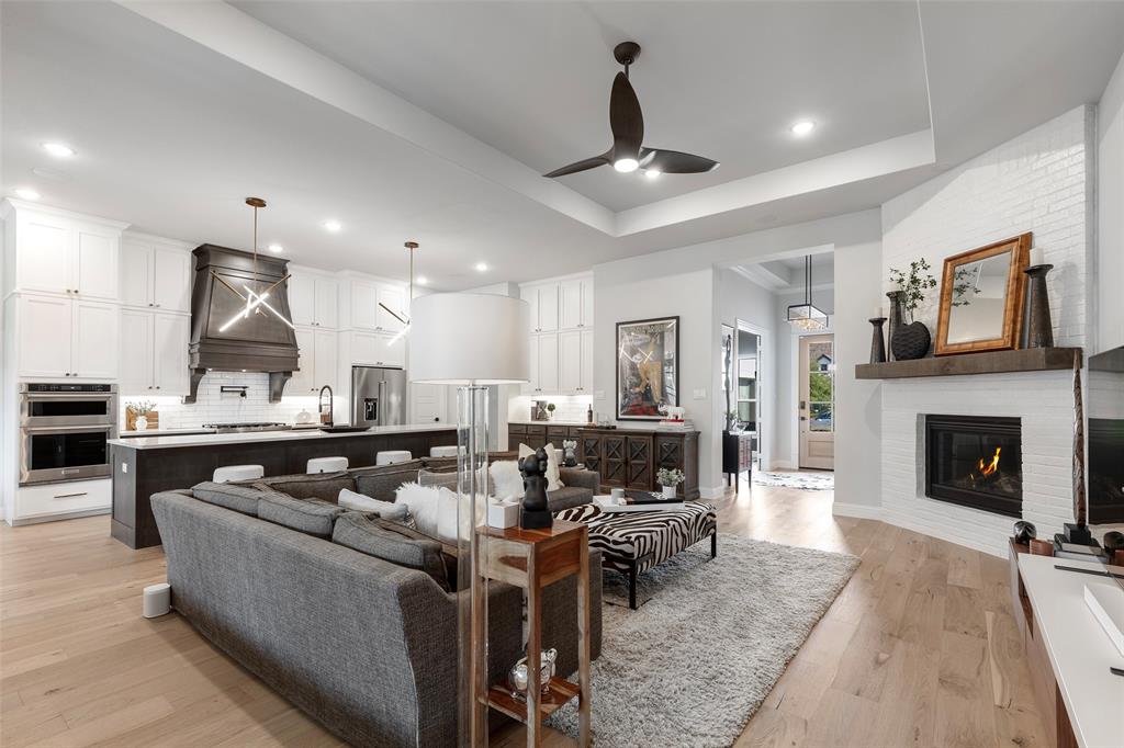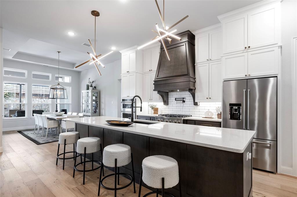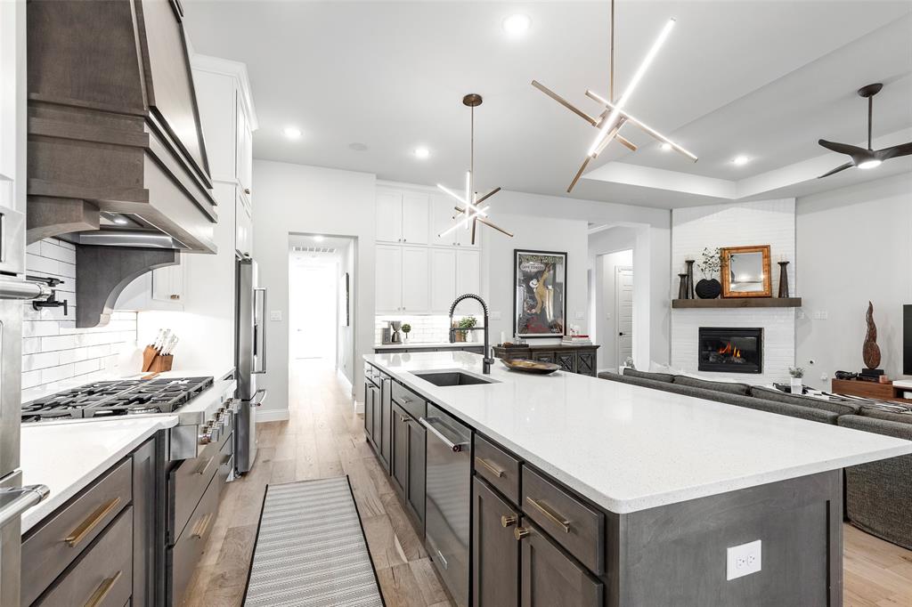 The open concept is anchored by a chefs kitchen with a stunning 12 foot island, ample cabinets and counters & oversized pantry. Here you find upgraded appliances, silgranite sink, beautiful hardware and fixtures, & pot filler. The kitchen is flanked by a large family room with a beautiful gas fireplace & a dining area that seats up to 10 or more.