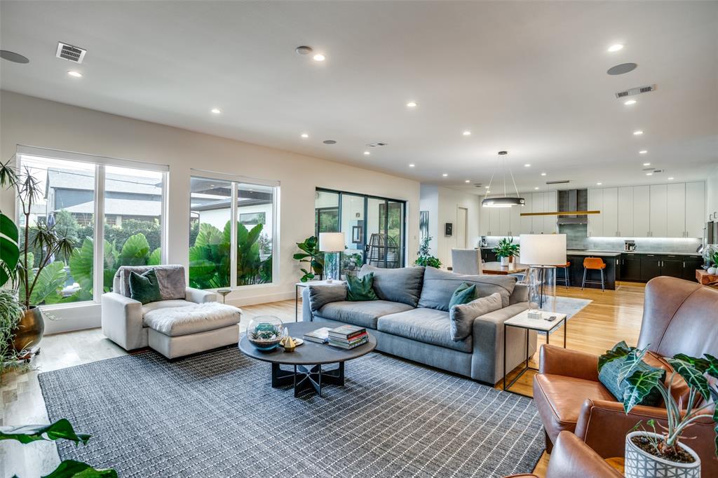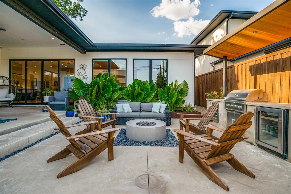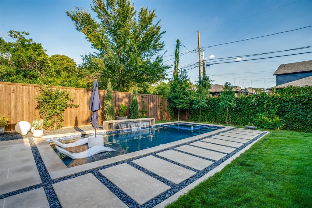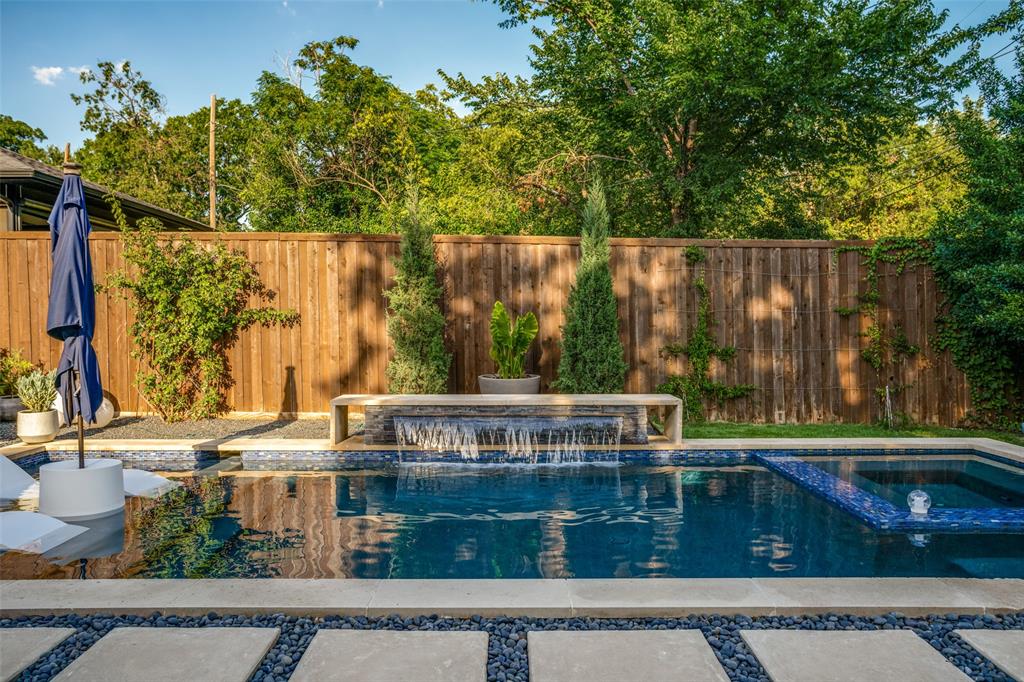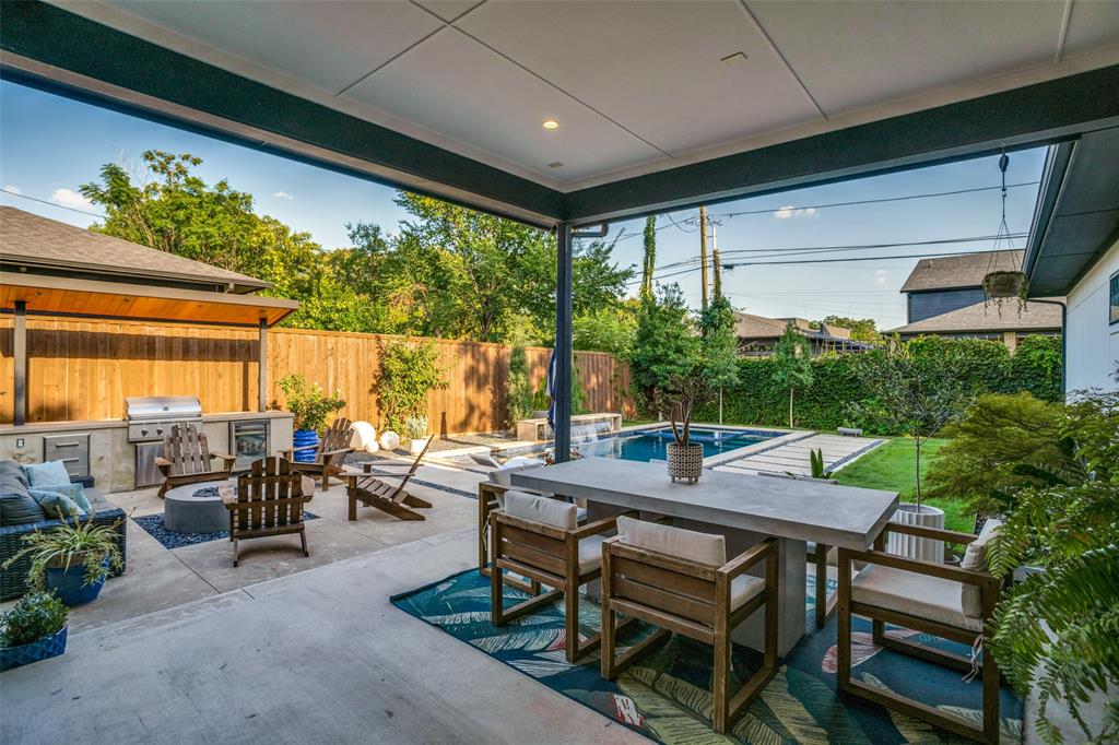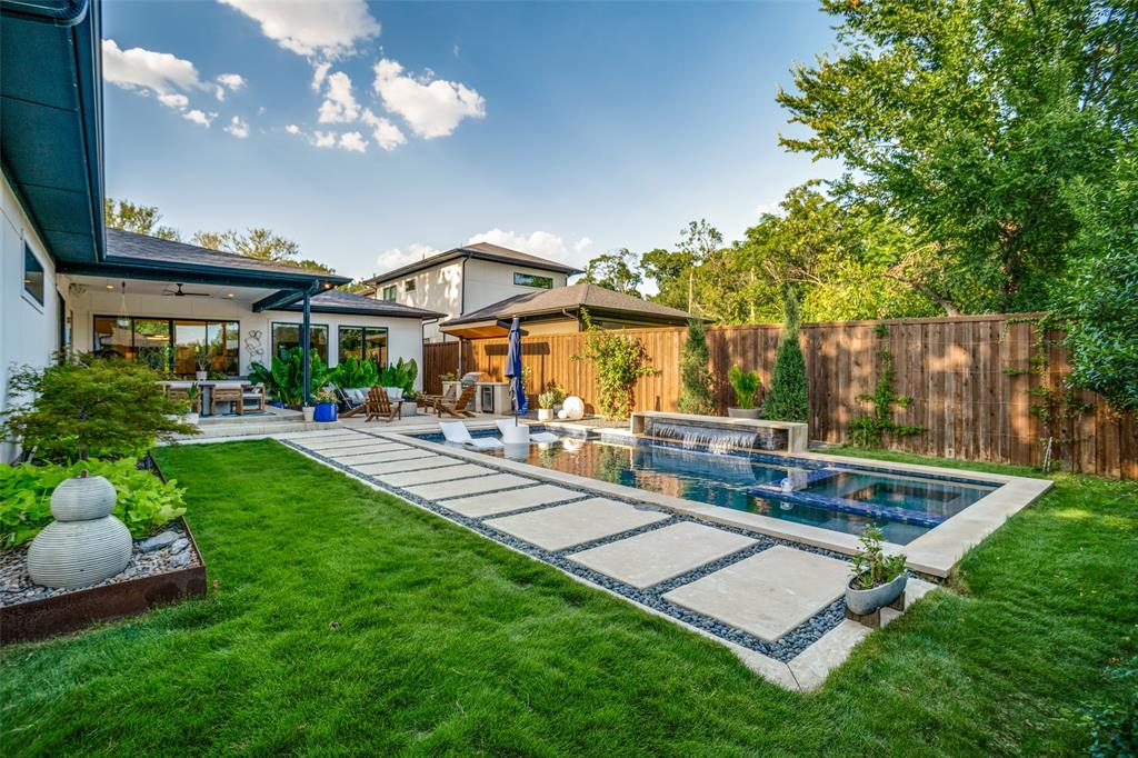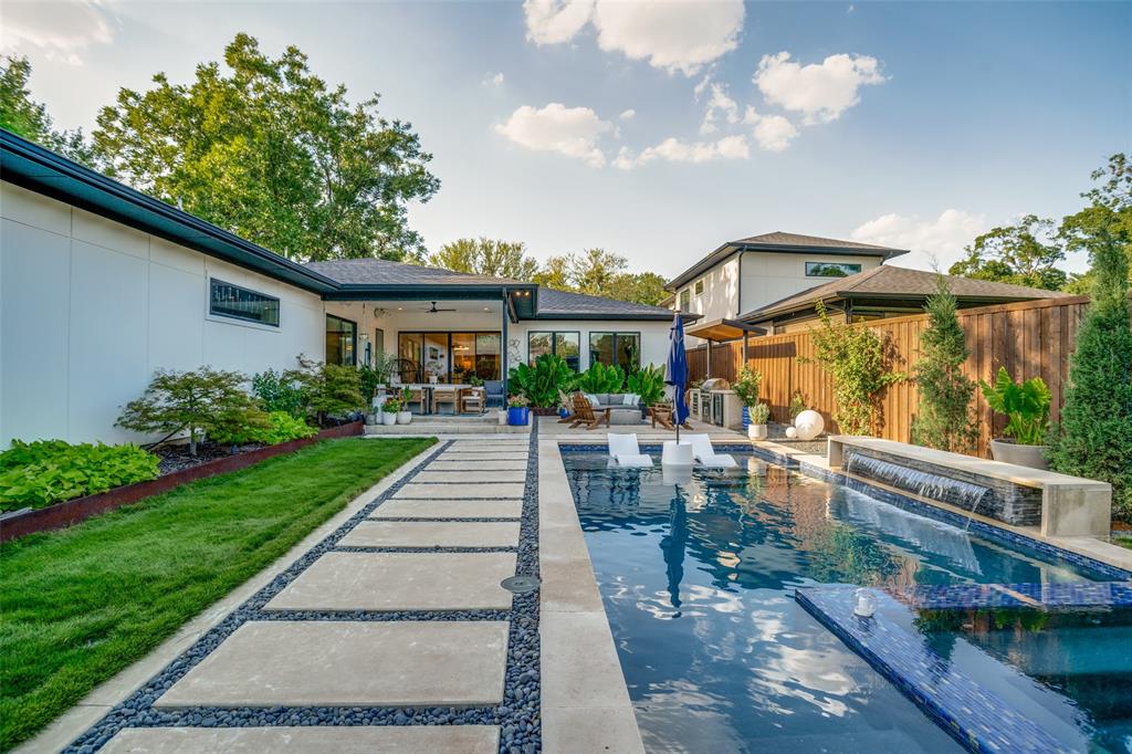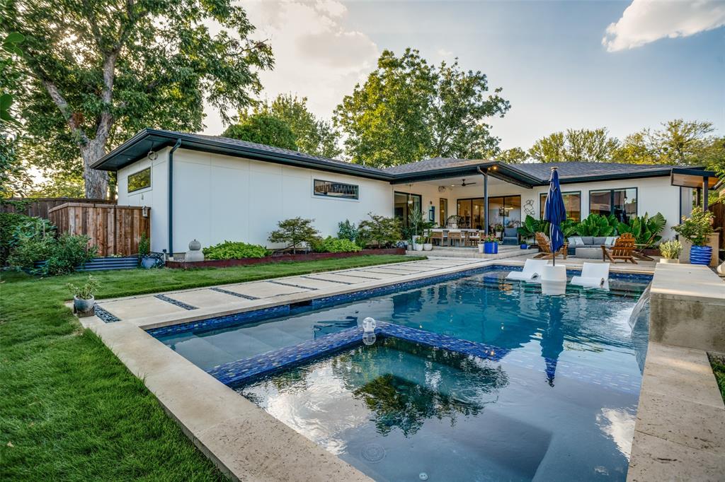 This is the home you have been waiting for! Nestled on a quiet street in Midway Hollow, this highly sought single level home offers the luxury of comfort and modern style. It features three bedrooms, three baths, large office and an absolutely amazing back yard! Entry opens to a large foyer leading to an open kitchen-dining-living area with high ceilings and huge windows that fill the home with natural light. The kitchen is nicely appointed with Bertazzoni appliances including convection gas range-oven, French door refrigerator, under mount canopy vent hood, and Dishwasher. A Danby Wine Fridge, large walk-in pantry, and connected mud room make this kitchen complete. Perfect for entertaining with seamless indoor-outdoor living. The living room extends to a spacious patio with multiple lounging areas, a fire pit, covered and lighted outdoor kitchen, and a temperature controlled salt water pool and spa. As if it couldn't get any better, the back yard is surrounded with gorgeous landscaping that gives you a perfect place for relaxing while getting visited by hummingbirds and other feathered friends. The primary suite offers a spa-like retreat with a free standing vessel tub, large shower, dual mounted sinks, floating vanity and an absolutely huge closet. So many features including surround speakers, CAT 5, Control IV® Smarthome Dashboard, White Oak hardwood floors, designer lighting, electric shades, E3 double pane windows, foam insulation, 2 zoned HVAC systems, Rheem tankless water heater, sprinkler system, 8' privacy fence and so much more! Conveniently located to Love Field, restaurants and the Galleria. Easy access to NW Highway, 635 and the tollroad.