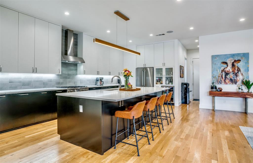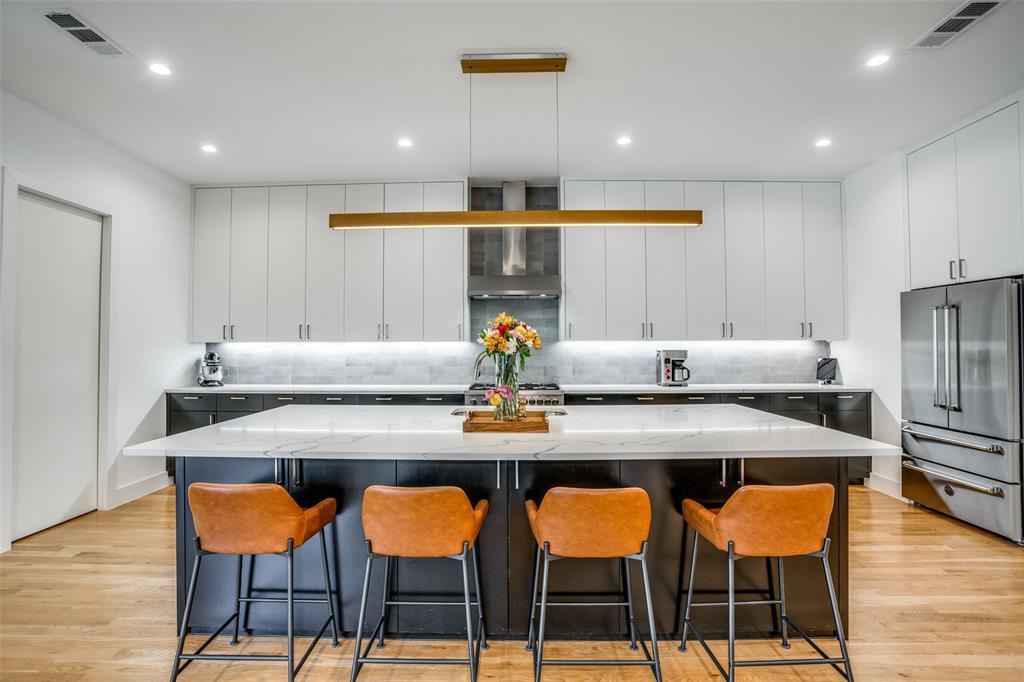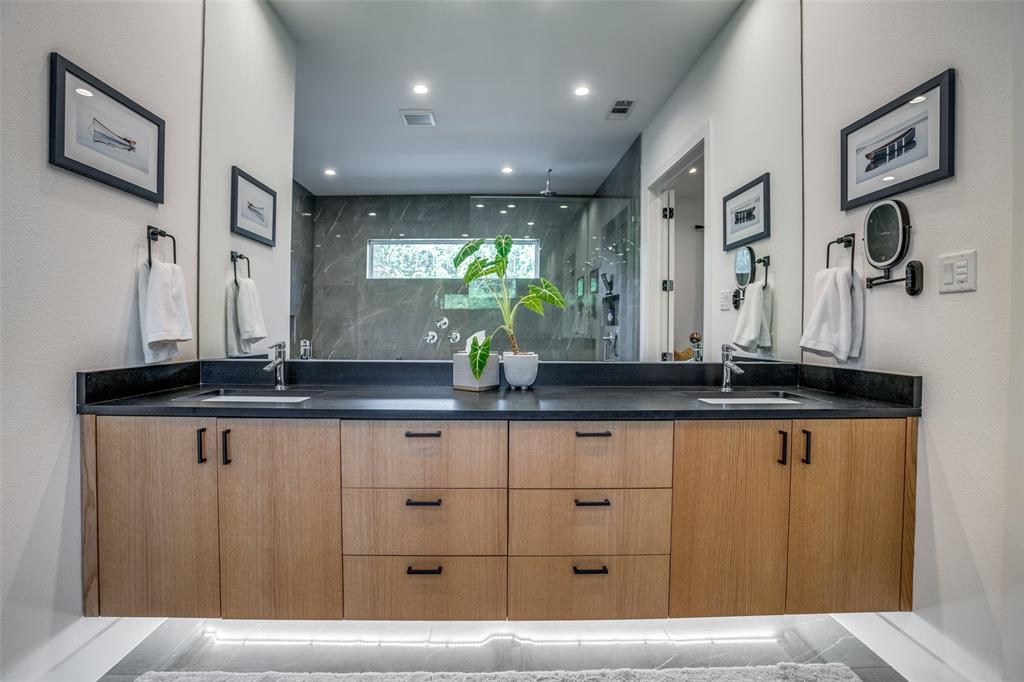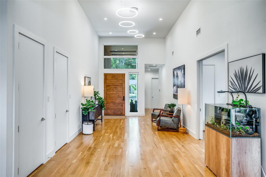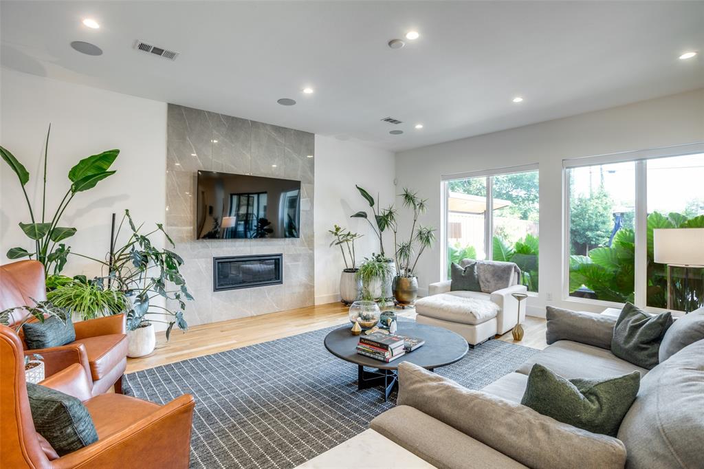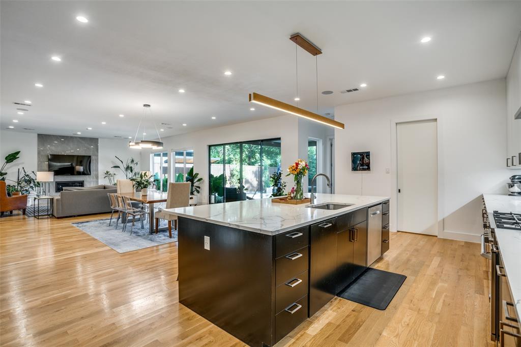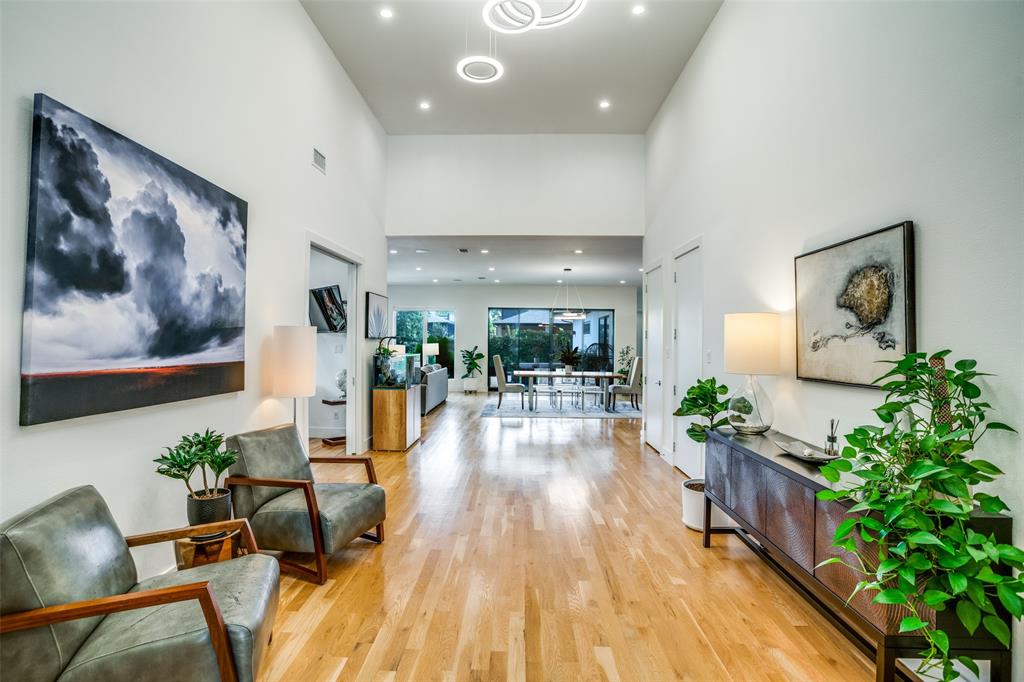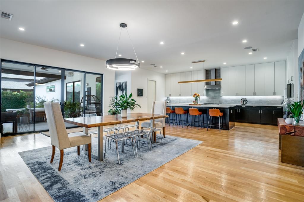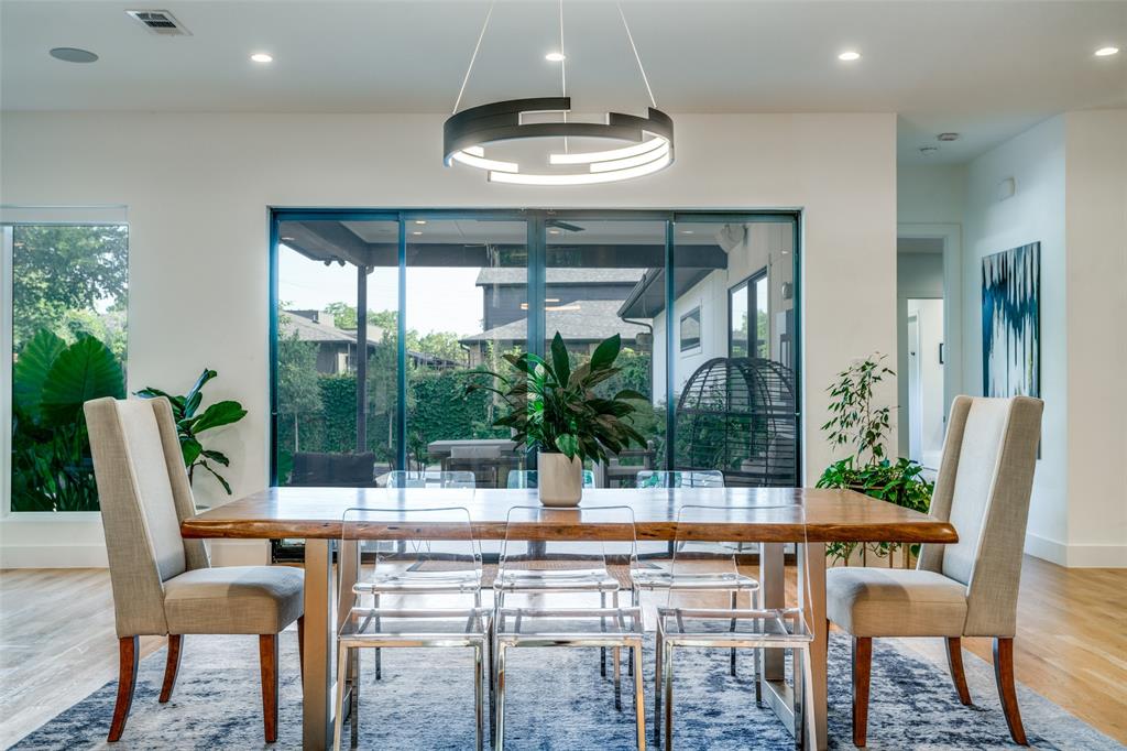 This is the home you have been waiting for! Nestled on a quiet street in Midway Hollow, this highly sought single level home offers the luxury of comfort and modern style. It features three bedrooms, three baths, large office and an absolutely amazing back yard! Entry opens to a large foyer leading to an open kitchen-dining-living area with high ceilings and huge windows that fill the home with natural light. The kitchen is nicely appointed with Bertazzoni appliances including convection gas range-oven, French door refrigerator, under mount canopy vent hood, and Dishwasher. A Danby Wine Fridge, large walk-in pantry, and connected mud room make this kitchen complete. Perfect for entertaining with seamless indoor-outdoor living. The living room extends to a spacious patio with multiple lounging areas, a fire pit, covered and lighted outdoor kitchen, and a temperature controlled salt water pool and spa. As if it couldn't get any better, the back yard is surrounded with gorgeous landscaping that gives you a perfect place for relaxing while getting visited by hummingbirds and other feathered friends. The primary suite offers a spa-like retreat with a free standing vessel tub, large shower, dual mounted sinks, floating vanity and an absolutely huge closet. So many features including surround speakers, CAT 5, Control IV® Smarthome Dashboard, White Oak hardwood floors, designer lighting, electric shades, E3 double pane windows, foam insulation, 2 zoned HVAC systems, Rheem tankless water heater, sprinkler system, 8' privacy fence and so much more! Conveniently located to Love Field, restaurants and the Galleria. Easy access to NW Highway, 635 and the tollroad.