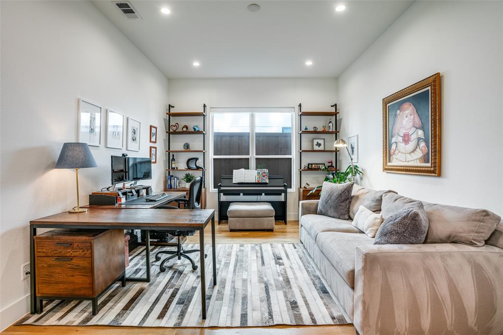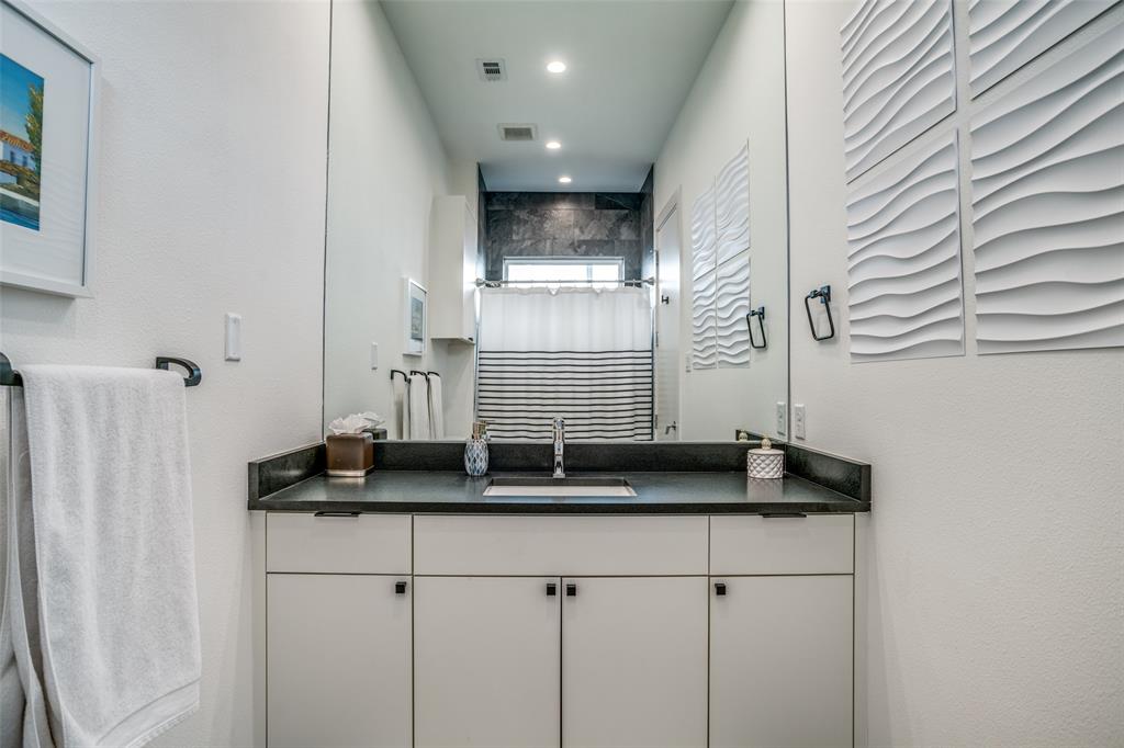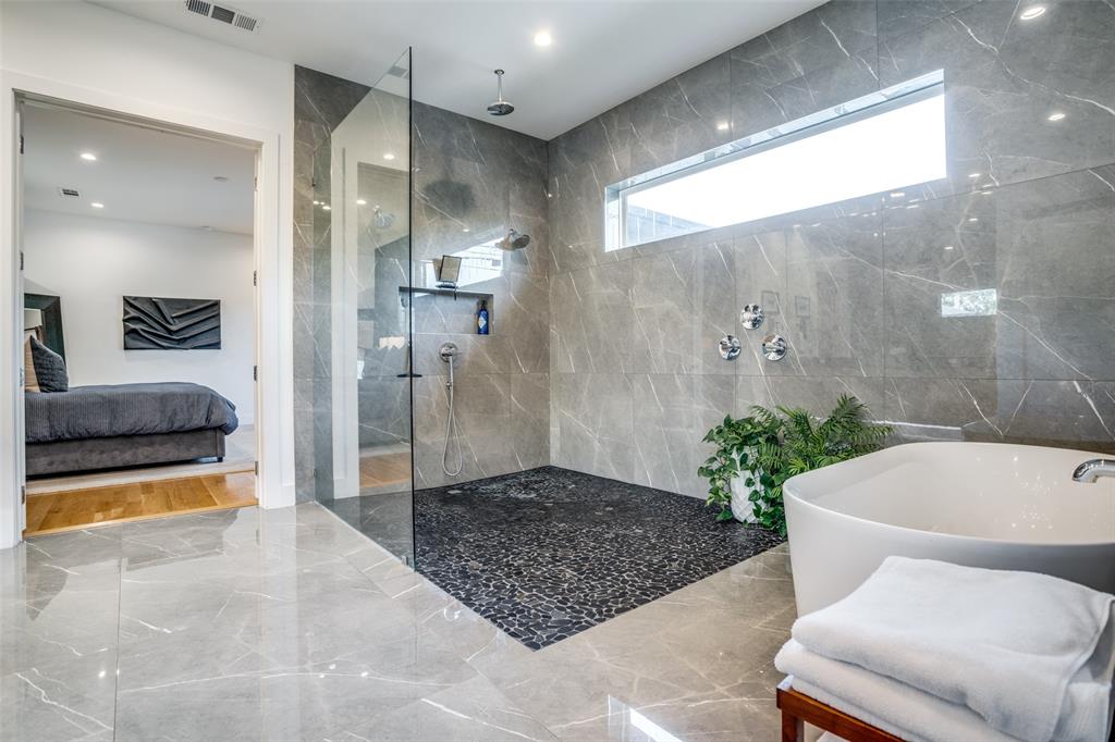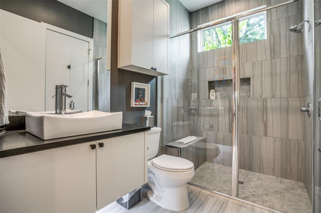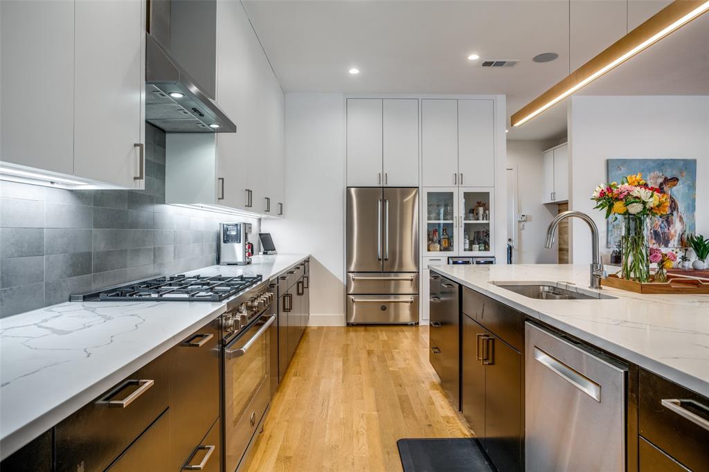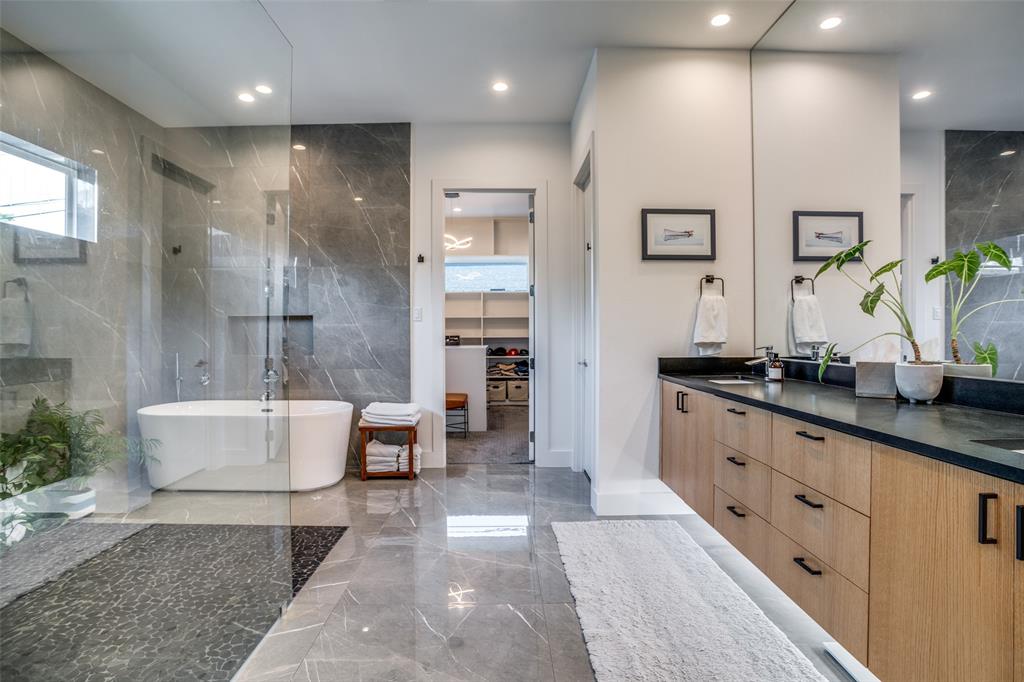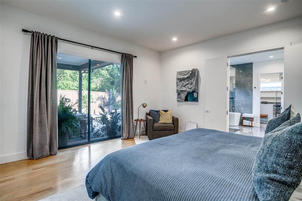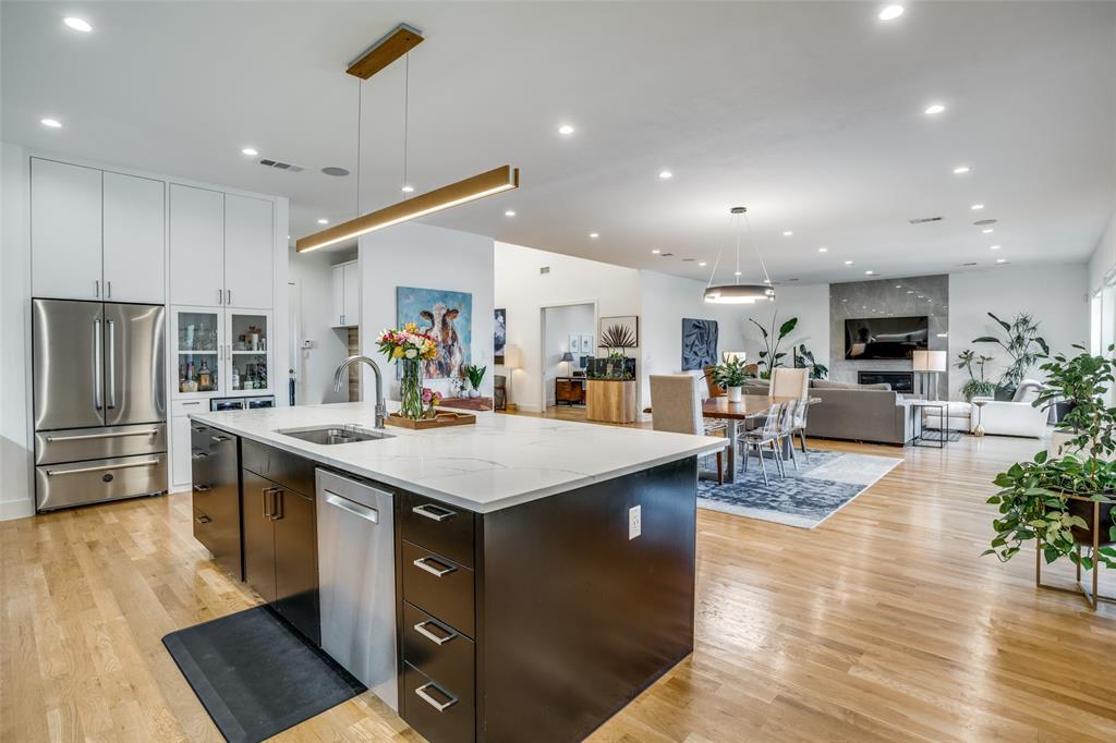 This is the home you have been waiting for! Nestled on a quiet street in Midway Hollow, this highly sought single level home offers the luxury of comfort and modern style. It features three bedrooms, three baths, large office and an absolutely amazing back yard! Entry opens to a large foyer leading to an open kitchen-dining-living area with high ceilings and huge windows that fill the home with natural light. The kitchen is nicely appointed with Bertazzoni appliances including convection gas range-oven, French door refrigerator, under mount canopy vent hood, and Dishwasher. A Danby Wine Fridge, large walk-in pantry, and connected mud room make this kitchen complete. Perfect for entertaining with seamless indoor-outdoor living. The living room extends to a spacious patio with multiple lounging areas, a fire pit, covered and lighted outdoor kitchen, and a temperature controlled salt water pool and spa. As if it couldn't get any better, the back yard is surrounded with gorgeous landscaping that gives you a perfect place for relaxing while getting visited by hummingbirds and other feathered friends. The primary suite offers a spa-like retreat with a free standing vessel tub, large shower, dual mounted sinks, floating vanity and an absolutely huge closet. So many features including surround speakers, CAT 5, Control IV® Smarthome Dashboard, White Oak hardwood floors, designer lighting, electric shades, E3 double pane windows, foam insulation, 2 zoned HVAC systems, Rheem tankless water heater, sprinkler system, 8' privacy fence and so much more! Conveniently located to Love Field, restaurants and the Galleria. Easy access to NW Highway, 635 and the tollroad.