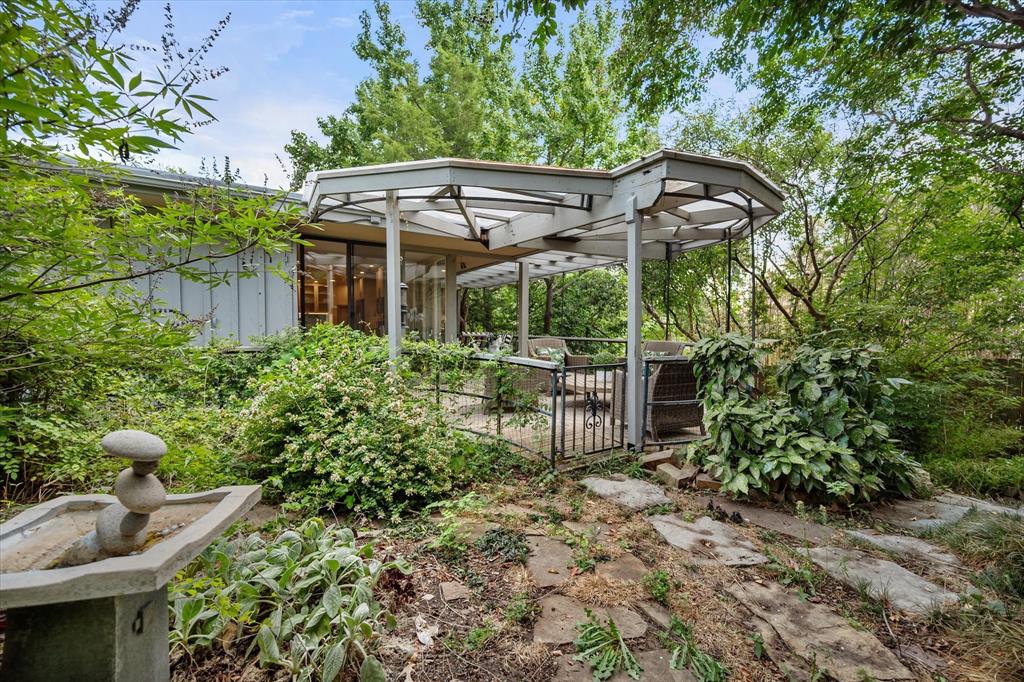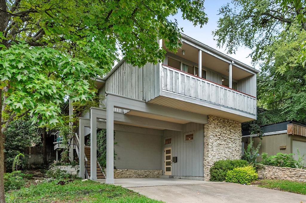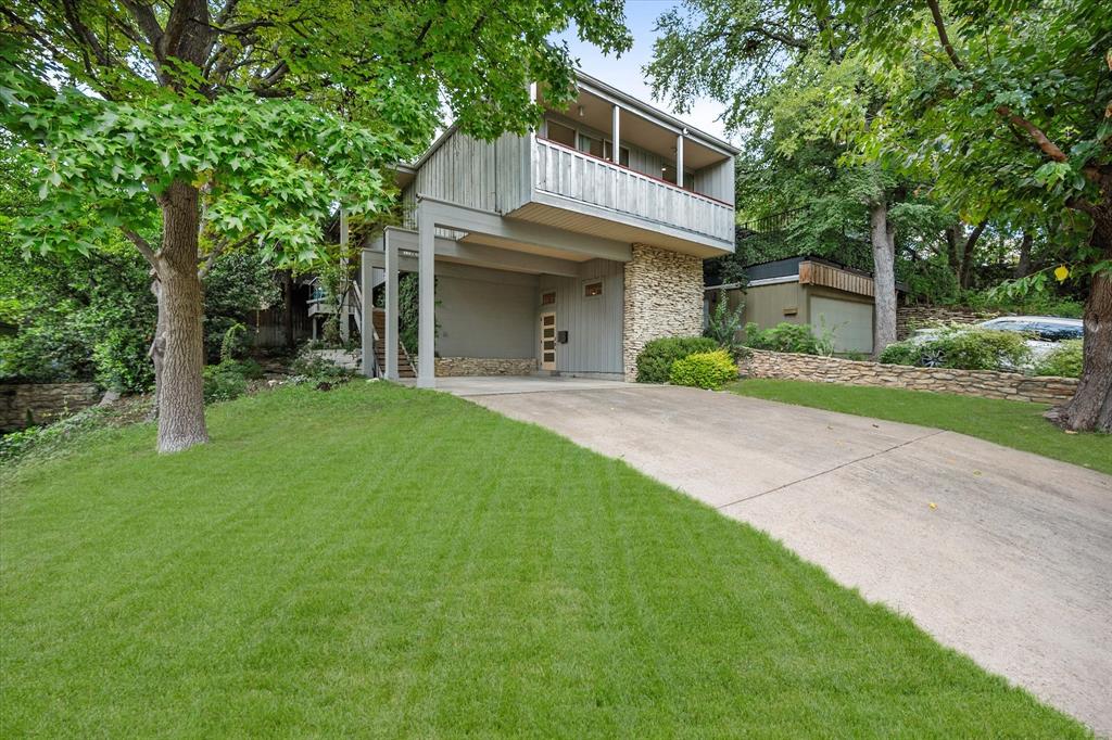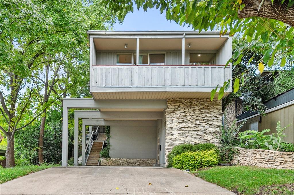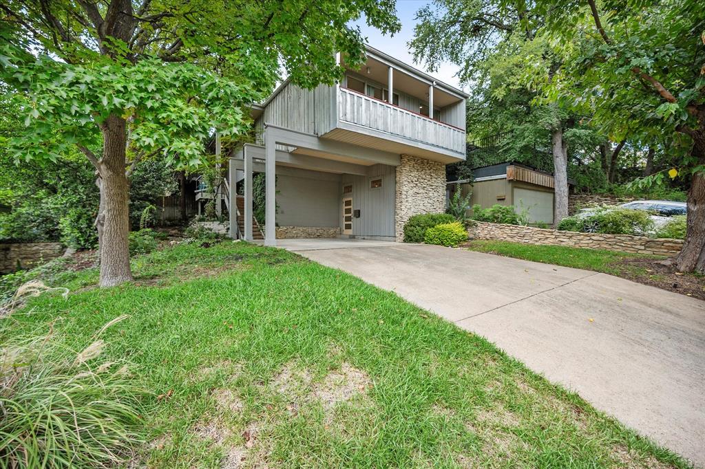 Elevated above the street and framed by mature trees, this three-bedroom, two-and-a-half-bathroom home captures the best of mid-century modern design. Clean architectural lines and expansive floor-to-ceiling windows create a seamless connection between indoors and out, filling the open-concept living and dining spaces with light. The updated kitchen combines style and function with stainless steel appliances, granite countertops, and a gas cooktop, while a wet bar adds the perfect touch for entertaining. The primary suite offers a private balcony, walls of windows, and a beautifully renovated ensuite bath. Upstairs also includes a secondary bedroom with treetop views, while the third bedroom with full bath is located downstairs. This space can easily serve as a bedroom or be adapted into a studio, office, fitness room, or media lounge—offering true flexibility. Recent renovations include a new HVAC system, updated plumbing, and updated electrical, ensuring peace of mind for the next owner. Outdoors, a shaded and covered deck provides a comfortable setting for gatherings or quiet evenings at home. Set in a prime location within walking distance to TCU, this one-of-a-kind property also places you minutes from shopping, dining, the Fort Worth Zoo, and the Hospital District. A rare opportunity to own true mid-century modern architecture in the heart of Fort Worth.