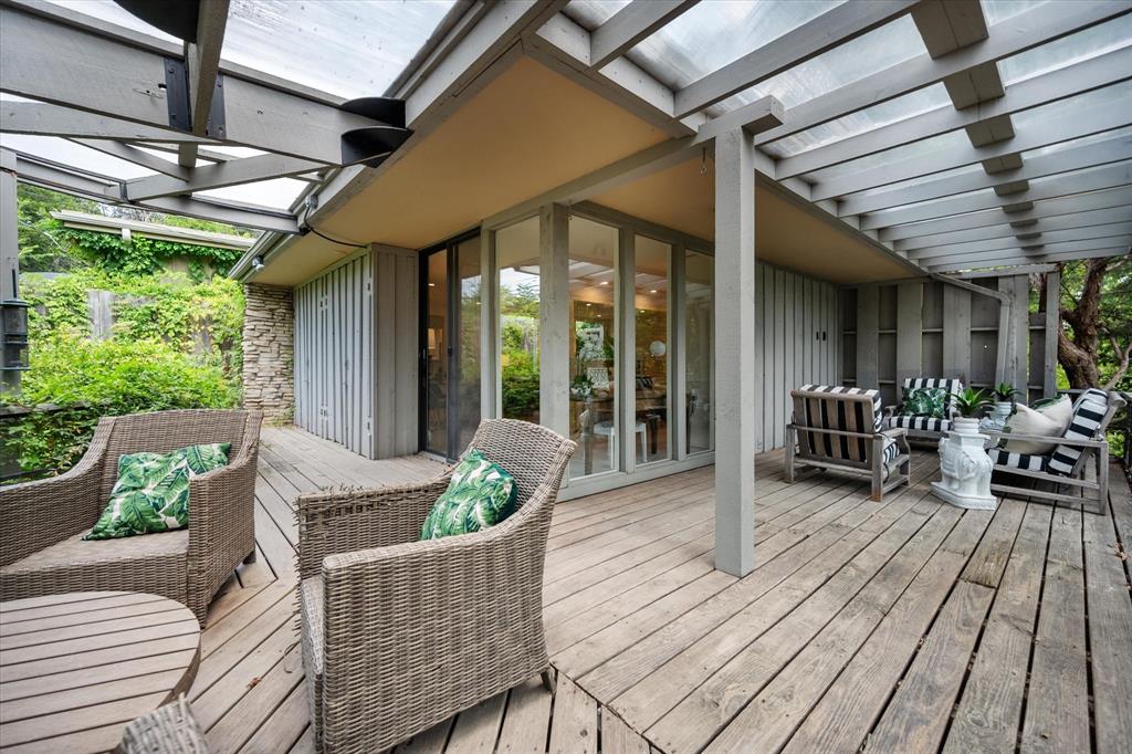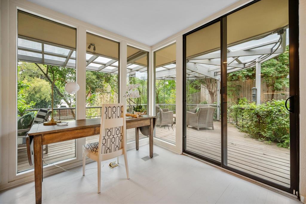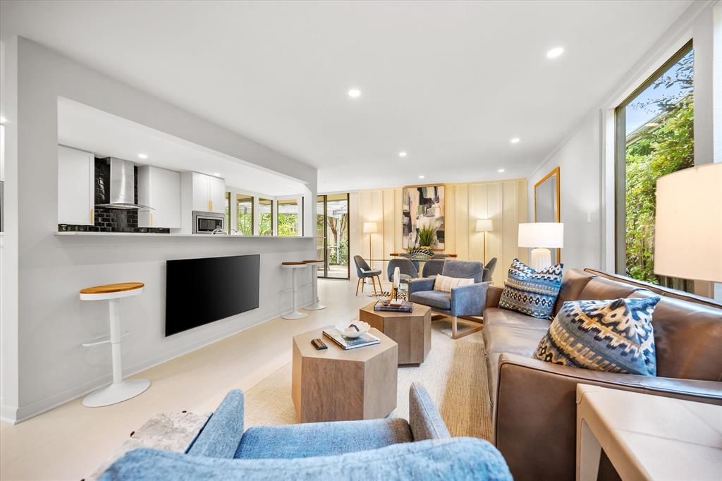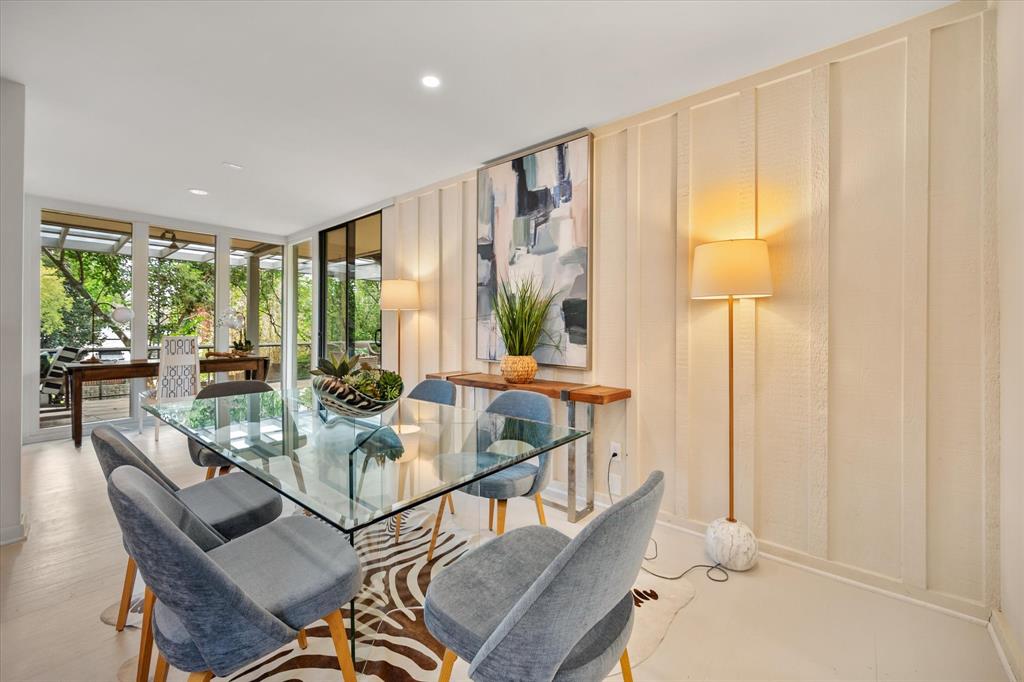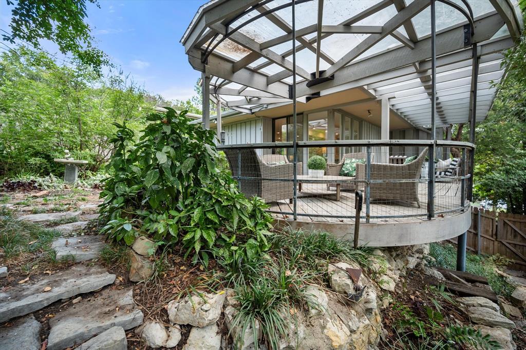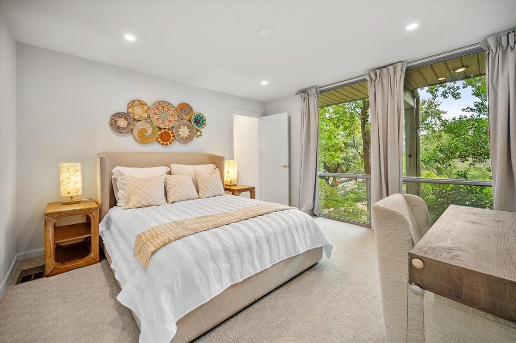 Elevated above the street and framed by mature trees, this three-bedroom, two-and-a-half-bathroom home captures the best of mid-century modern design. Clean architectural lines and expansive floor-to-ceiling windows create a seamless connection between indoors and out, filling the open-concept living and dining spaces with light. The updated kitchen combines style and function with stainless steel appliances, granite countertops, and a gas cooktop, while a wet bar adds the perfect touch for entertaining. The primary suite offers a private balcony, walls of windows, and a beautifully renovated ensuite bath. Upstairs also includes a secondary bedroom with treetop views, while the third bedroom with full bath is located downstairs. This space can easily serve as a bedroom or be adapted into a studio, office, fitness room, or media lounge—offering true flexibility. Recent renovations include a new HVAC system, updated plumbing, and updated electrical, ensuring peace of mind for the next owner. Outdoors, a shaded and covered deck provides a comfortable setting for gatherings or quiet evenings at home. Set in a prime location within walking distance to TCU, this one-of-a-kind property also places you minutes from shopping, dining, the Fort Worth Zoo, and the Hospital District. A rare opportunity to own true mid-century modern architecture in the heart of Fort Worth.