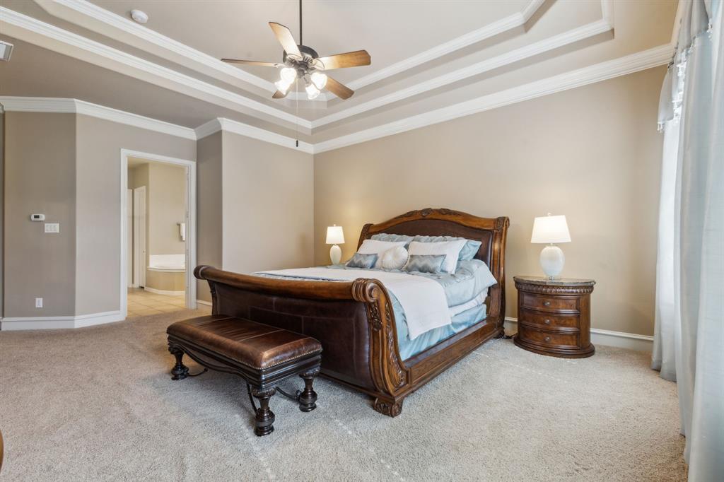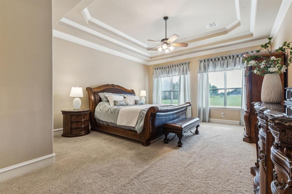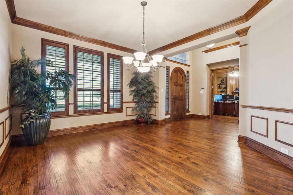 Nestled in the prestigious Lovejoy Independent School District, this exquisite residence sits on a sprawling 1.5-acre lot, offering open space perfect for outdoor play. Thoughtfully designed and impeccably maintained, this home seamlessly blends sophistication with comfort. Step inside to discover the spacious dining room and the executive office which boasts rich custom woodwork and built-in shelving. A grand kitchen is ideal for the culinary enthusiast, featuring double ovens, an expansive walk-in pantry, and an abundance of custom cabinetry and storage. The generous primary suite offers a tranquil retreat with a ensuite bath, including dual vanities, a luxurious jetted tub, and an oversized walk-in shower. Upstairs, you'll find four well-appointed bedrooms perfect for a large family and guests. A big game room that includes built-in cabinets with granite counter tops, a sink, mini refrigerator and microwave for easy snacking while enjoying the large media room, offering endless opportunities for entertainment. Also upstairs are two built-in desk areas with granite countertops for a dedicated study area. Off the kitchen is a laundry room designed to make your life easier featuring two dryer connections as well as space for a freezer or refrigerator. With its thoughtful layout, premium condition, and convenient location, this home offers an exceptional opportunity for you to call home. New roof installed May 2025.