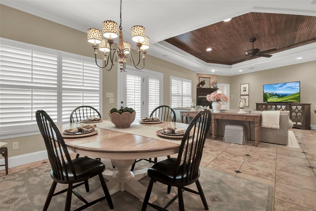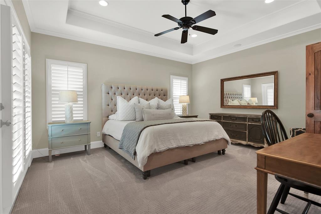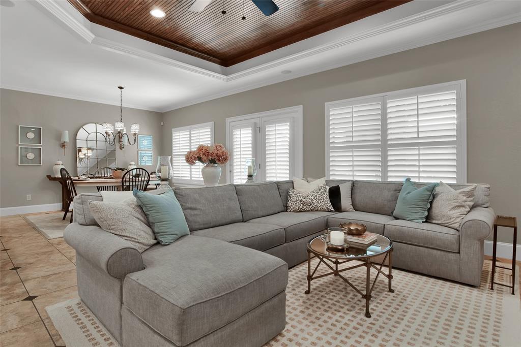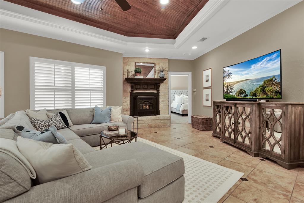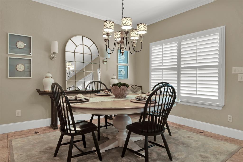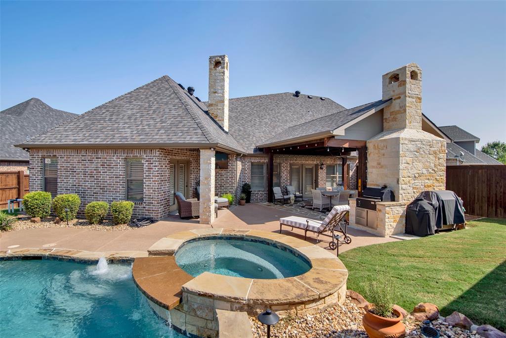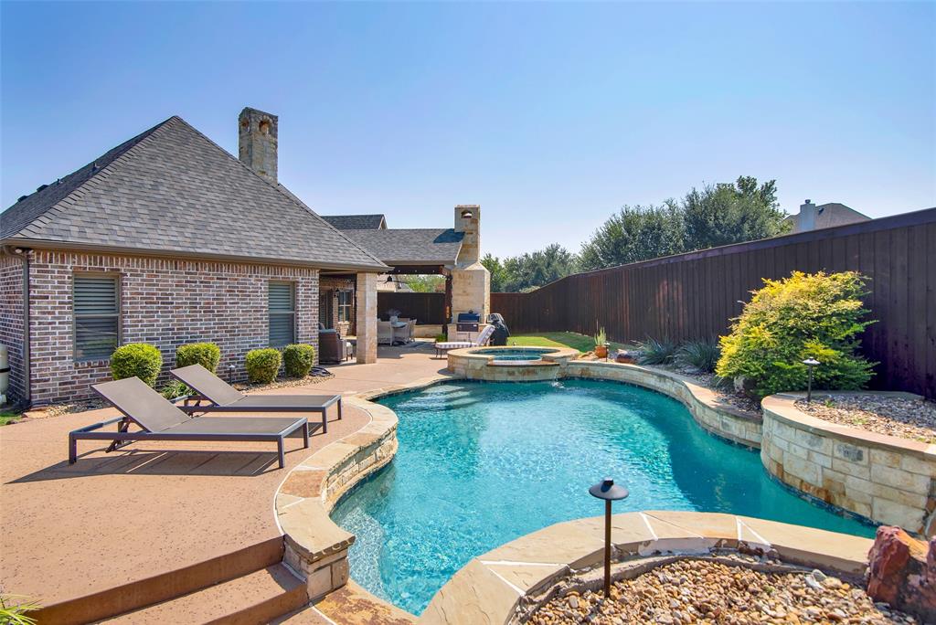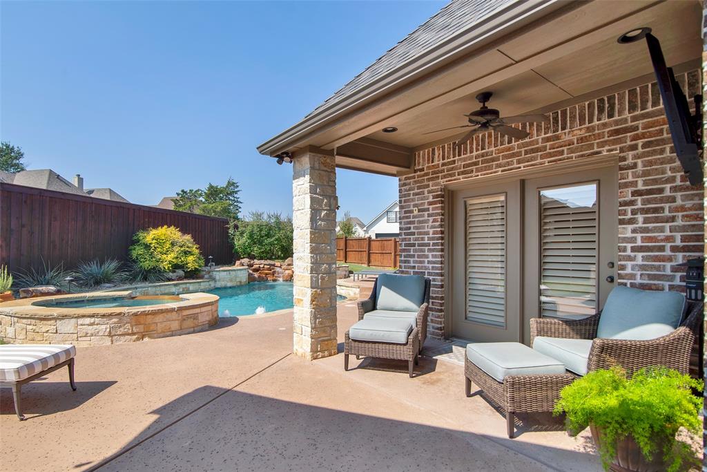 Nestled on a quiet cul-de-sac lot, this home welcomes you with steps leading up to a covered front porch that feels both inviting and classic. Inside, the layout is open but cozy with plantation shutters throughout and a kitchen that has stainless appliances, a breakfast bar, and a little coffee nook tucked perfectly to the side. The study offers a space where you can work or unwind. The primary bedroom feels like a retreat with its own french doors leading out to the back where you can spend time around the fireplace on the covered patio, grilling out, or relaxing in the pool and hot tub.