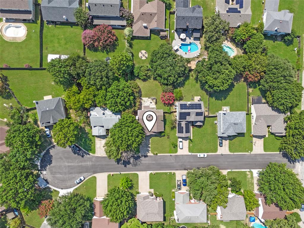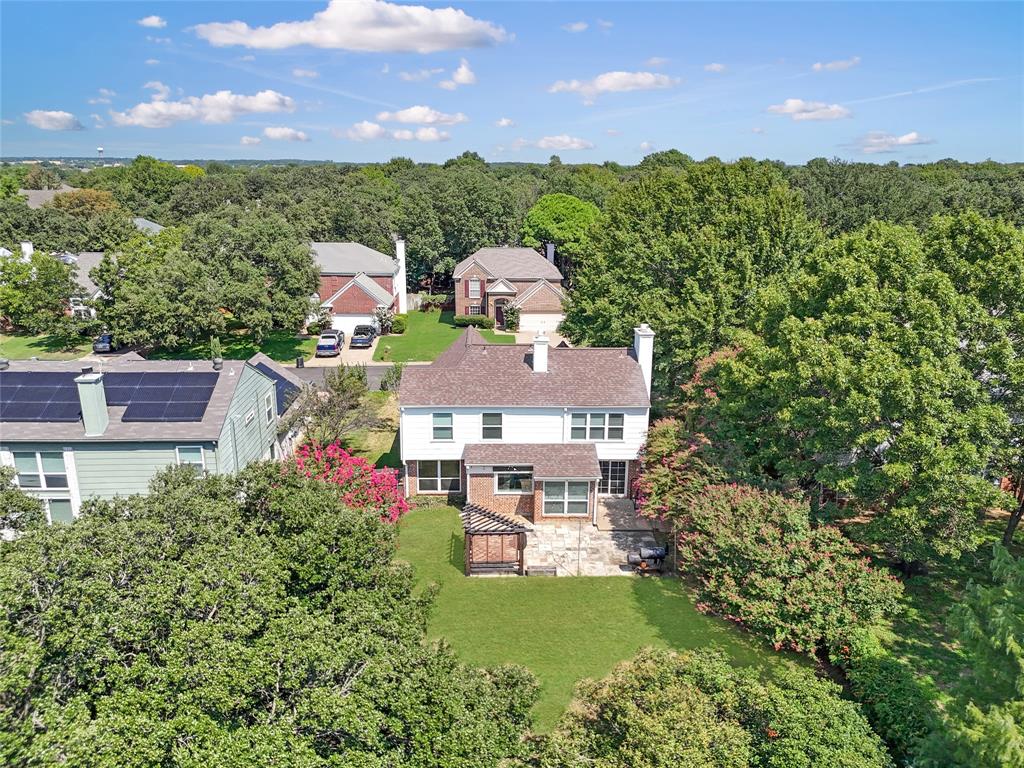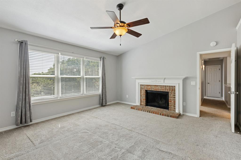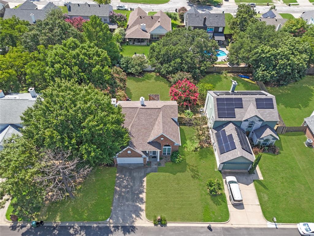 NORTH FACING, 3 BEDROOM, 3 BATHROOM, 2 LIVING AREA, 2 STORY HOUSE IN A CUL-DE-SAC WITH PRIVATE TREE-LINED BACKYARD + NEAR PARKS. Located in North Richland Hills and priced to sell with great Curb Appeal. Step inside to find the main Living Area with Vaulted Ceilings that leads to the Dining Area and into the Updated Kitchen equipped with Stainless Steel appliances including Electric Glass-Top Range, Microwave, Dishwasher, Farm Sink, Granite Countertops, 42-inch Cabinets, Water Line for Fridge, and Cozy Breakfast Nook. All of this overlooks the oversized Den with Wood Burning Fireplace, Laminate Wood Flooring, and Door leading outside to the Patio perfect for entertaining and relaxing. The backyard has both Wood and Vinyl Fencing and is private from all neighbors. Inside and upstairs you have all 3 Bedrooms with Brand New Carpet, Walk-in closets, and Ceiling Fans. The Primary Bedroom also has its own Wood Burning Fireplace, Ensuite Bathroom with Garden Tub and Shower combo. Brass Fixtures in photos have been replaced. Inside was recently repainted, Exterior was completely repainted in September, New Roof Oct 2023, HVAC 2019, Gutter 2023, Windows in 2020, and other updates completed within the last few years. Only a few houses away from a Greenbelt, playground, and park area, and a few blocks to the schools. Easy to show - Video and 3D Tour are available online.