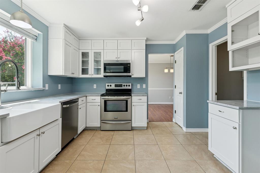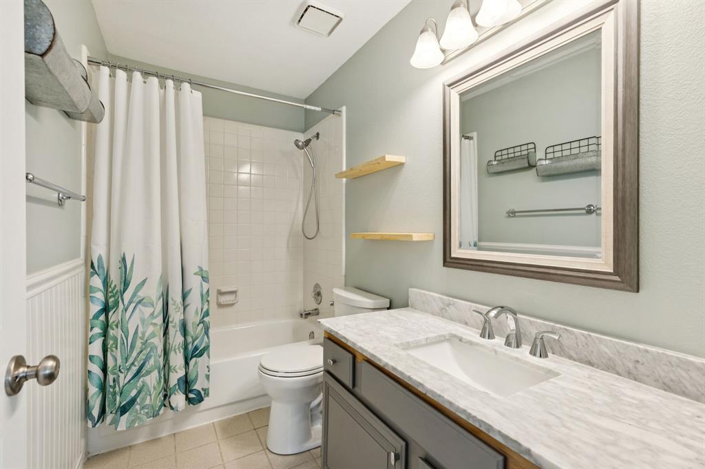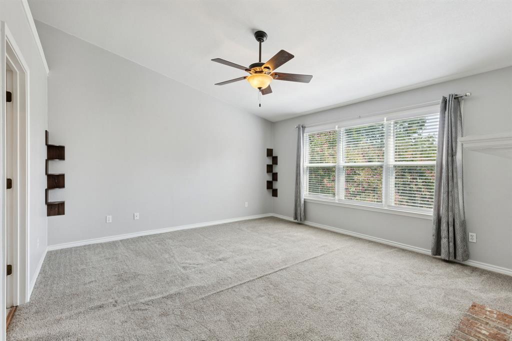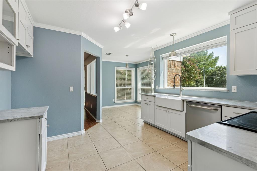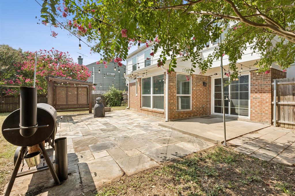 NORTH FACING, 3 BEDROOM, 3 BATHROOM, 2 LIVING AREA, 2 STORY HOUSE IN A CUL-DE-SAC WITH PRIVATE TREE-LINED BACKYARD + NEAR PARKS. Located in North Richland Hills and priced to sell with great Curb Appeal. Step inside to find the main Living Area with Vaulted Ceilings that leads to the Dining Area and into the Updated Kitchen equipped with Stainless Steel appliances including Electric Glass-Top Range, Microwave, Dishwasher, Farm Sink, Granite Countertops, 42-inch Cabinets, Water Line for Fridge, and Cozy Breakfast Nook. All of this overlooks the oversized Den with Wood Burning Fireplace, Laminate Wood Flooring, and Door leading outside to the Patio perfect for entertaining and relaxing. The backyard has both Wood and Vinyl Fencing and is private from all neighbors. Inside and upstairs you have all 3 Bedrooms with Brand New Carpet, Walk-in closets, and Ceiling Fans. The Primary Bedroom also has its own Wood Burning Fireplace, Ensuite Bathroom with Garden Tub and Shower combo. Brass Fixtures in photos have been replaced. Inside was recently repainted, Exterior was completely repainted in September, New Roof Oct 2023, HVAC 2019, Gutter 2023, Windows in 2020, and other updates completed within the last few years. Only a few houses away from a Greenbelt, playground, and park area, and a few blocks to the schools. Easy to show - Video and 3D Tour are available online.