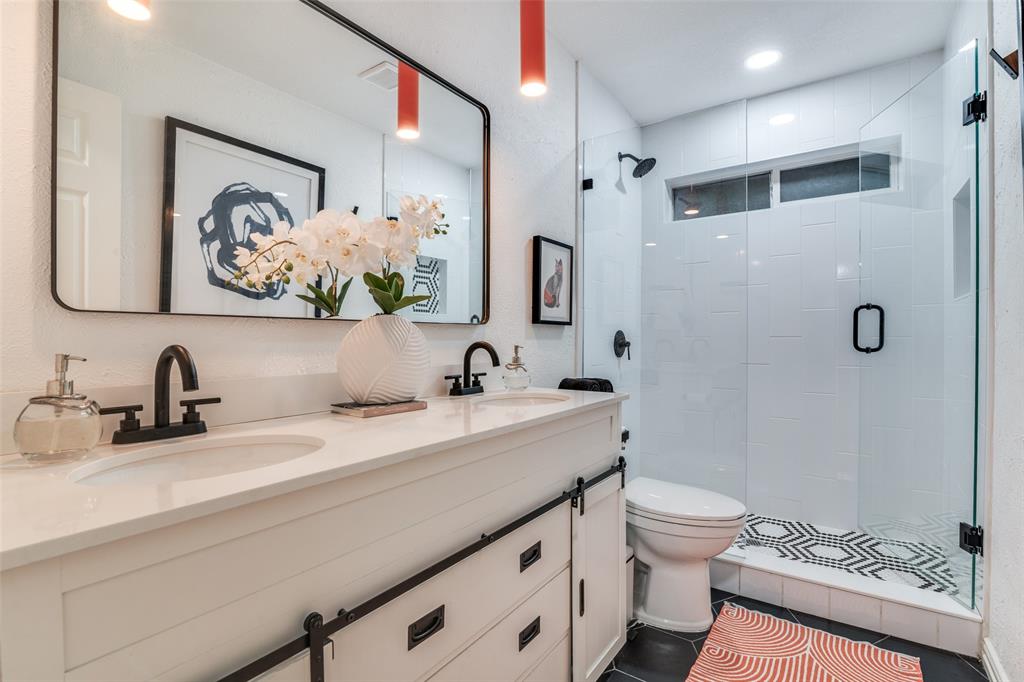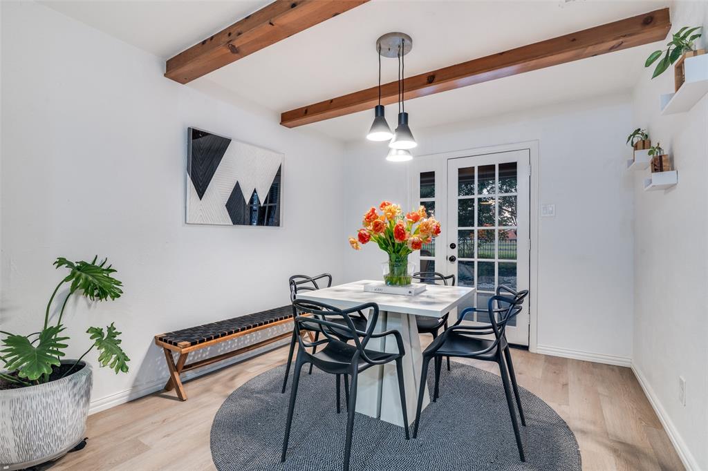 Beautifully updated single-story home situated on an expansive .40-acre lot in sought-after Sachse South Estates. This 4-bedroom, 2-bath residence offers 2,430 sq ft of thoughtfully designed living space blending classic charm with modern comfort. The inviting exterior features painted brick, a wrap-around porch, mature trees, and a wrought-iron fenced yard. Step inside to find fresh paint, updated flooring, stylish lighting, and new hardware throughout. The spacious living area is anchored by a cozy fireplace and flows seamlessly into a renovated kitchen with newer appliances and updated finishes, perfect for entertaining and everyday living. The private primary suite boasts a large walk-in shower, built-ins, and a generous walk-in closet, while secondary bedrooms provide flexibility for family, guests, or office space. Additional highlights include a dedicated office or mudroom, updated bathrooms, and plenty of storage. Outdoors, enjoy a “She Shed” with heat and air, ideal for hobbies or a home office, plus a separate storage building or workshop, dog run, and serene views of horses beyond the back fence. Recent improvements include foundation work and plumbing with durable PVC for peace of mind. A side-entry 2-car garage and carport provide ample parking. Conveniently located within Garland ISD with choice of schools, this home offers easy access to major roadways, shopping, dining, and entertainment. With its large lot, versatile spaces, and stylish updates, this property is truly a rare find in Sachse!