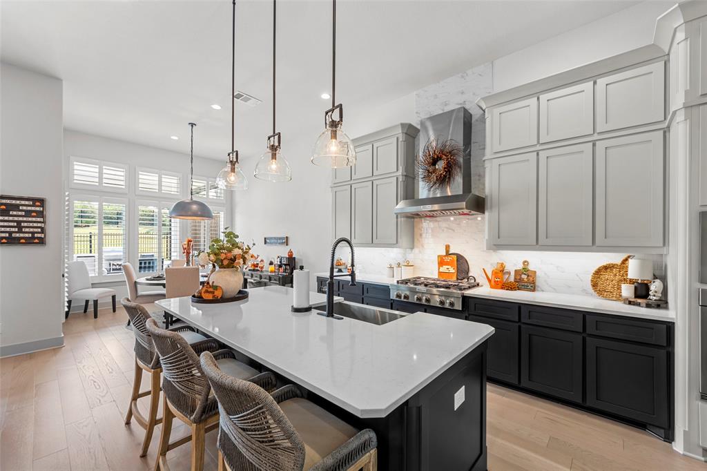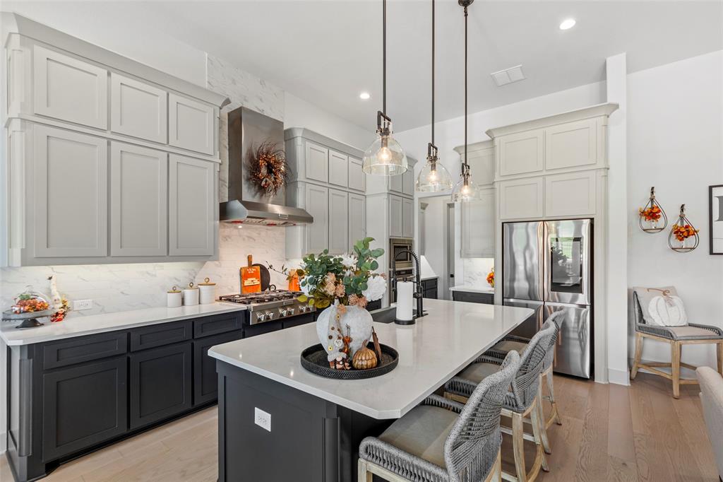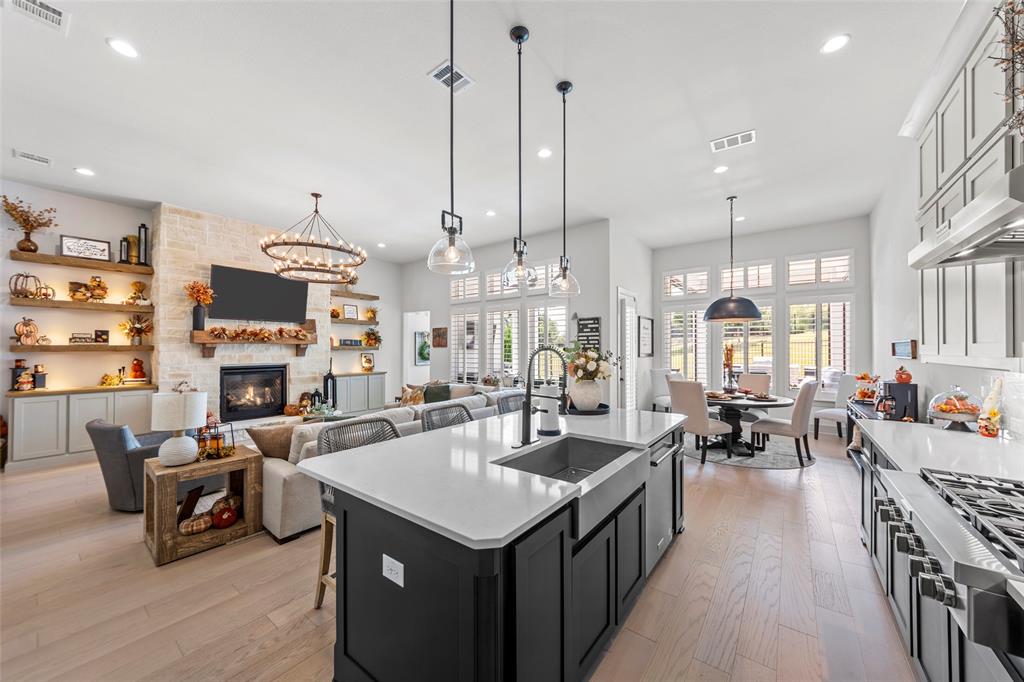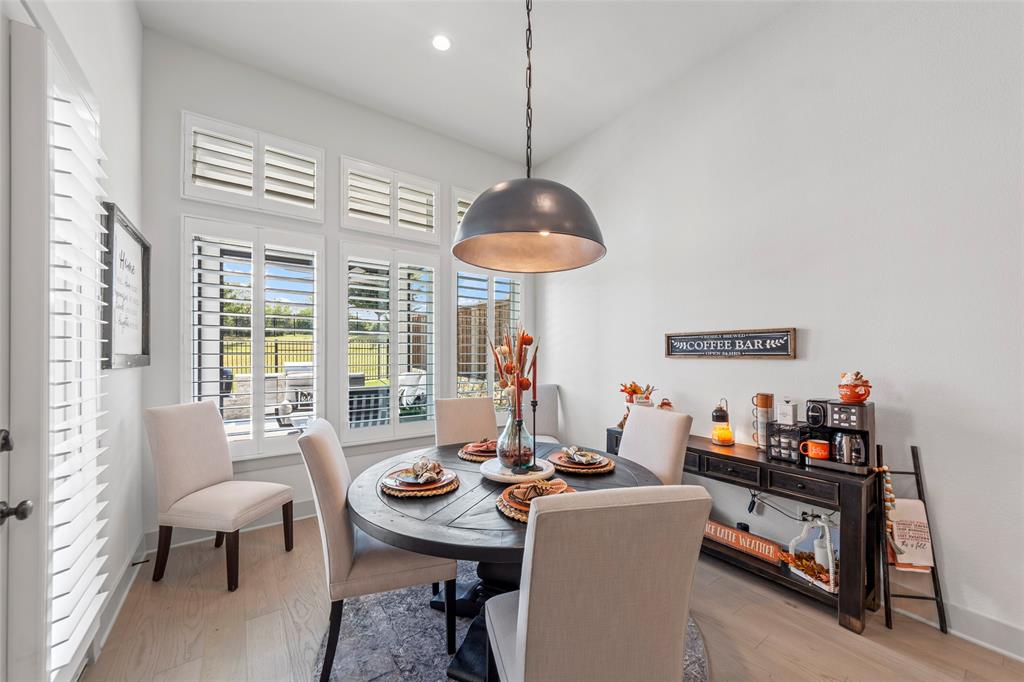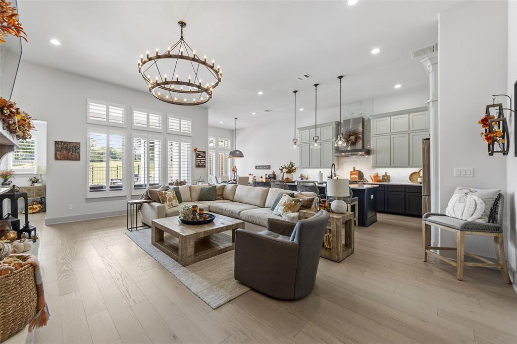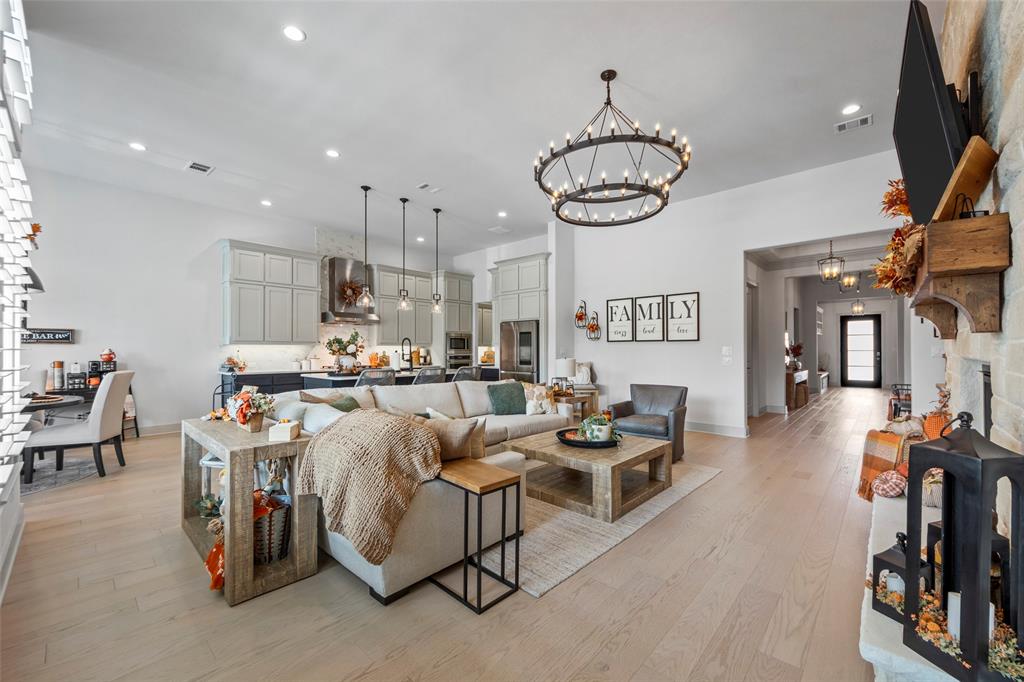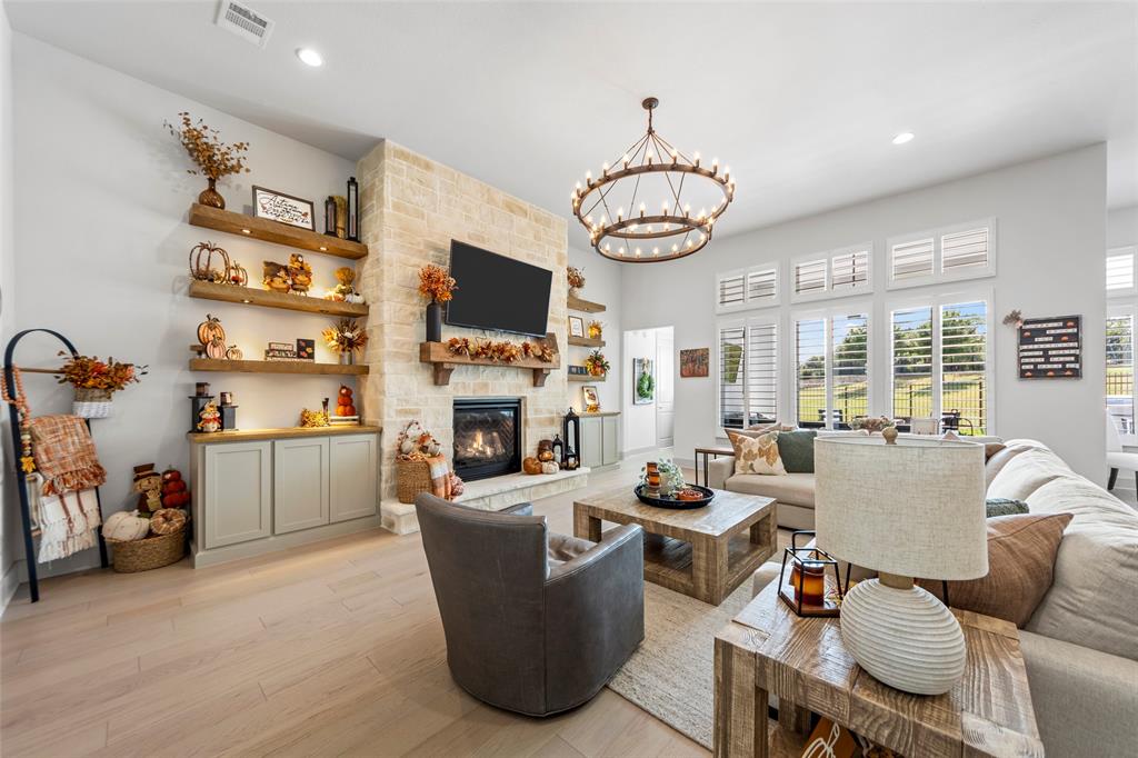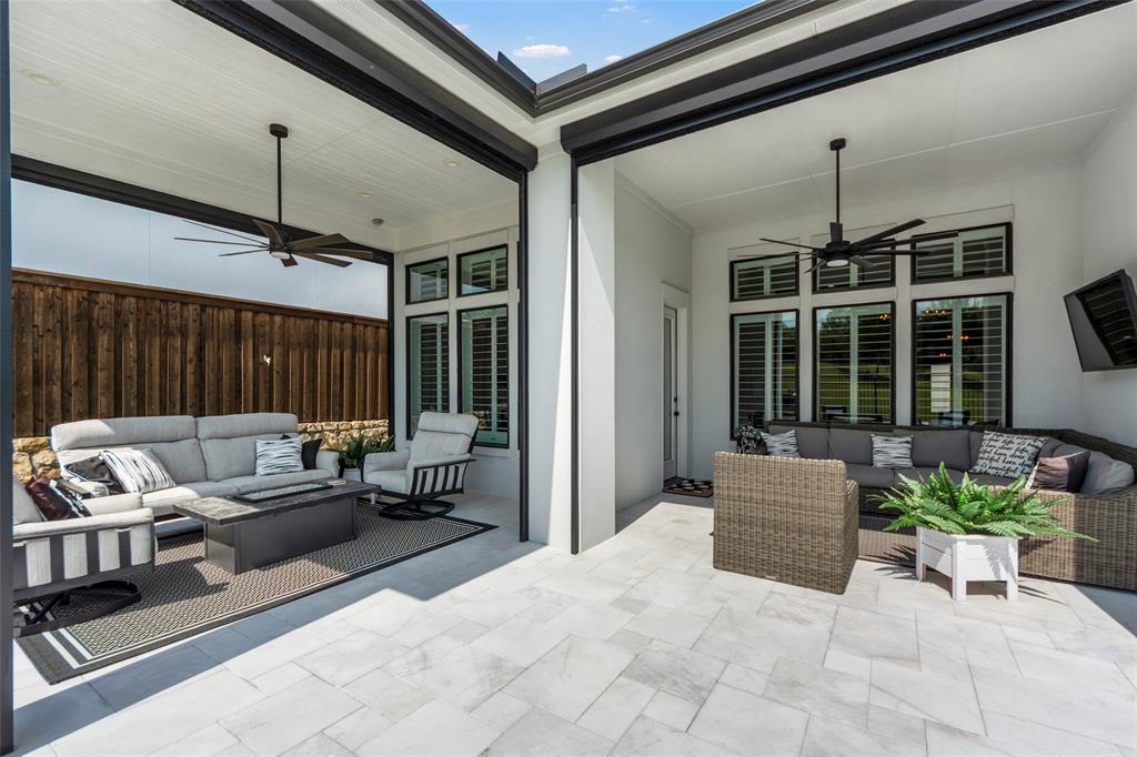 Luxury Living at its best! STUNNING North-East facing ONE STORY home built by Toll Brothers, in the boutique GATED community of Paradiso Valle of coveted Stonebridge Ranch. This owner has added so many high-end designer touches to this home, making OVER $300K in UPGRADES done AFTER MOVE-IN. BACKYARD OASIS with resort-style sparkling pool-spa, extended covered patio with motorized solar screens, outdoor grill, gas firepit, and easy-care turfed backyard. Property overlooks a greenspace that is HOA maintained. Only built in 2022, this home is like new without the wait & move-in ready! Lush landscaping and a modern curb appeal say 'Welcome Home'! As you enter, you are greeted by the inviting foyer with custom built-in mud space & soaring ceilings. The large living room features a striking floor-to-ceiling fireplace with custom built-in cabinets and floating shelves on either side. This open concept floor plan of the living rom to the kitchen & the outdoor space makes this home perfect for entertaining. Chef's kitchen with expansive island, quartz countertops, gorgeous backsplash, gas cooktop with stainless steel appliances, coffee bar, large dining area and walk-in pantry. Not a detail was missed - from the plantation shutters on every window, to the Restoration Hardware lighting fixtures adding touches of style & elegance. Executive office with wood beam accents & French doors makes for a great flex living space 5th bedroom. Large media room ready for movie nights or binge watching your favorite show. Private primary suite overlooking the stunning yard with spa-inspired ensuite bathroom - HUGE walk-in shower with dual shower heads & frameless glass, dual sinks, soaker tub, and large closet. Spacious secondary bedrooms. Garage with electric vehicle charger, epoxy flooring, and tons of enclosed wall storage built-ins & hanging shelves. This gorgeous home is a MUST SEE! Check out stonebridgeranch.com for all the amazing amenities this community has to offer.