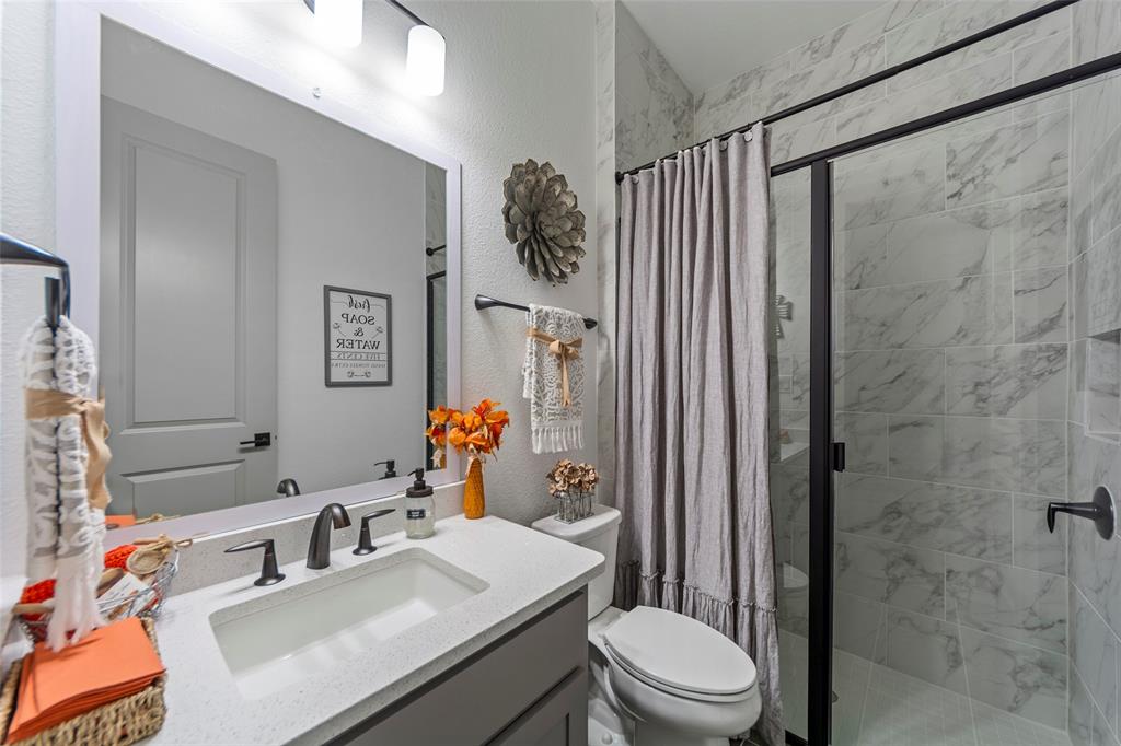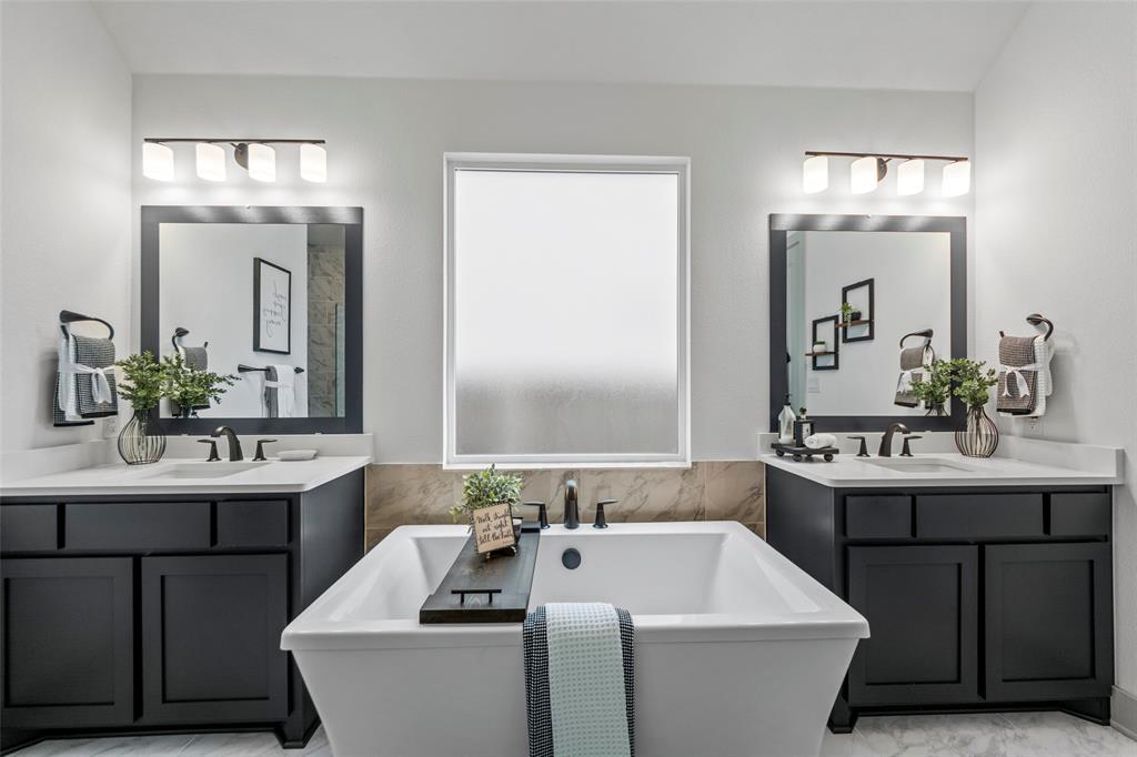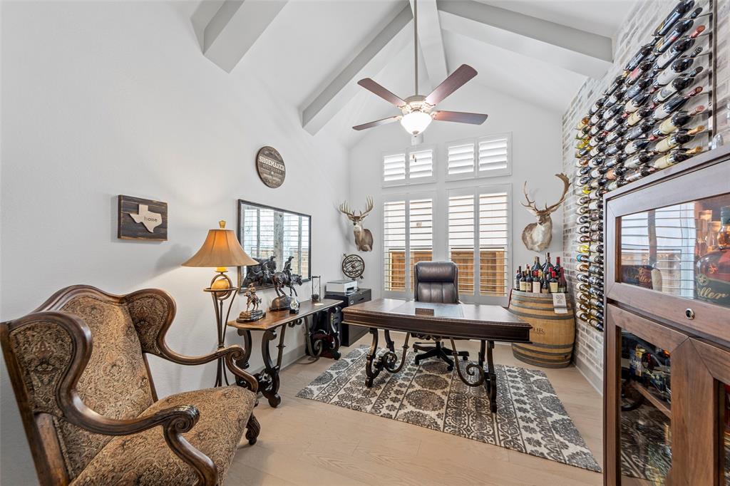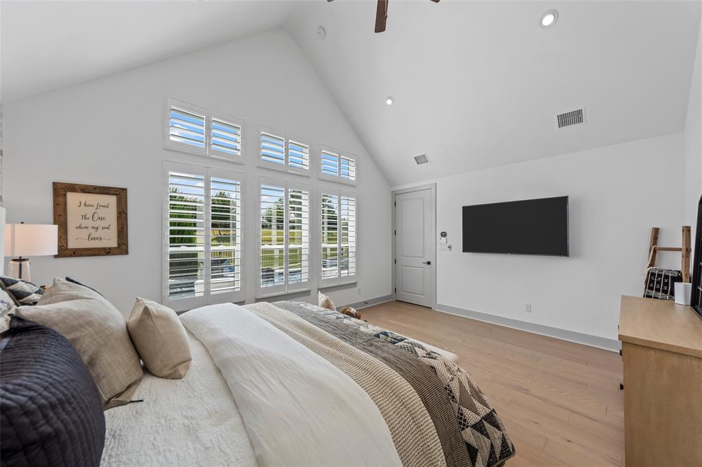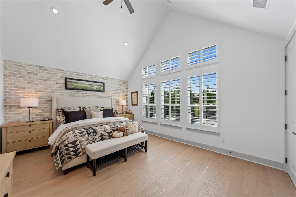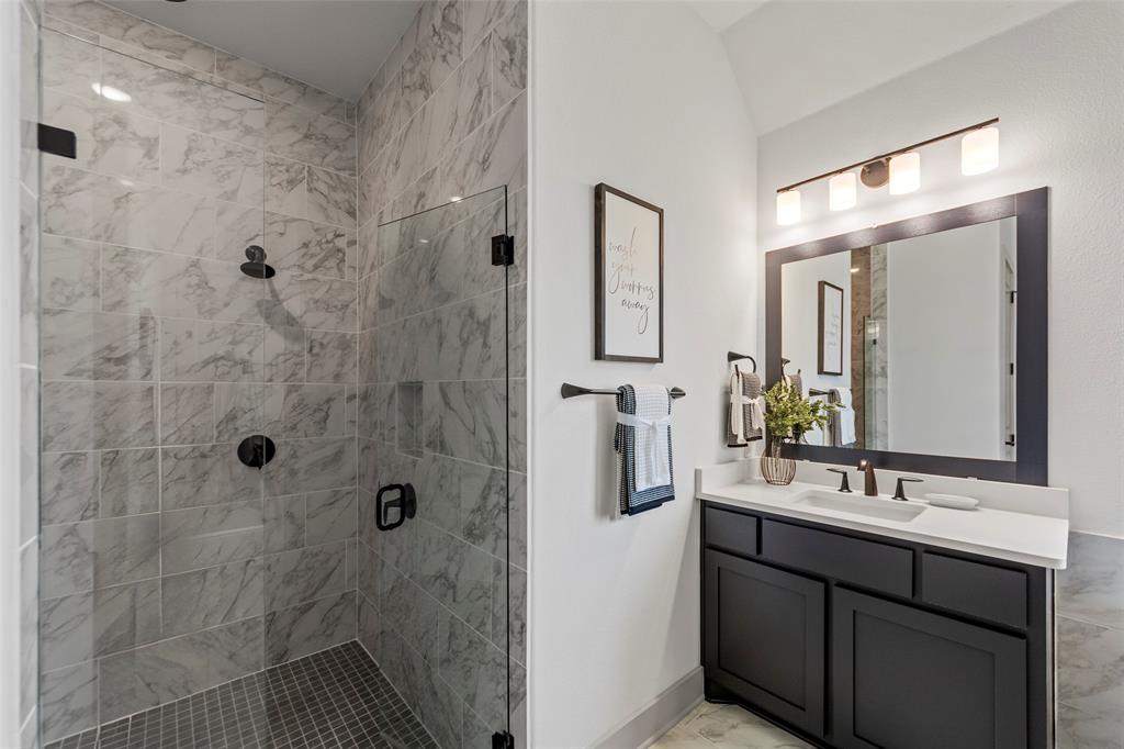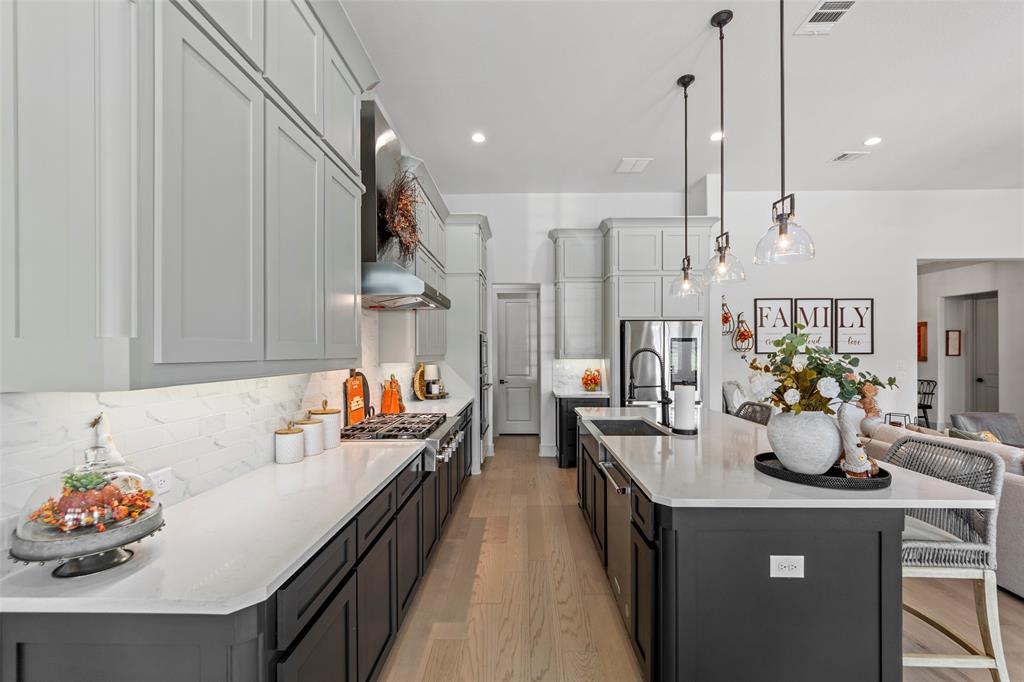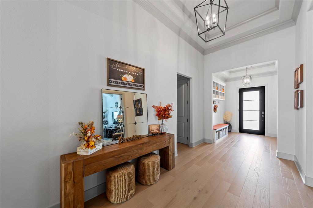 Luxury Living at its best! STUNNING North-East facing ONE STORY home built by Toll Brothers, in the boutique GATED community of Paradiso Valle of coveted Stonebridge Ranch. This owner has added so many high-end designer touches to this home, making OVER $300K in UPGRADES done AFTER MOVE-IN. BACKYARD OASIS with resort-style sparkling pool-spa, extended covered patio with motorized solar screens, outdoor grill, gas firepit, and easy-care turfed backyard. Property overlooks a greenspace that is HOA maintained. Only built in 2022, this home is like new without the wait & move-in ready! Lush landscaping and a modern curb appeal say 'Welcome Home'! As you enter, you are greeted by the inviting foyer with custom built-in mud space & soaring ceilings. The large living room features a striking floor-to-ceiling fireplace with custom built-in cabinets and floating shelves on either side. This open concept floor plan of the living rom to the kitchen & the outdoor space makes this home perfect for entertaining. Chef's kitchen with expansive island, quartz countertops, gorgeous backsplash, gas cooktop with stainless steel appliances, coffee bar, large dining area and walk-in pantry. Not a detail was missed - from the plantation shutters on every window, to the Restoration Hardware lighting fixtures adding touches of style & elegance. Executive office with wood beam accents & French doors makes for a great flex living space 5th bedroom. Large media room ready for movie nights or binge watching your favorite show. Private primary suite overlooking the stunning yard with spa-inspired ensuite bathroom - HUGE walk-in shower with dual shower heads & frameless glass, dual sinks, soaker tub, and large closet. Spacious secondary bedrooms. Garage with electric vehicle charger, epoxy flooring, and tons of enclosed wall storage built-ins & hanging shelves. This gorgeous home is a MUST SEE! Check out stonebridgeranch.com for all the amazing amenities this community has to offer.