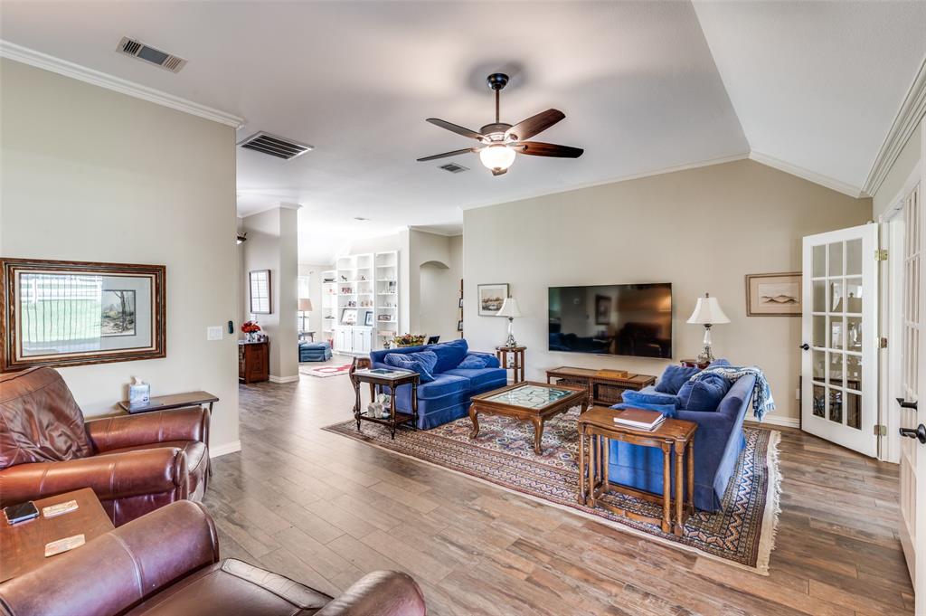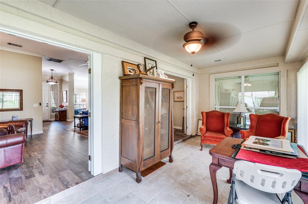 This beautifully kept home is on one of Robson's more serene streets and is just a couple of blocks from the restaurant in this Active Adult Community. At 2406 square feet, this Trova floor plan has space to stretch out. The partially enclosed back patio is being used as the owner's art studio and offers inspiration with windows across the entire back of the house. The way this home is situated with the sidewalks to the back and HOA-maintained side yard, you will feel like you only have one neighbor to the west of you. Current owner has a spacious woodshop in the oversized garage and much of the storage will stay. The kitchen has been updated with white cabinetry and dark brass pulls, a new gas range and backsplash. The laundry room has lots of storage and doubles as a butler's pantry. Enjoy your coffee sitting in the kitchenette with a bay window. The guest bedroom is shown with a king sized bed and has plenty of room to spare. The Primary Bathroom has been nicely updated with a stylish shower and matching vanity area. The Primary Bedroom is huge, has a bay window and looks out to the greenbelt. Enjoy the study with a good book and lots of natural light. The amenities in this 55 plus community are right down the street and are included with your HOA dues. Bocce, swimming and pickleball, here we come!